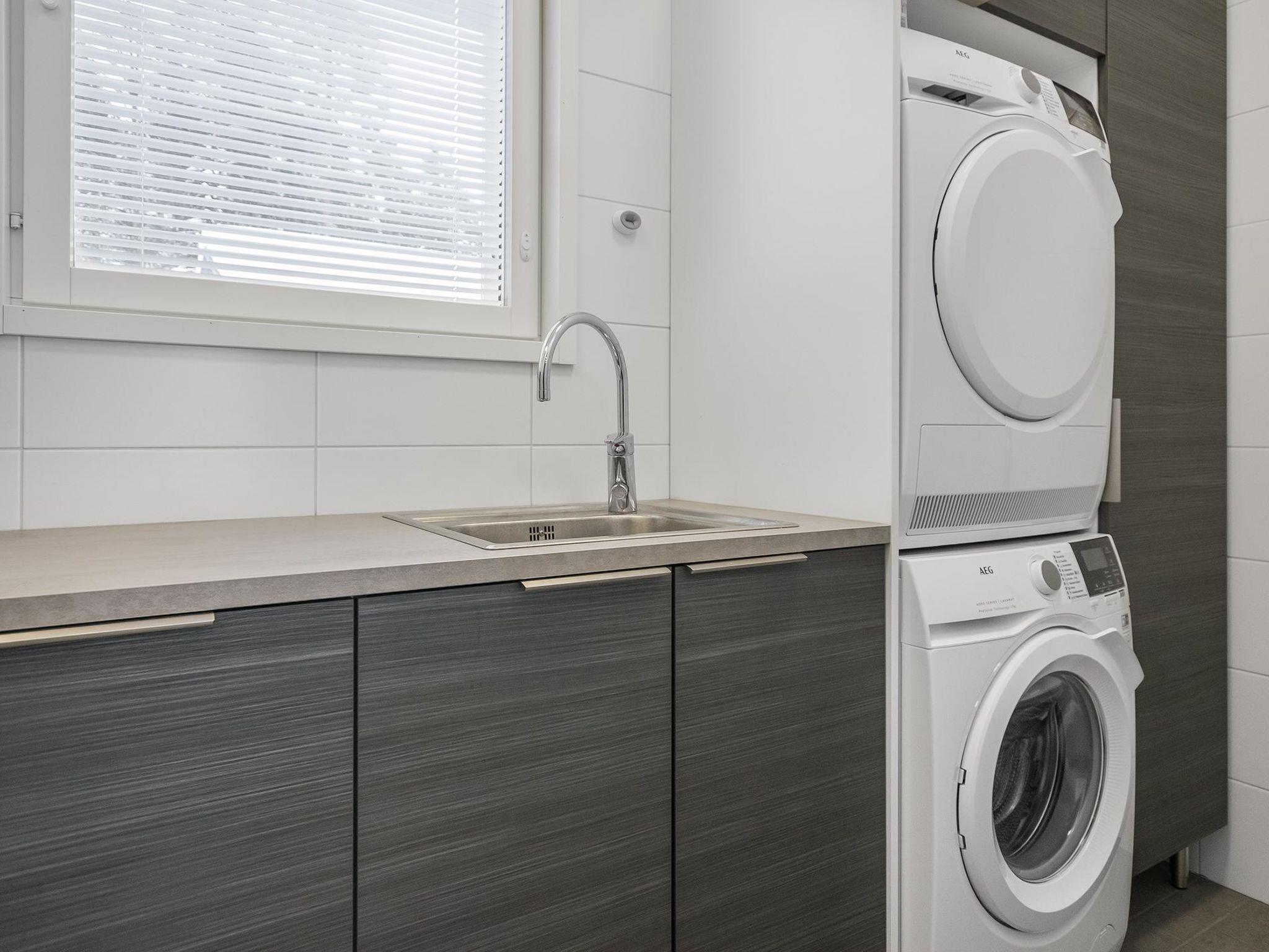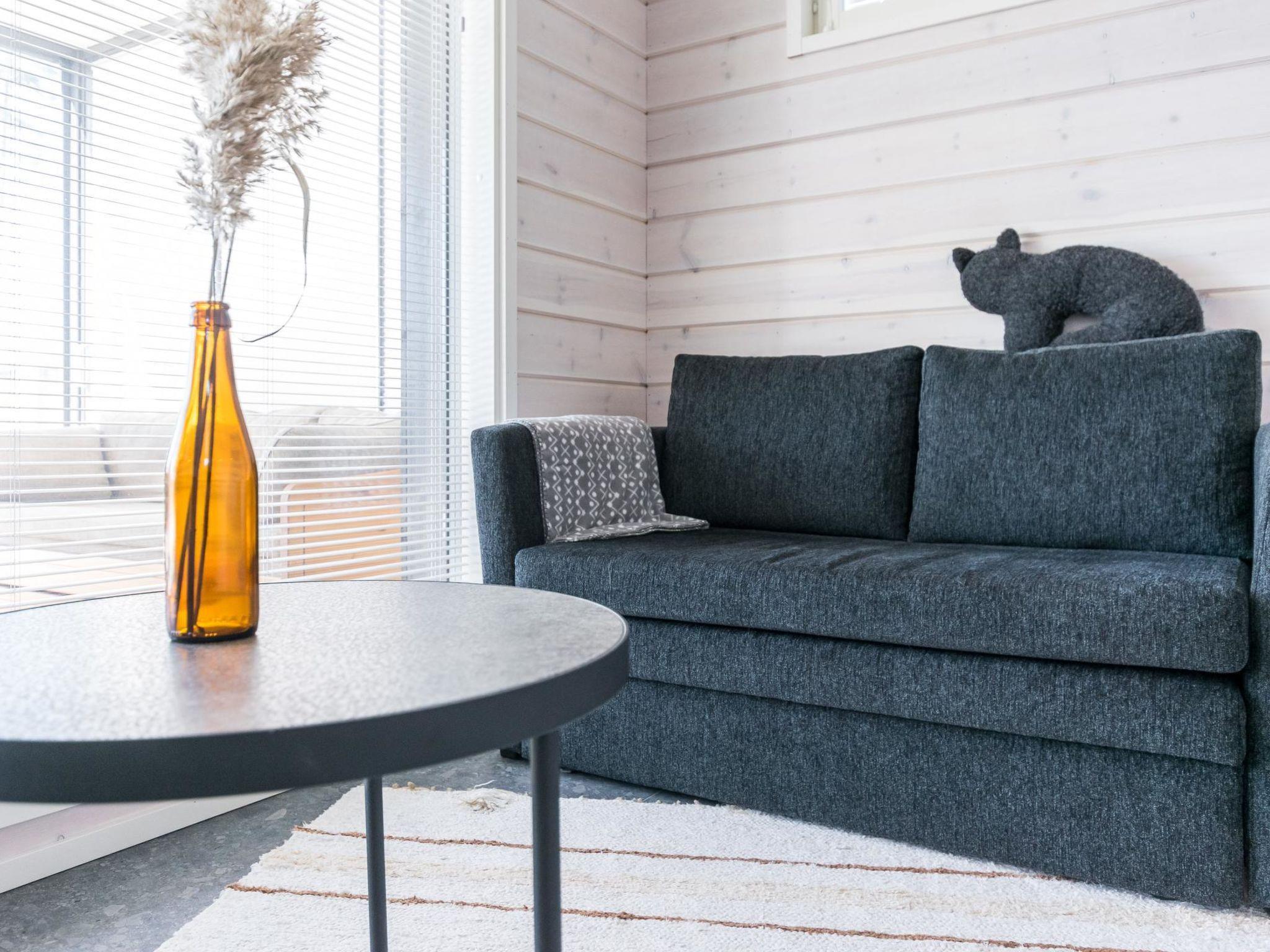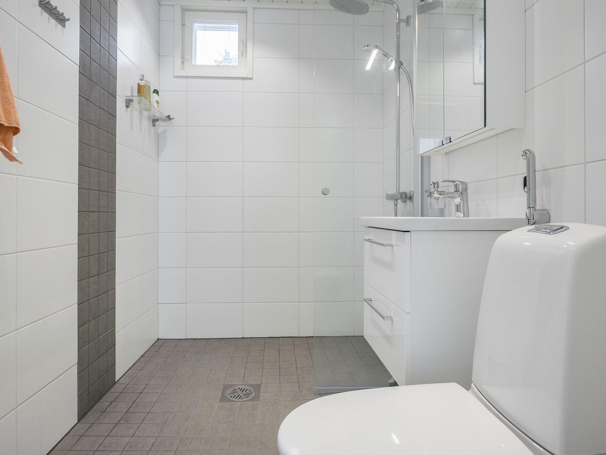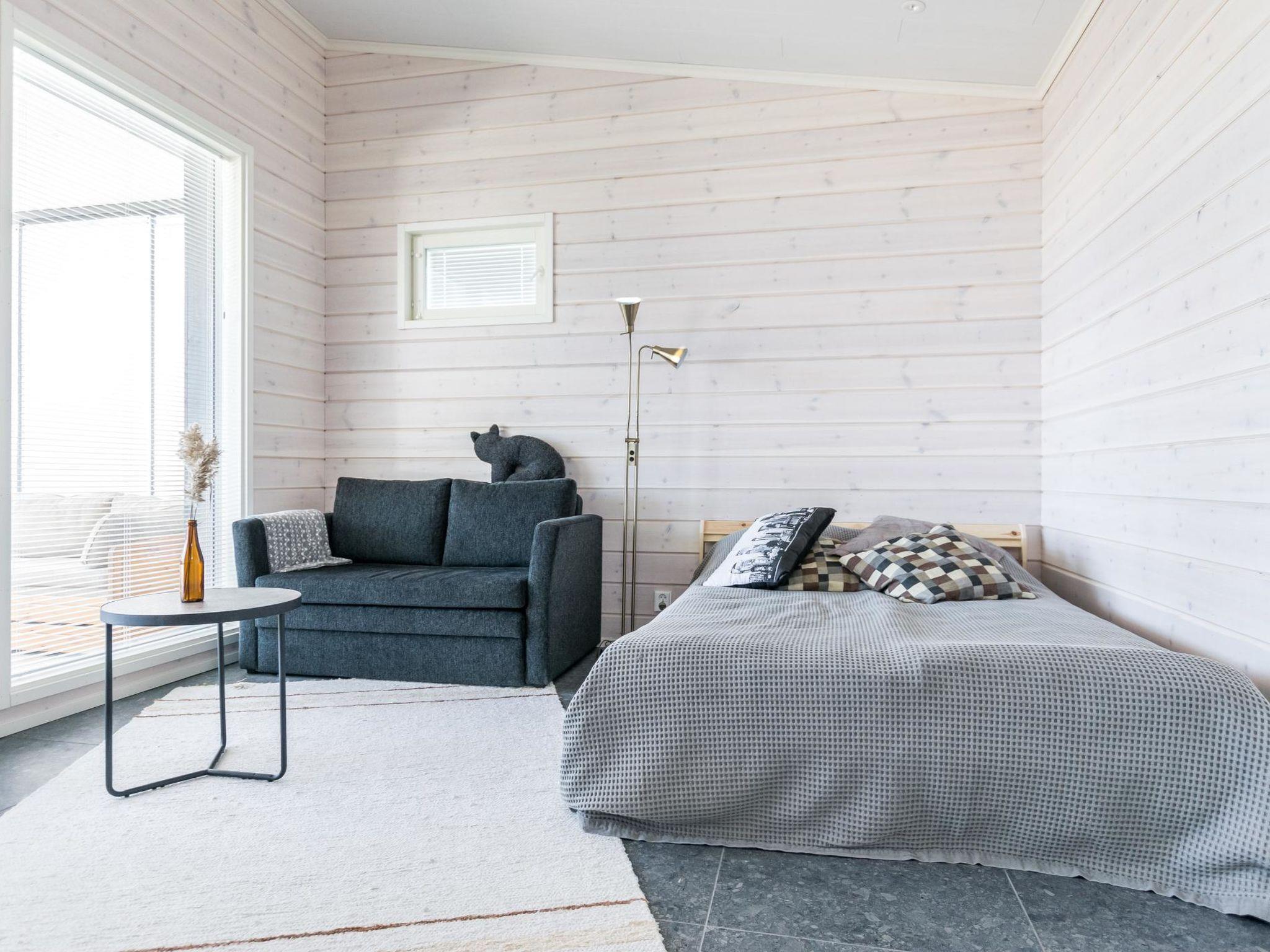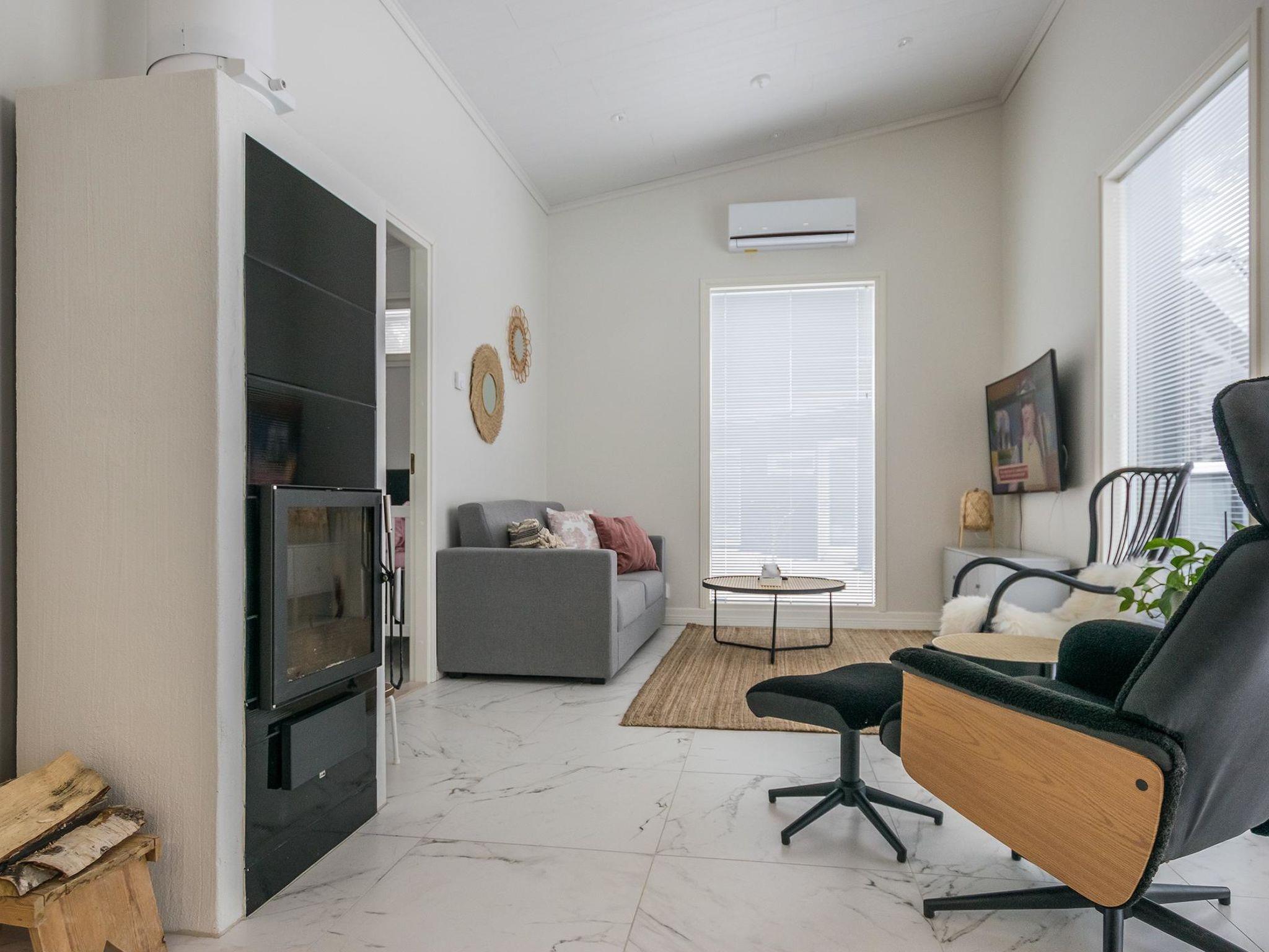 Wooden holiday home with boarded outer walls, built in 2021. Living room (140x190 cm sofa bed), living room/kitchen, heat storing fireplace, separate WC, utility room (washing machine and tumble dryer). Two bedrooms, bedroom 1: double bed, bedroom 2: double bed 140x200 cm and sofa bed (120 cm). Access to the bedroom is from the glazed terrace, the room is also a dressing room for sauna. Sauna is equipped with electric sauna stove, washroom with shower and WC, spacious glazed terrace.