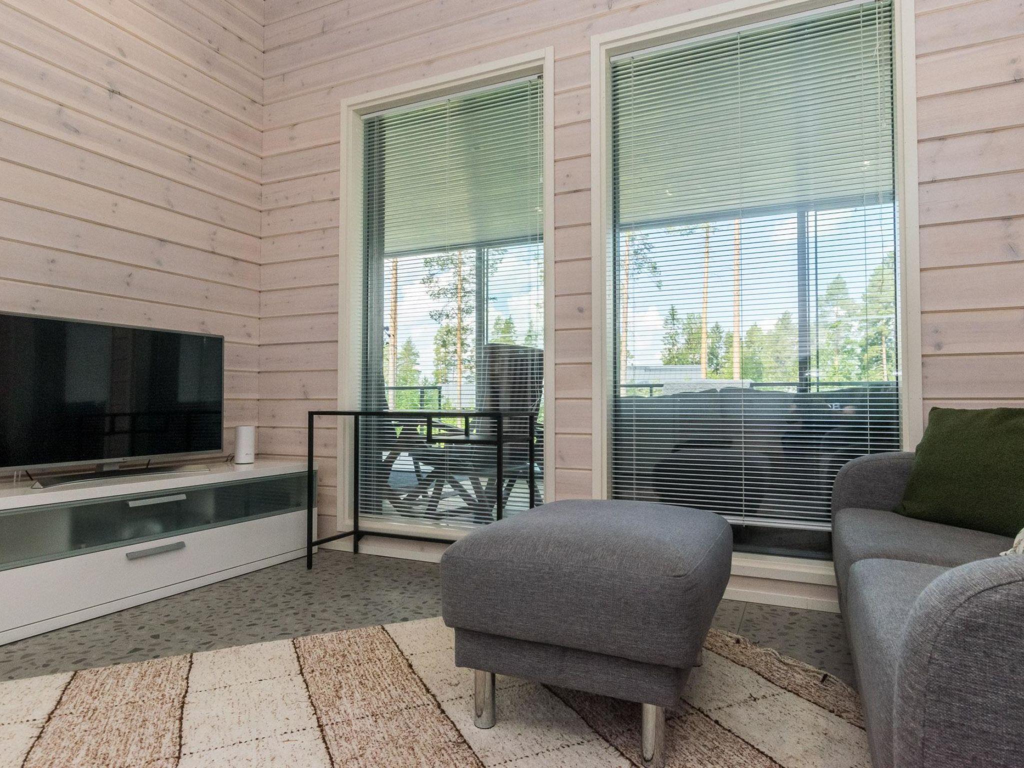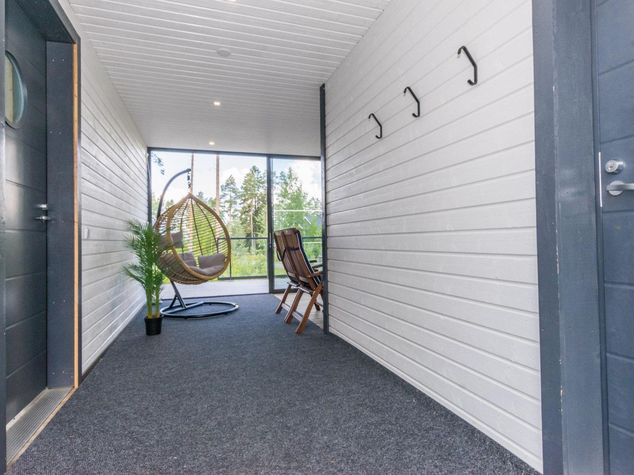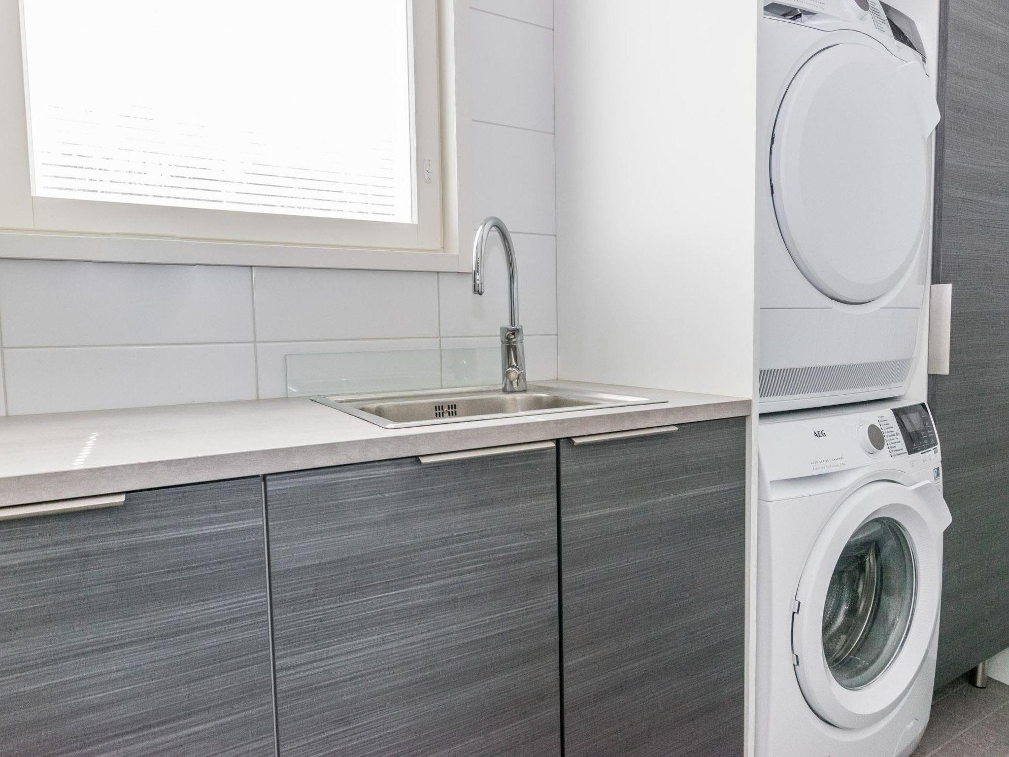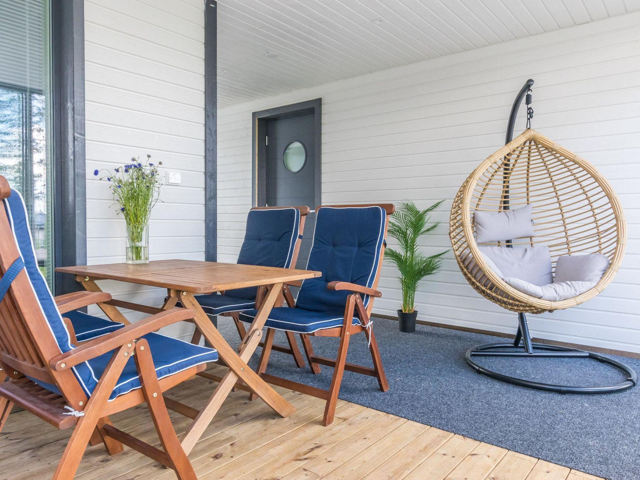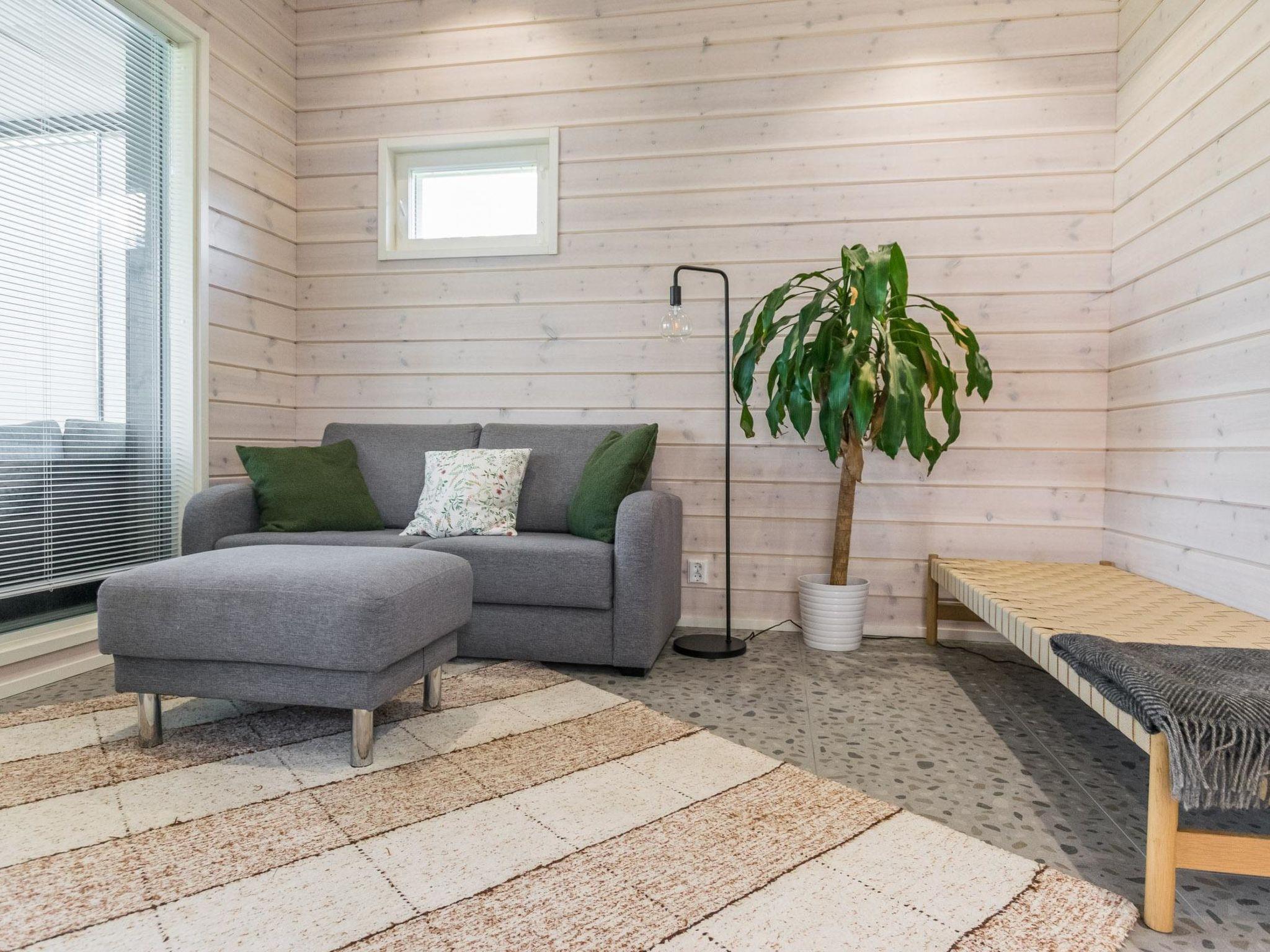 Wooden holiday home with boarded outer walls, built in 2021. Living room (140x190 cm sofa bed), living room/kitchen, heat storing fireplace, separate WC, utility room (washing machine and tumble dryer).