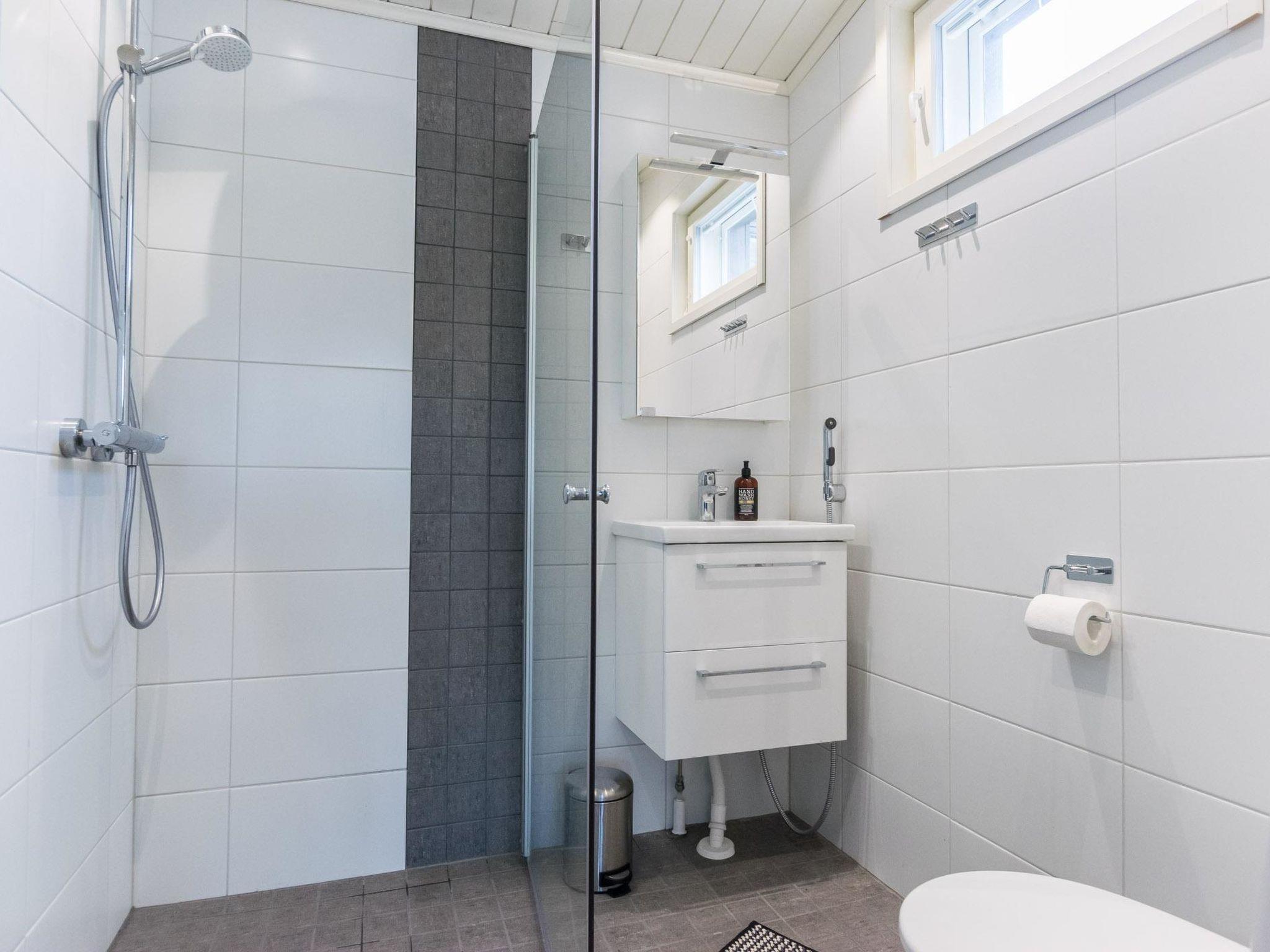 Two bedrooms, bedroom 1: double bed, bedroom 2: bed 65x190 cm and sofa bed (140 x 190 cm). Access to the bedroom is from the glazed terrace, the room is also a dressing room for sauna. Sauna is equipped with electric sauna stove, washroom with shower and WC, spacious glazed terrace.