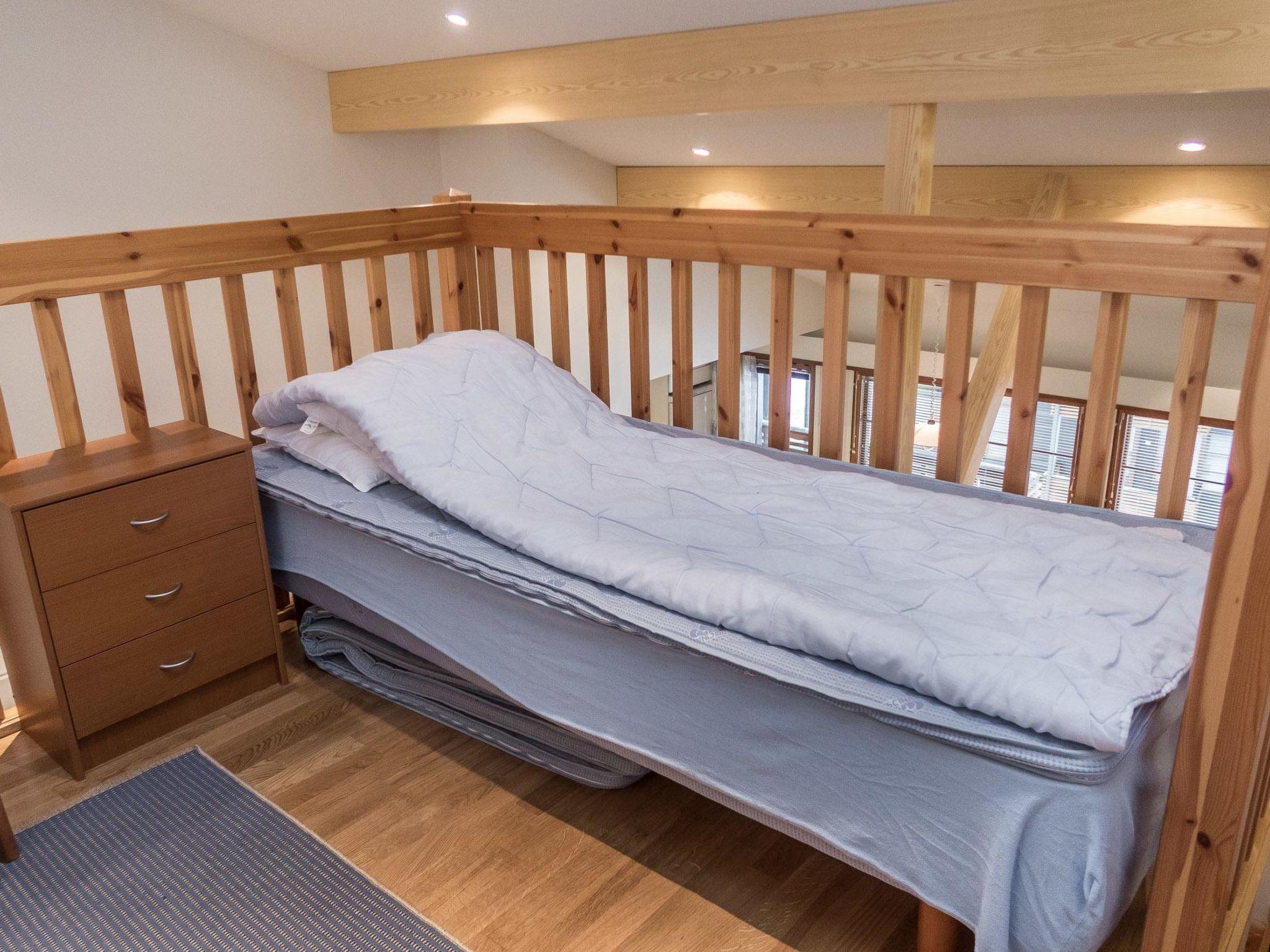 Living room with convertible sofa bed, kitchen, bedroom with 2 beds, sleeping loft with 2 beds. Sauna (electric stove) and bathroom, toilet. Balcony.