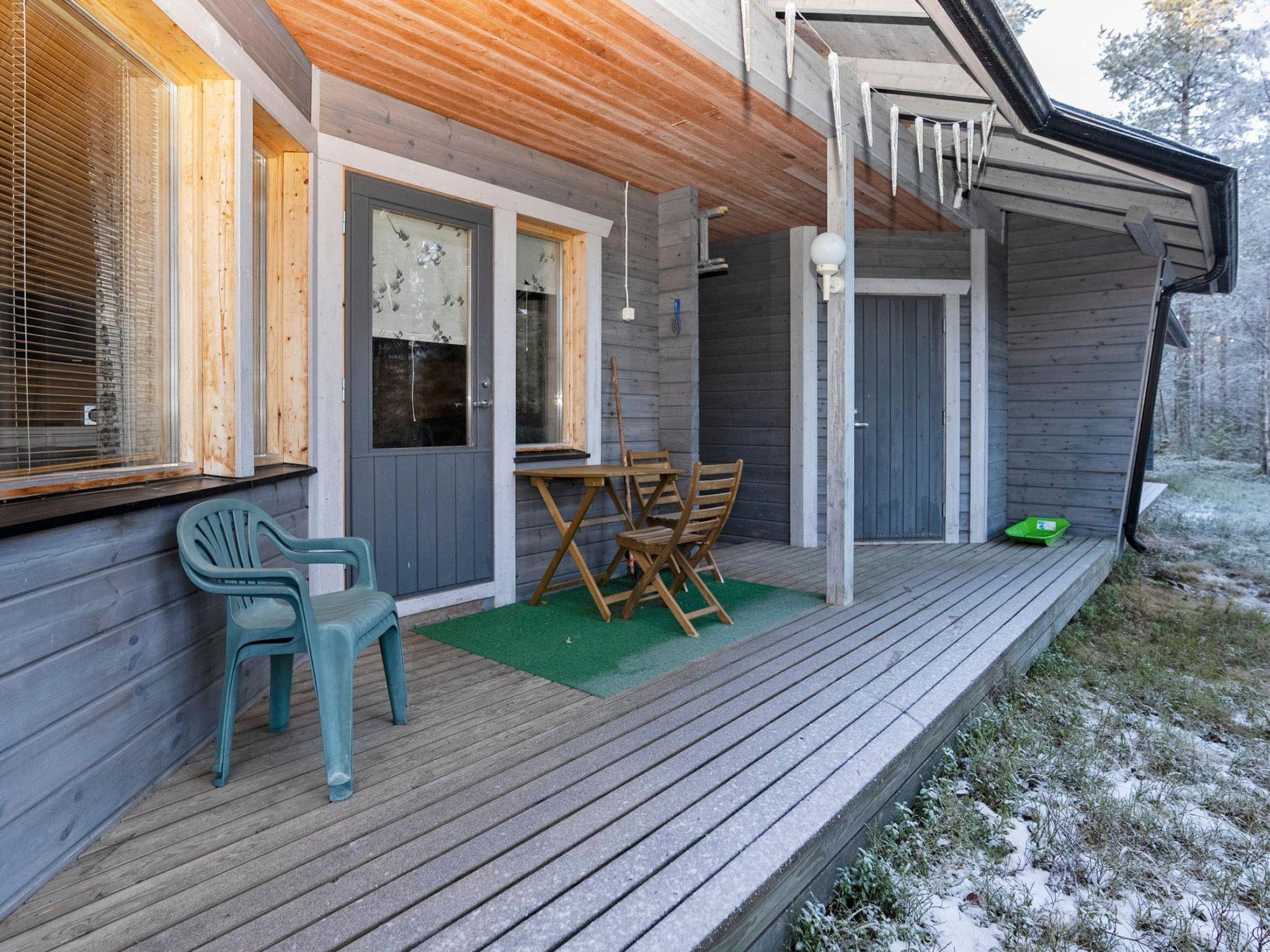 20 km north of Kuusamo, Ruka 9 km. Semidetached apartment built in 1994, living room with convertible bed , fireplace, kitchen, toilet, shower room, electric sauna, bedroom with double bed, sleeping alcove with convertible bed. Carport for one car. Roofed back terrace.
