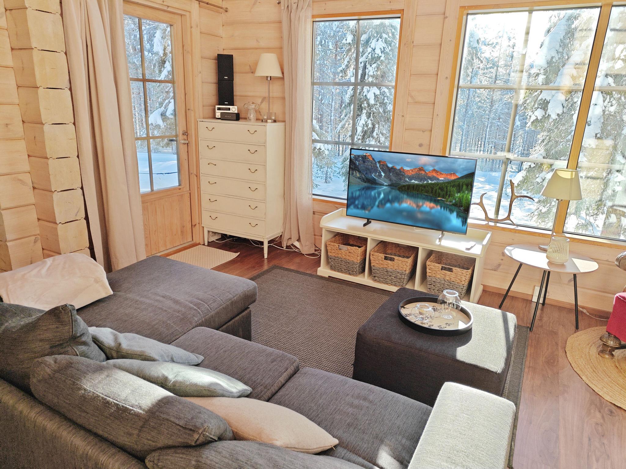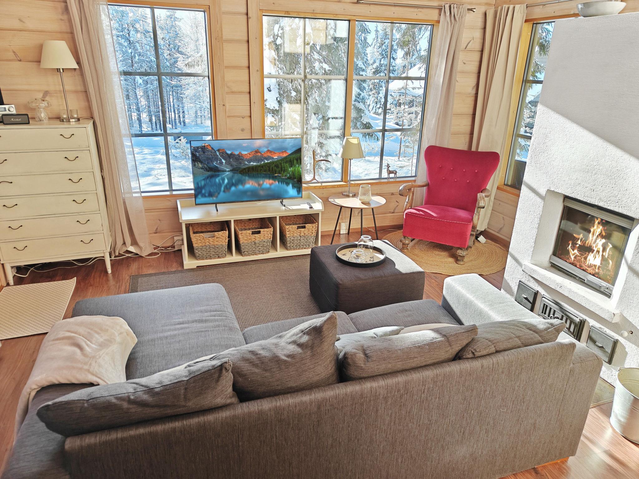 A cozy and atmospheric log cabin in a peaceful area near Ruka, ideal for families and couples who appreciate comfort and peace while enjoying the convenience of being close to Ruka’s ski slopes and Kuusamo’s outdoor paradise. Only 9 km to Ruka Village (West Ruka) and 20 km to Kuusamo town center, this cabin is the perfect base for year-round outdoor activities. Step straight into nature from your own yard and enjoy the shared lakeshore at Lake Ihtinki just 200 m away (clear water, gently sloping sandy bottom, and a campfire spot).