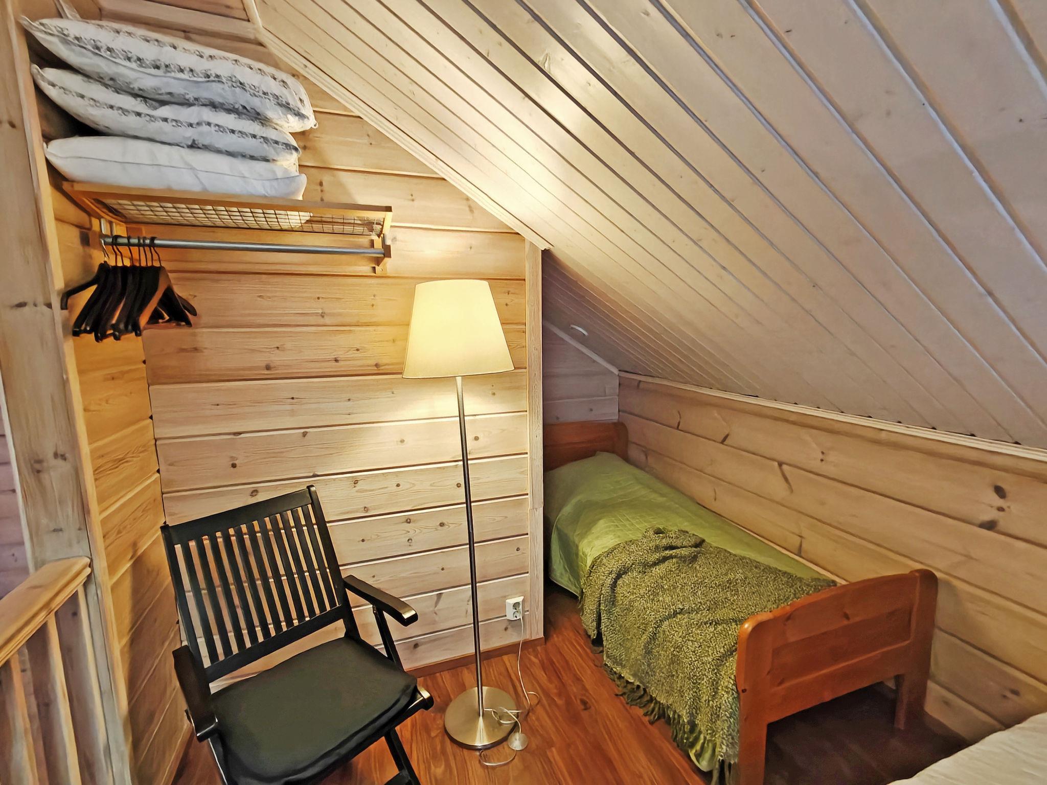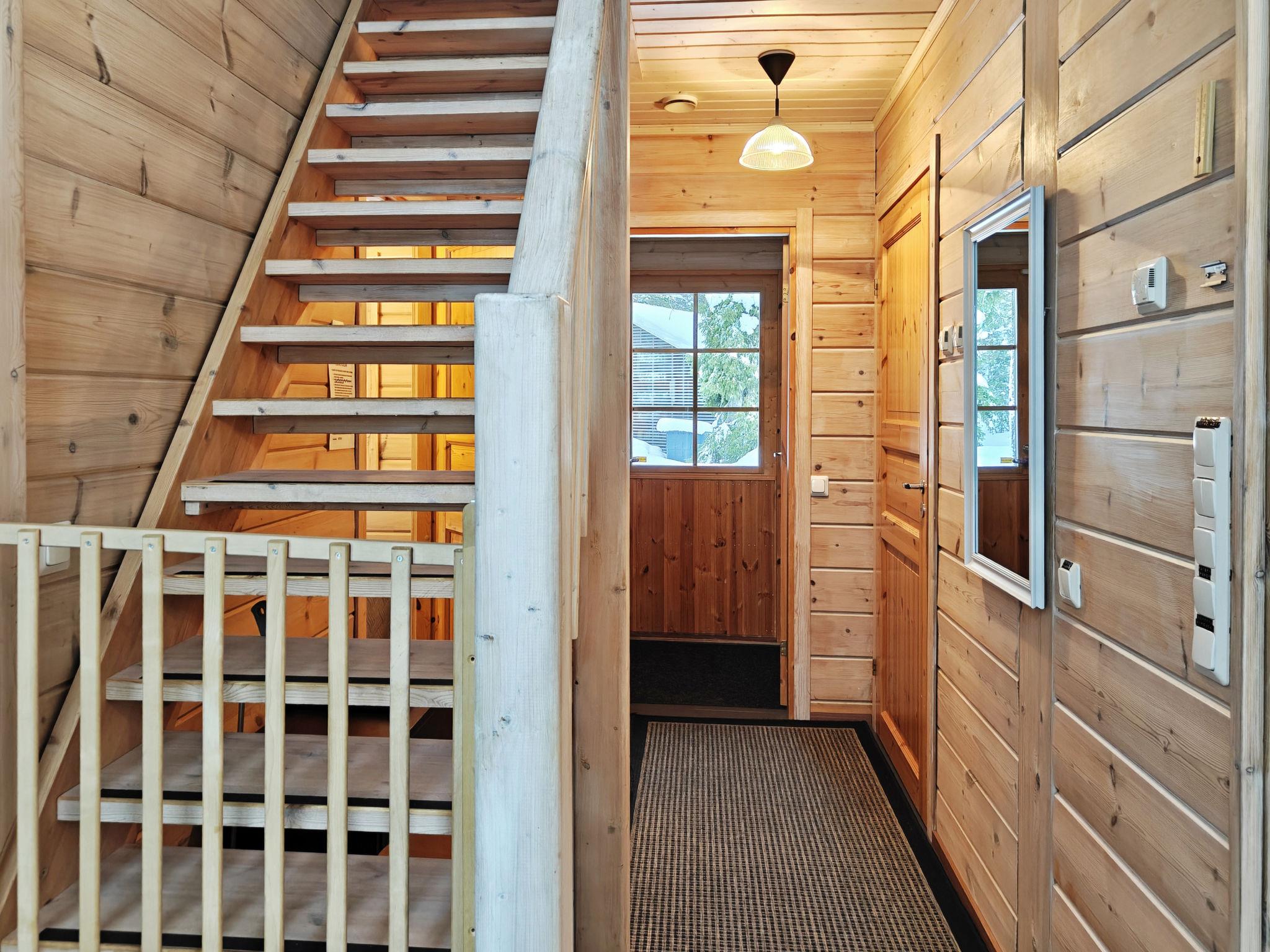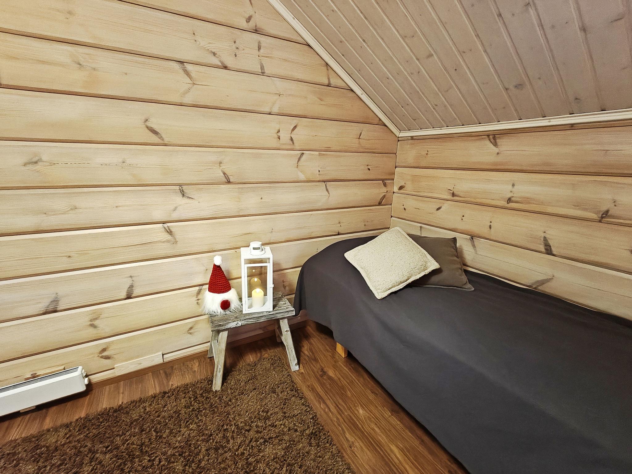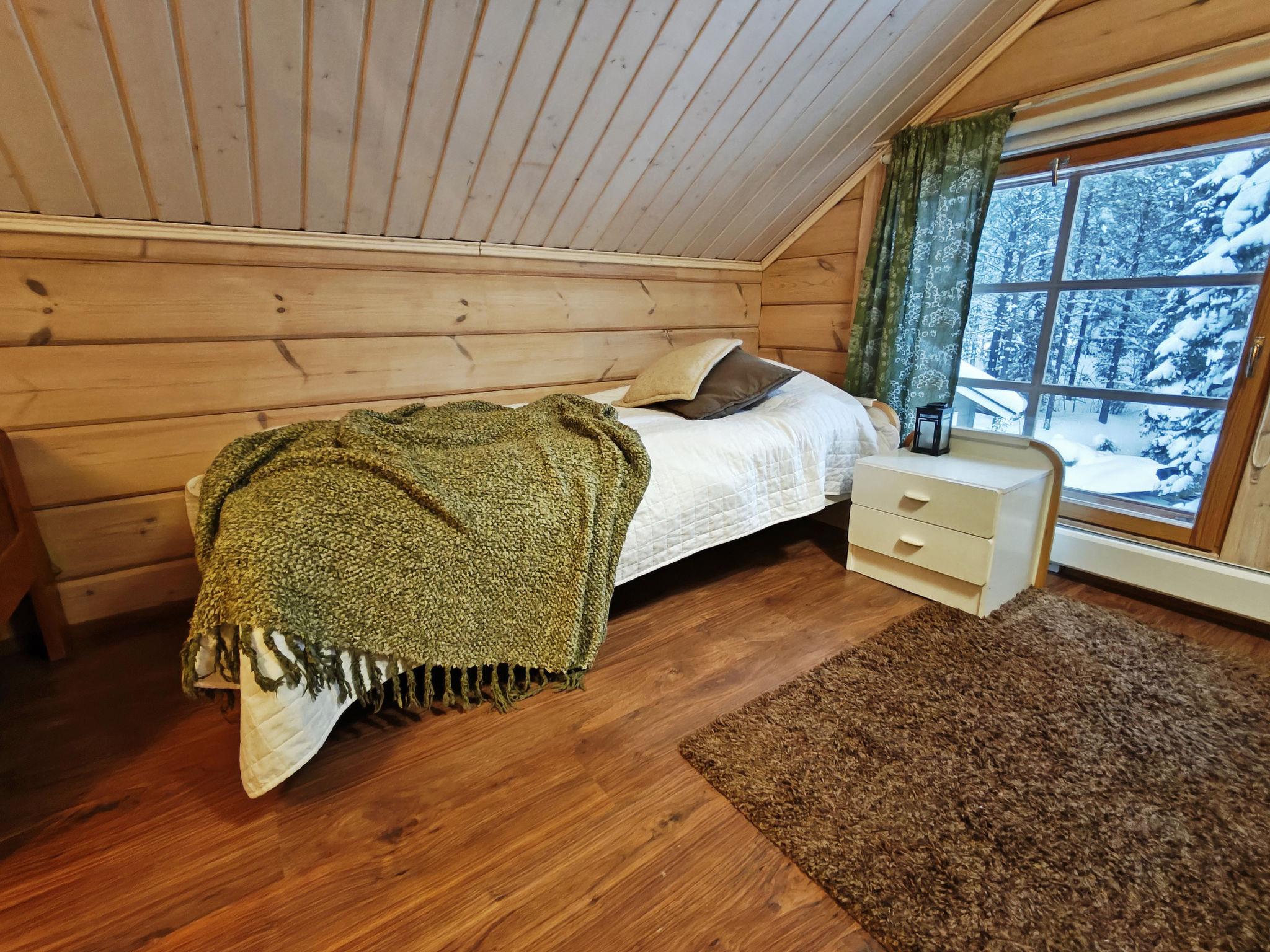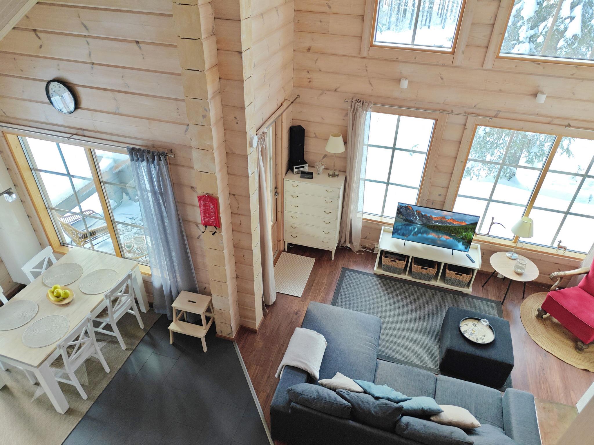 Log cottage 79 m² built in 2010, has sleeping spaces for 7 persons. There are 2 bed rooms downstairs, one with a180 cm double bed and the other with 2 x 80 cm beds. There are 3 x 80 cm beds on the open loft. The living room-kitchen has a dining table for 4 persons. Living room has large windows and a fireplace. There is free WiFi (5G) and Smart TV. The electrically heated sauna has good steam baths. There are also a washroom, utility room and separate toilet.