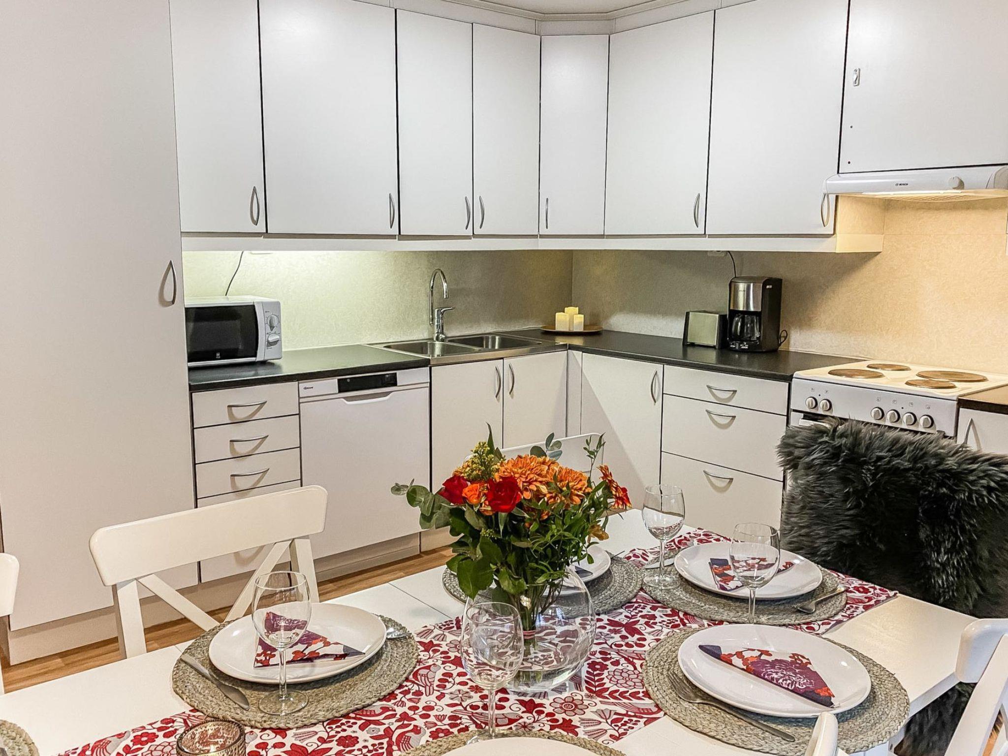 Cozy and spacious apartment in a semi-detached house on peaceful location. Services of Ruka ski resort and ski slopes are within 10 min driving distance. Lighted road from Rukajärventie-road to the cottage yard. Facilities like ski trail (700 m) and husky farm (2 km) are nearby. Possibility to rent a rowing boat to the shore of nearby Pyhäjärvi for an additional fee of 70 e / week, reservations through a cottage caretaker.