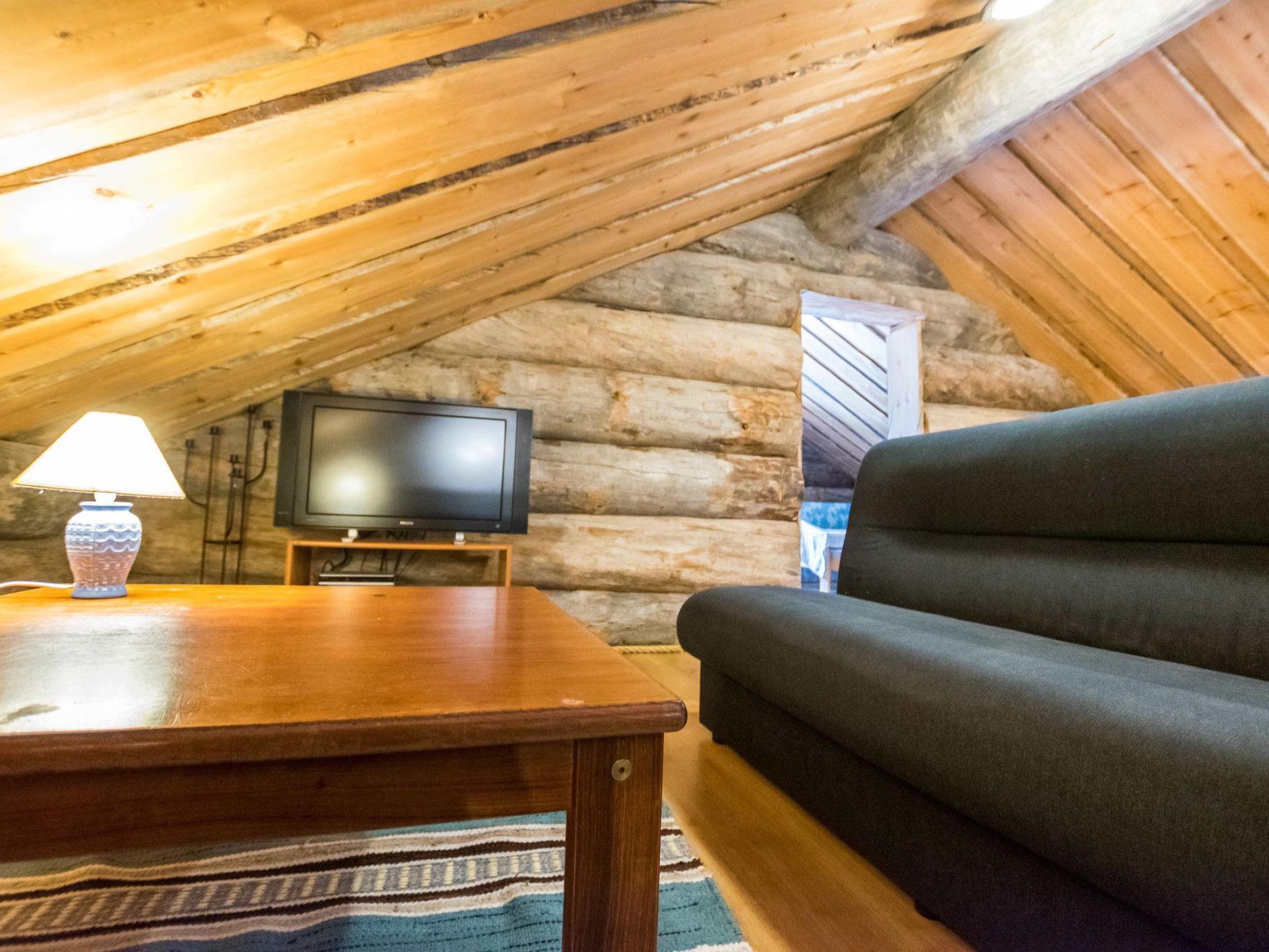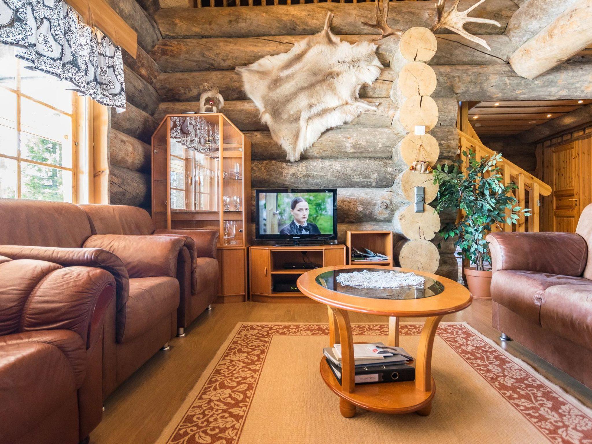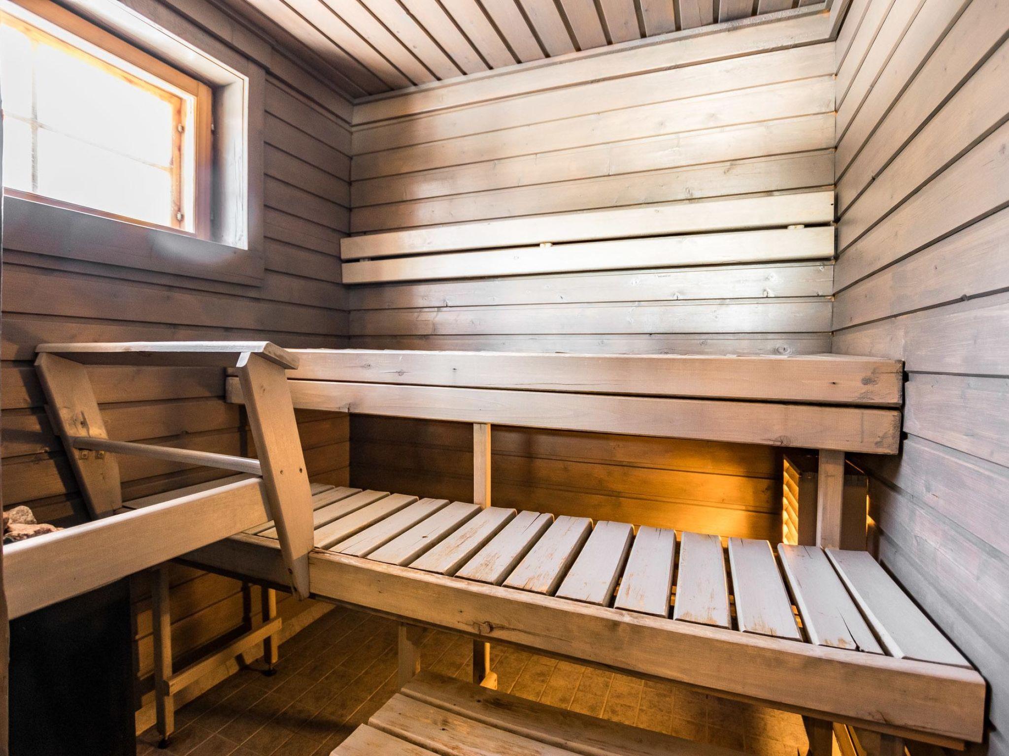 Log cabin, built in 2007. Living room/kitchen. Ground floor: three bedrooms, each with 2 beds. Upstairs with sloping ceilings: two bedrooms (no door): one with 2 beds and mattress, other with 3 single beds. Convertible sofa bed as extra bed in upstairs lobby. Electric sauna and bathroom with toilet. Additionally separate toilet.