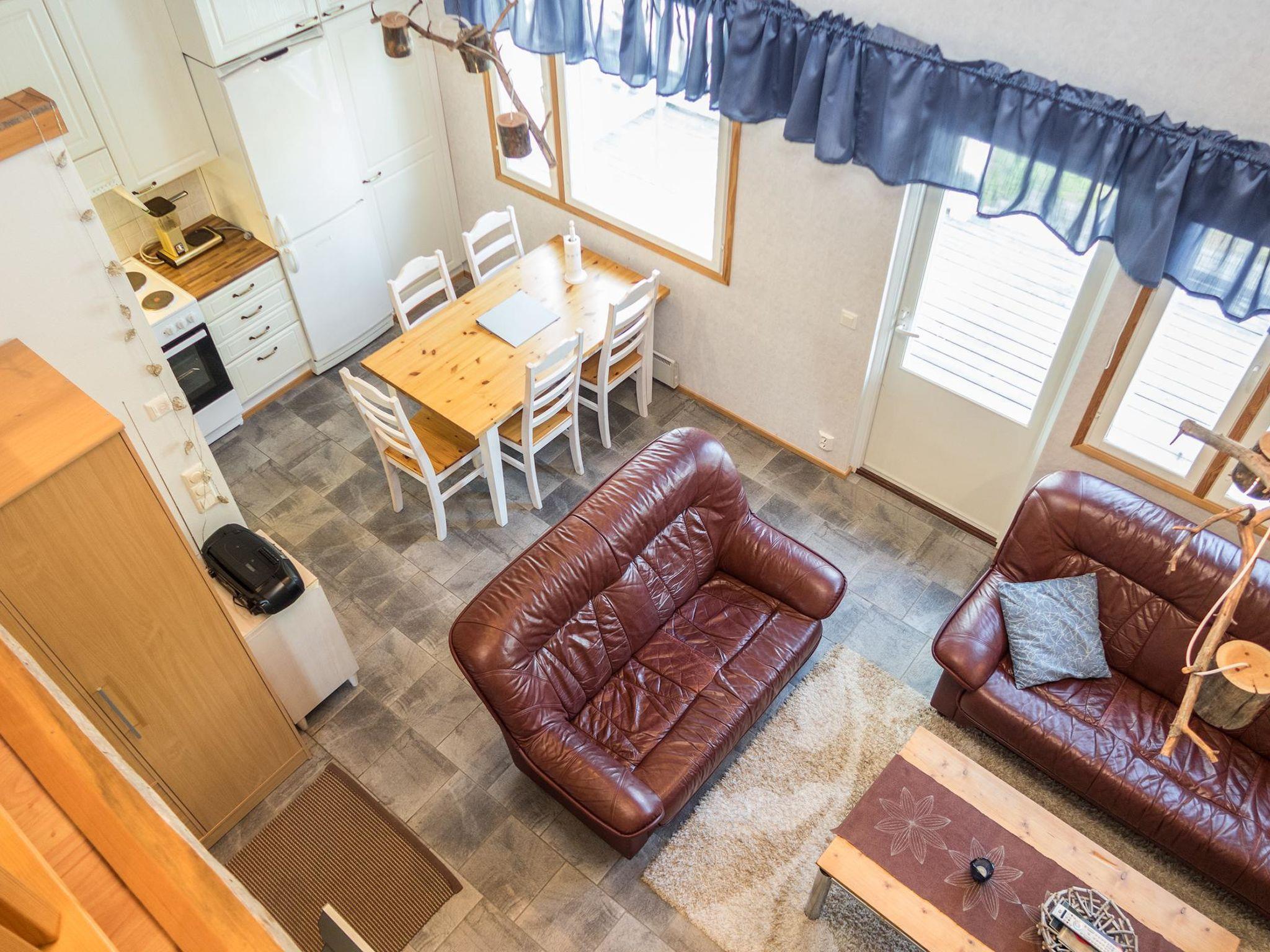 28 km to the north from Kuusamo, Vuosseli (East-Ruka) 1,2 km, Ruka village (West-Ruka, central square) 5,5 km, lake Vuosselijärvi 200 m. Apartment in a row house, three apartments in total, built in 2006. Bedroom: double bed. Loft: 2 beds + mattresses. Living room/kitchen. Electric sauna and washroom with WC.