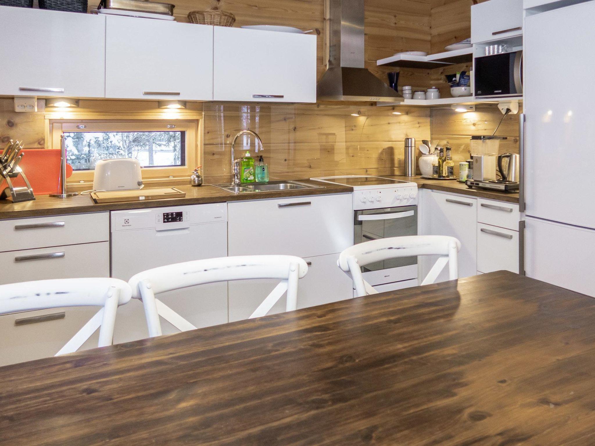 Separate log cabin built in 2013. Living room kitchen, downstairs two bedrooms, one with a double bed and the other bedroom with separate beds for 2. In the loft, separate beds for 2 (80 cm) and 1 x 120 cm bed. Electric sauna, washroom/toilet and separate toilet.