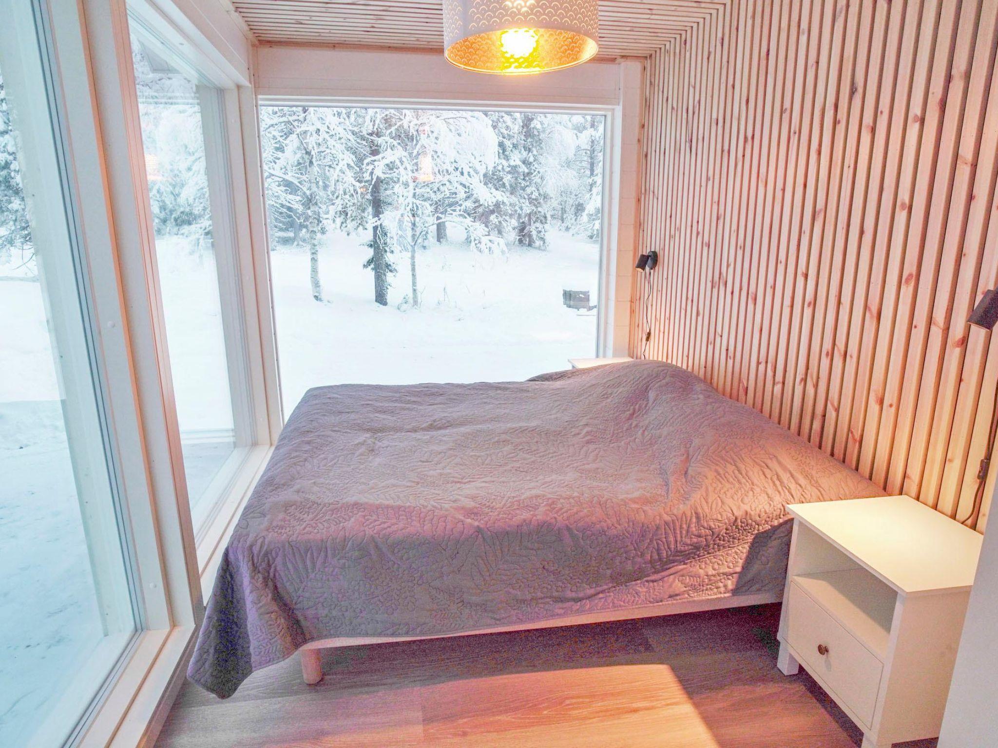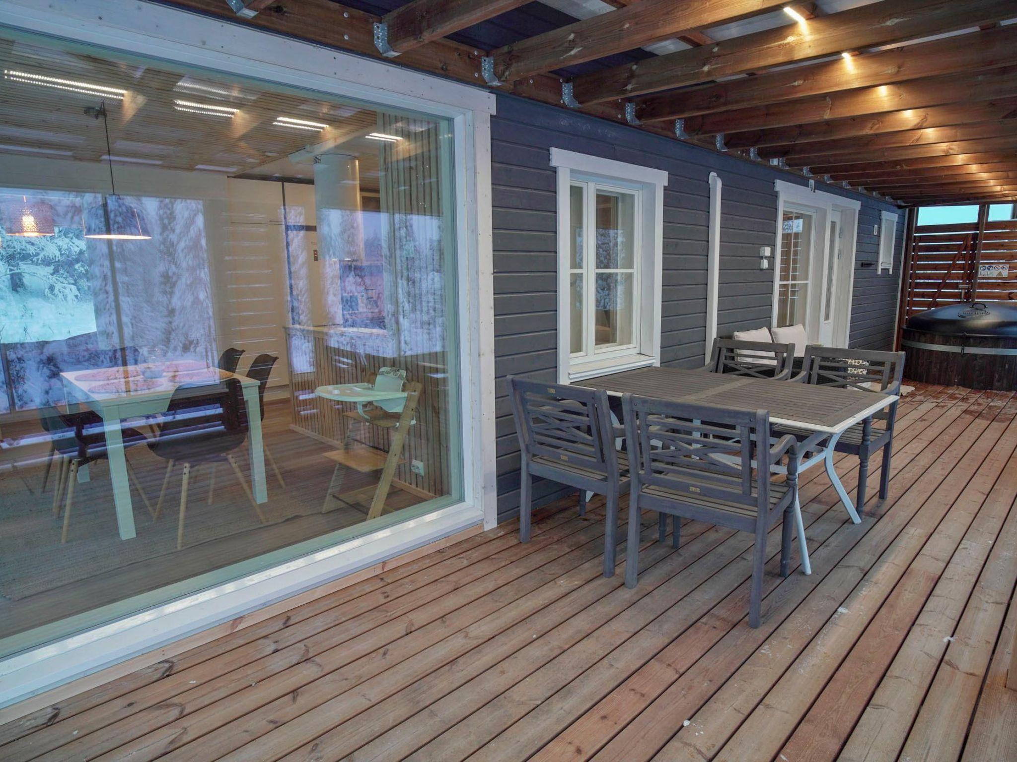 20 km to the north from Kuusamo, Ruka 7 km, lake Pyhäjärvi 700 m. Apartment in the semi-detached house, built in 2020. Spacious living room/kitchen, bedroom 1: 2 beds and bunk bed, bedroom 2: double bed, washroom, WC, electric sauna, glazed terrace, car shelter.