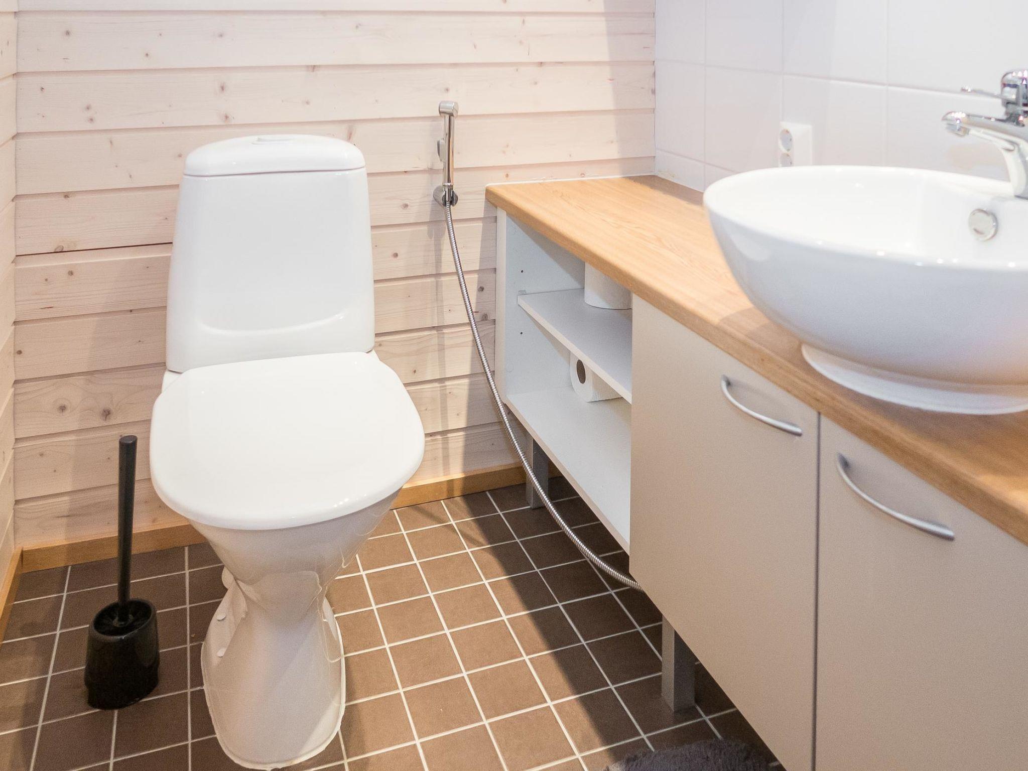Sauna and WC on the ground floor. The second WC is on the upper floor. There are TVs both downstairs and upstairs. The apartment also has a hairdryer.