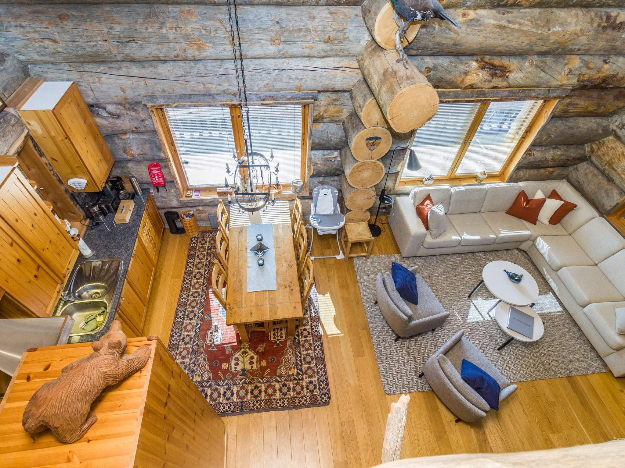 Villa Saaruli was built from massive logs in 2000. The villa itself is magnificent, as well as the location is perfect. You can easily access the ski lifts, ski and snowmobile trails right from your own yard, making it an excellent choice for travelers without a car. The nearest ski lifts (Vuosseli Express and Kulmahissi) are within 100 m walking distance, as well as a year-round operating gondola lift that takes you over the fell to Ruka village. Several high-quality restaurants and a small K-market are also within walking distance.