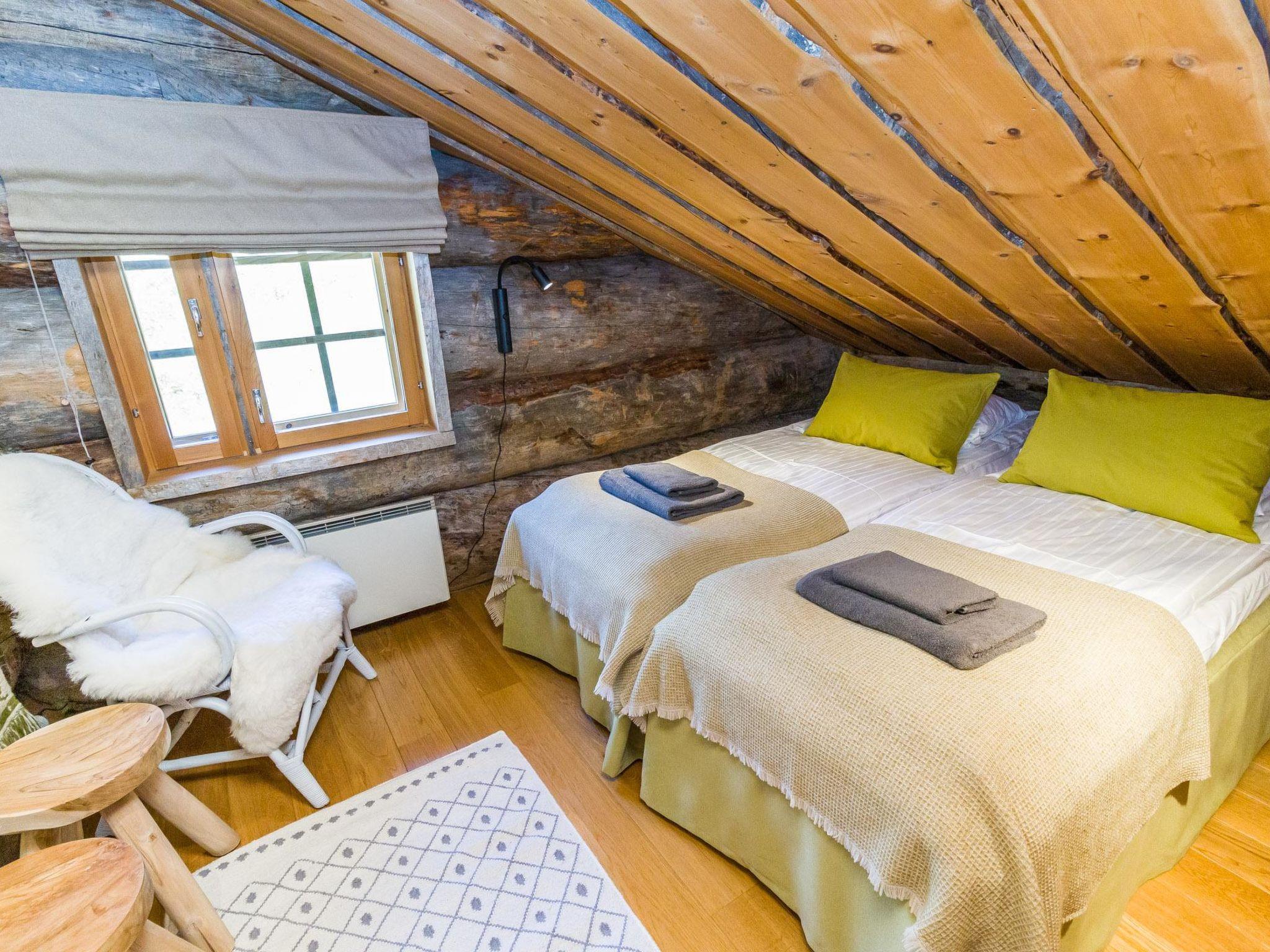 Villa Saaruli provides excellent amenities for a winter holiday. The cabin's cozy interior was mostly renovated in 2023. The open space on two floors includes kitchen, dining area, and seating area around the natural stone fireplace. The cabin has four bedrooms, two with double beds and two with two single beds (located on the upper floor). Ground floor contains a sauna area and a separate WC, and there is a small WC on the upper floor as well. In a separate utility room, there's washing machine and drying cabinet. On the slope side of the cabin, there's a terrace that covers the entire length of the building. Sunlight reaches the terrace until late in the afternoon. Guests arriving at Villa Saaruli can enjoy hotel-style beds and towels. Final cleaning and electricity are included in the rent.