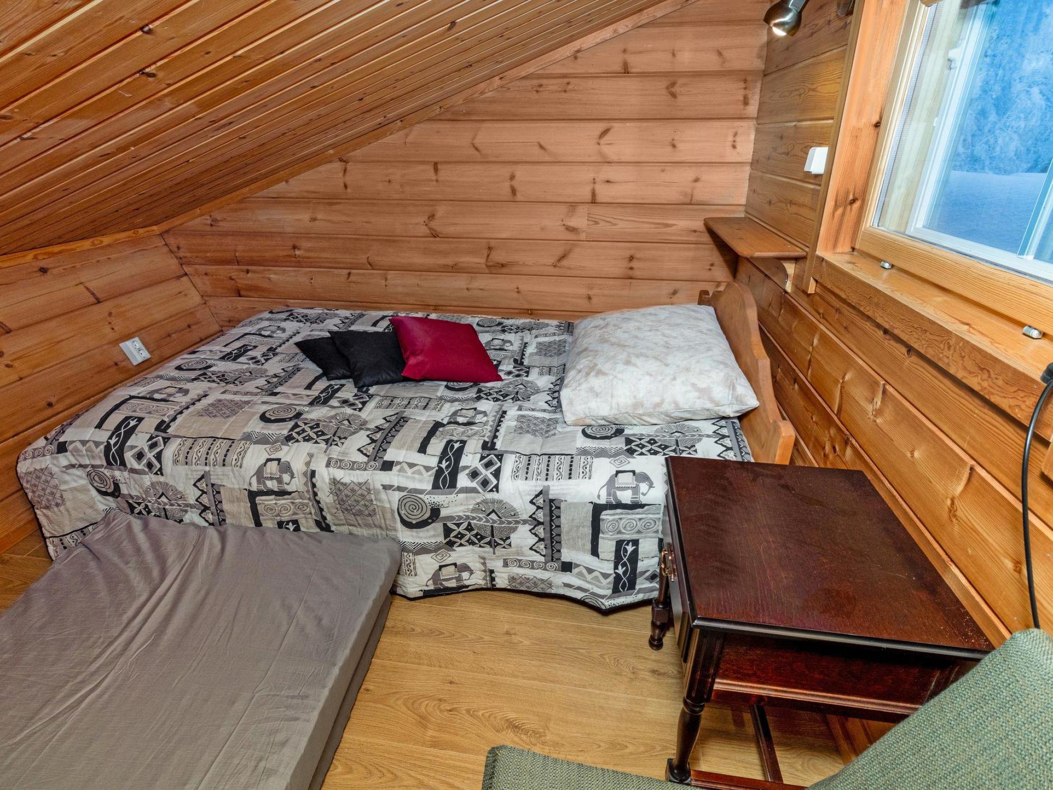Cozy cabin, the other half of a semi-detached house, situated by Lake Kuontijärvi. The cabin has one bedroom with a 120 cm wide bed. Additionally, there is a pull-out sofa for two in the living room and three beds in the loft. The accommodation is intended for a maximum of 6 people.