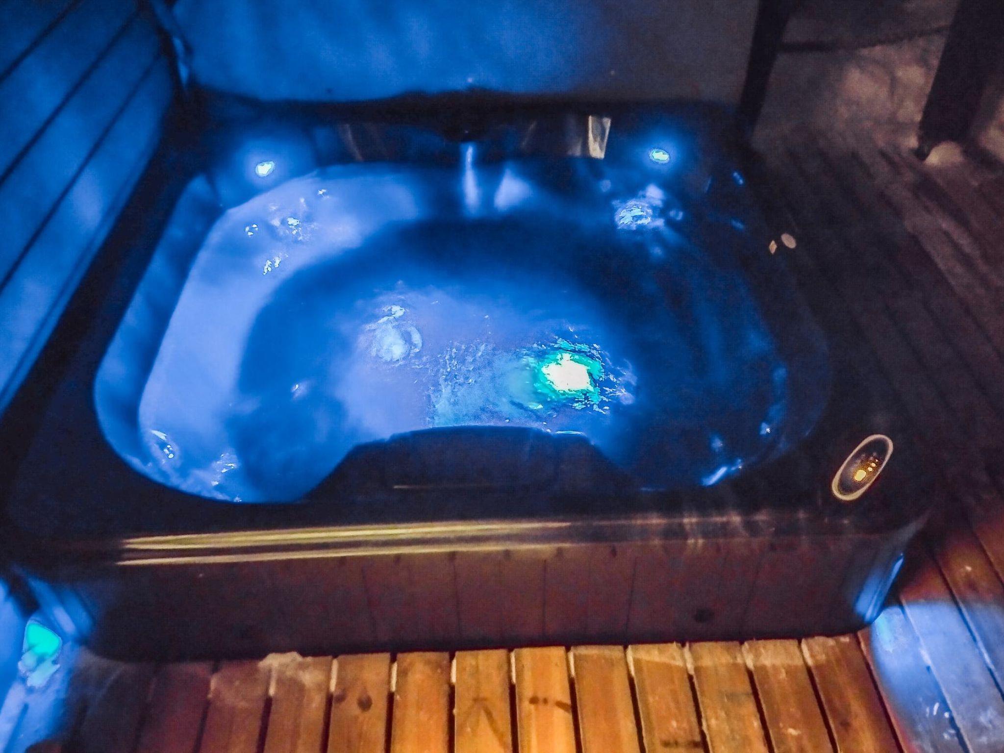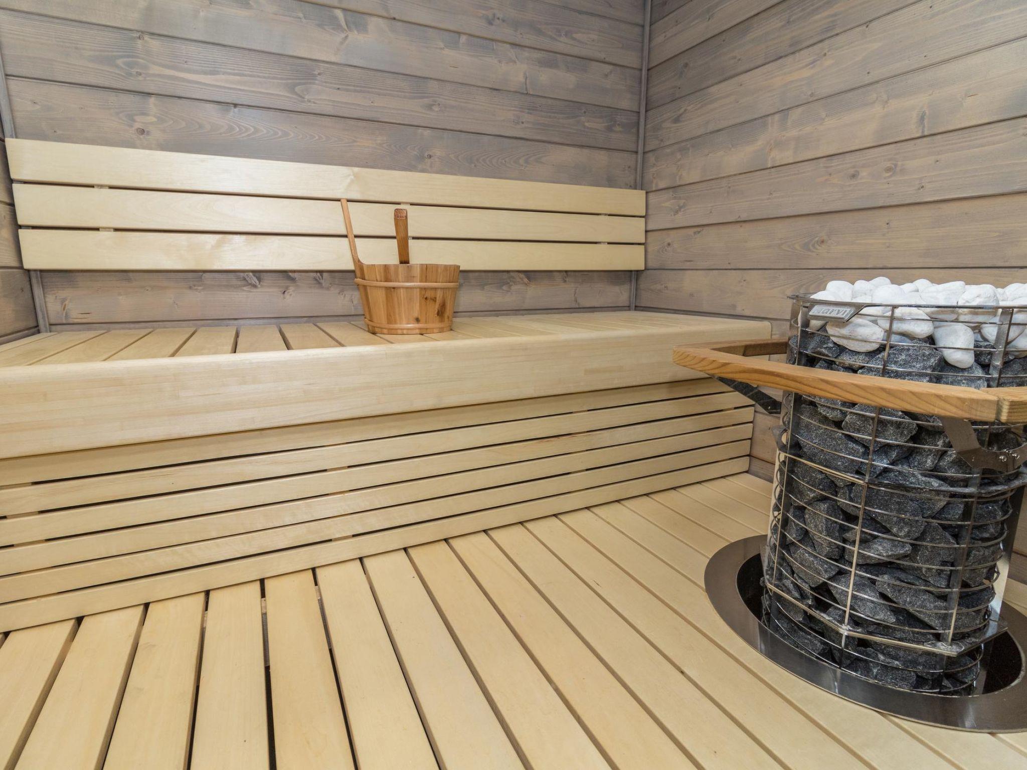 The cabin's amenities include a living room/kitchen, as well as an electric sauna, providing the perfect setting for relaxation and well-being during your stay.