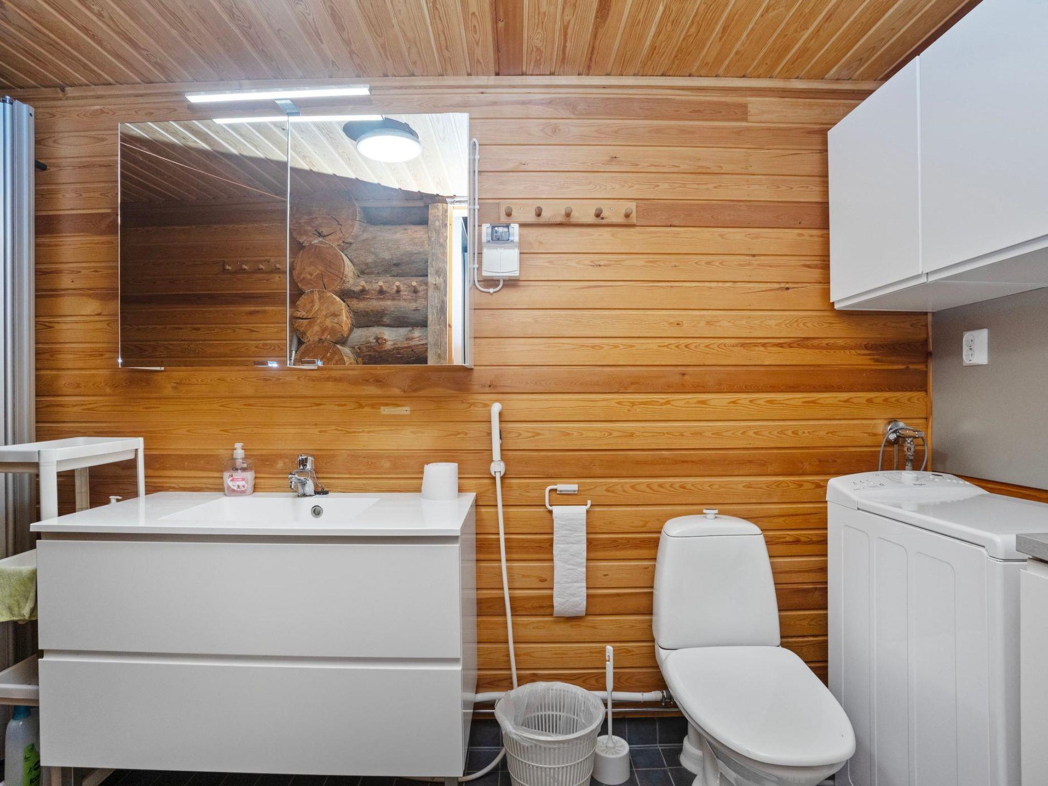This cozy kelo-log apartment, built in 1987, features one bedroom with a 160 cm wide bed. The bedroom also has a loft with sleeping space for two on mattresses. Additionally, there is a loft in the living area with mattresses for four.
