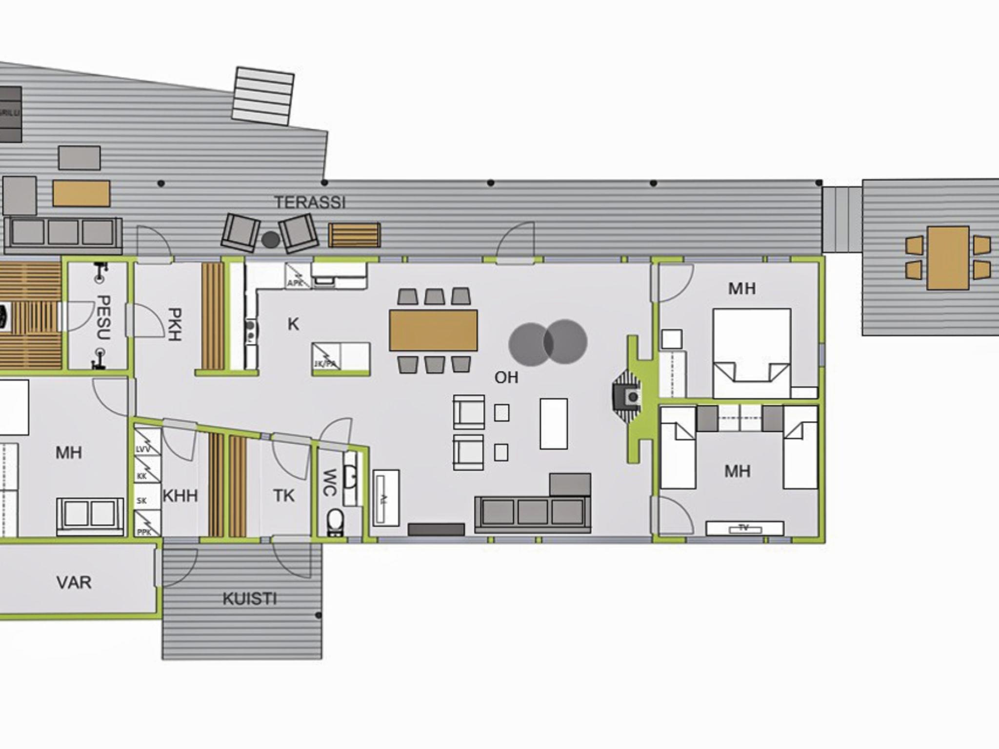 Stylish and well equipped villa, built in 2005. Spacious and bright living room, bedroom 1: double bed, bedroom 2: 2 beds, bedroom 3: sofa bed for 2, mattress for 2, combined kitchen, large utility room, sauna (electric stove), 2 showers, dressing room, large terrace.