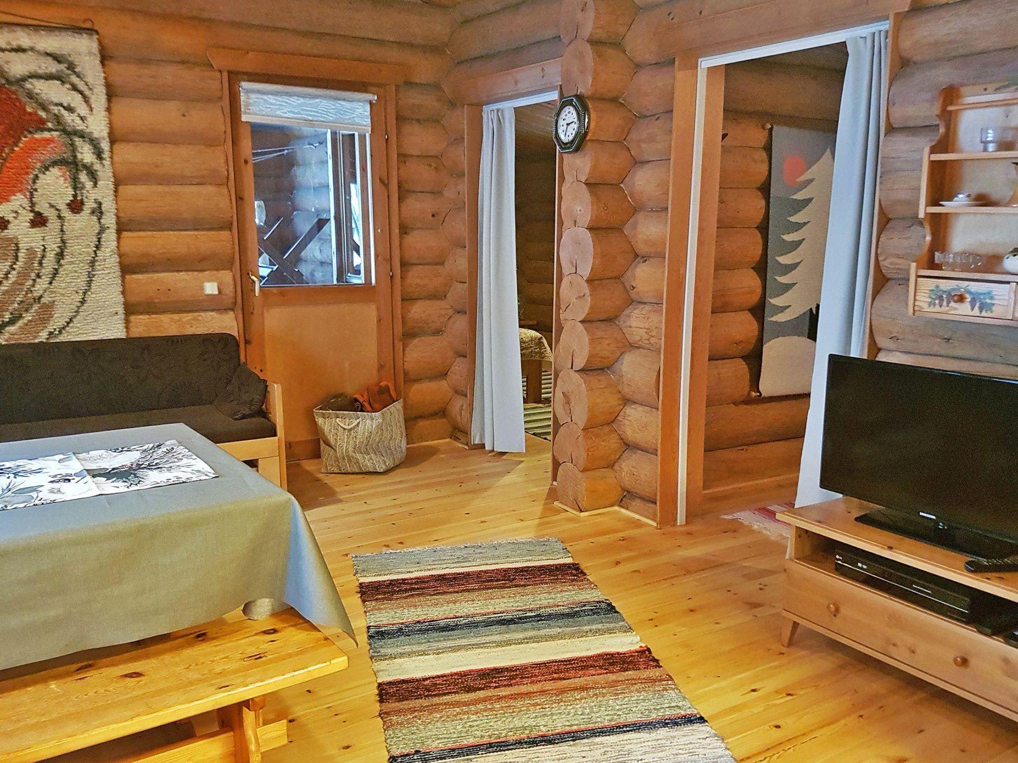 Log cottage, built in 1990, bedroom with double bed (width 140 cm), 2 alcoves with curtains: one with two beds and the other with double bed (width 180 cm), living room: convertible bed, combined kitchen/living room, electric sauna.