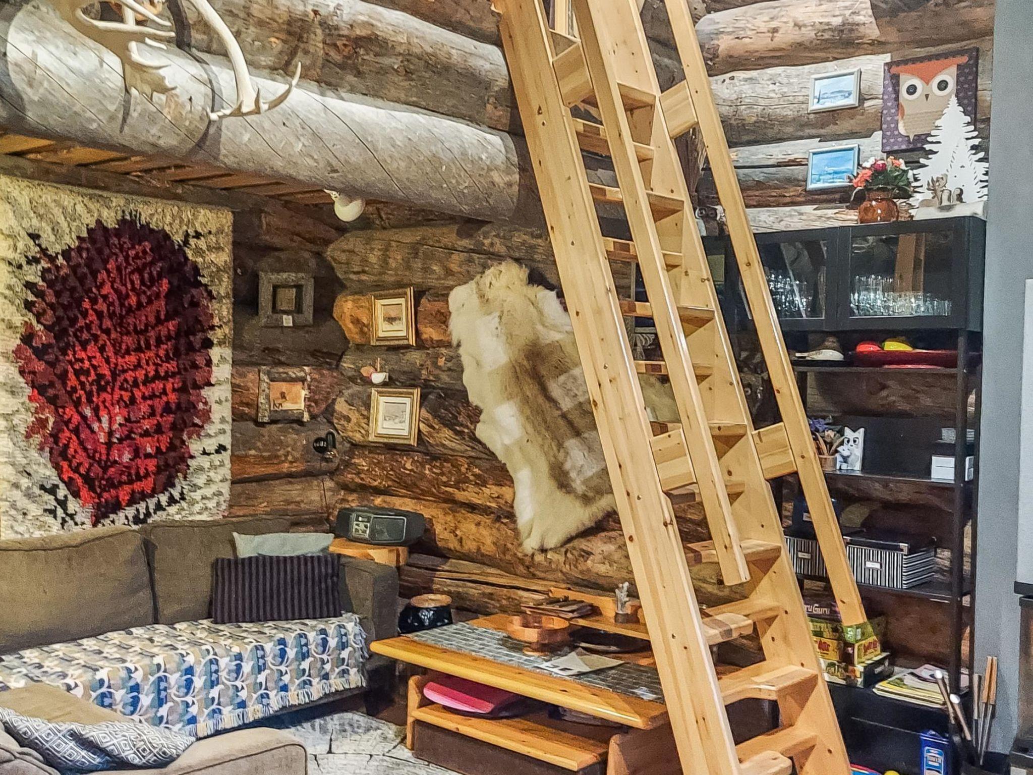 27 km north of Kuusamo, Ruka village (Western Ruka) 3.5 km, Salmilampi pond 500 m. Log-built apartment, built in 1989, bedroom: double bed (width 140 cm), loft (13 m², low room height): double bed and 2 mattresses + baby cot. Kitchen. Electric sauna. Apartment can be rented for maximum 4 adults; additionally 2 children are possible.