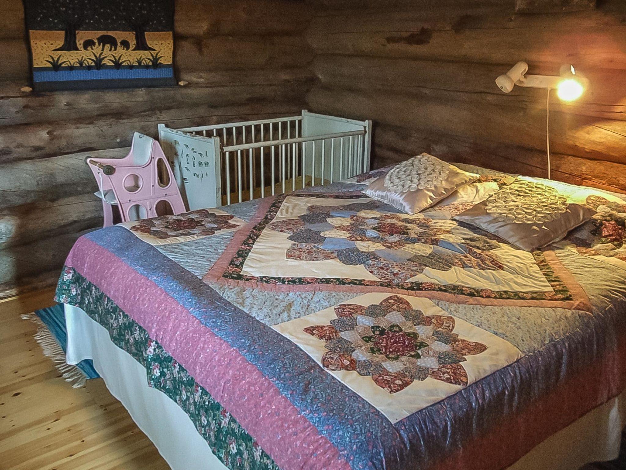 28km east of Kuusamo, Lake Suininki 3 km, Ruostelampi pond 30m (small pond), sandy bottom beach, jetty, boat at Ruostelampi pond. Log cottage, built in 1993, bedroom: double bed + crib, loft (floor area 21 m², low room height): 2 beds + 4 mattresses, combined kitchen/living room, electric sauna.