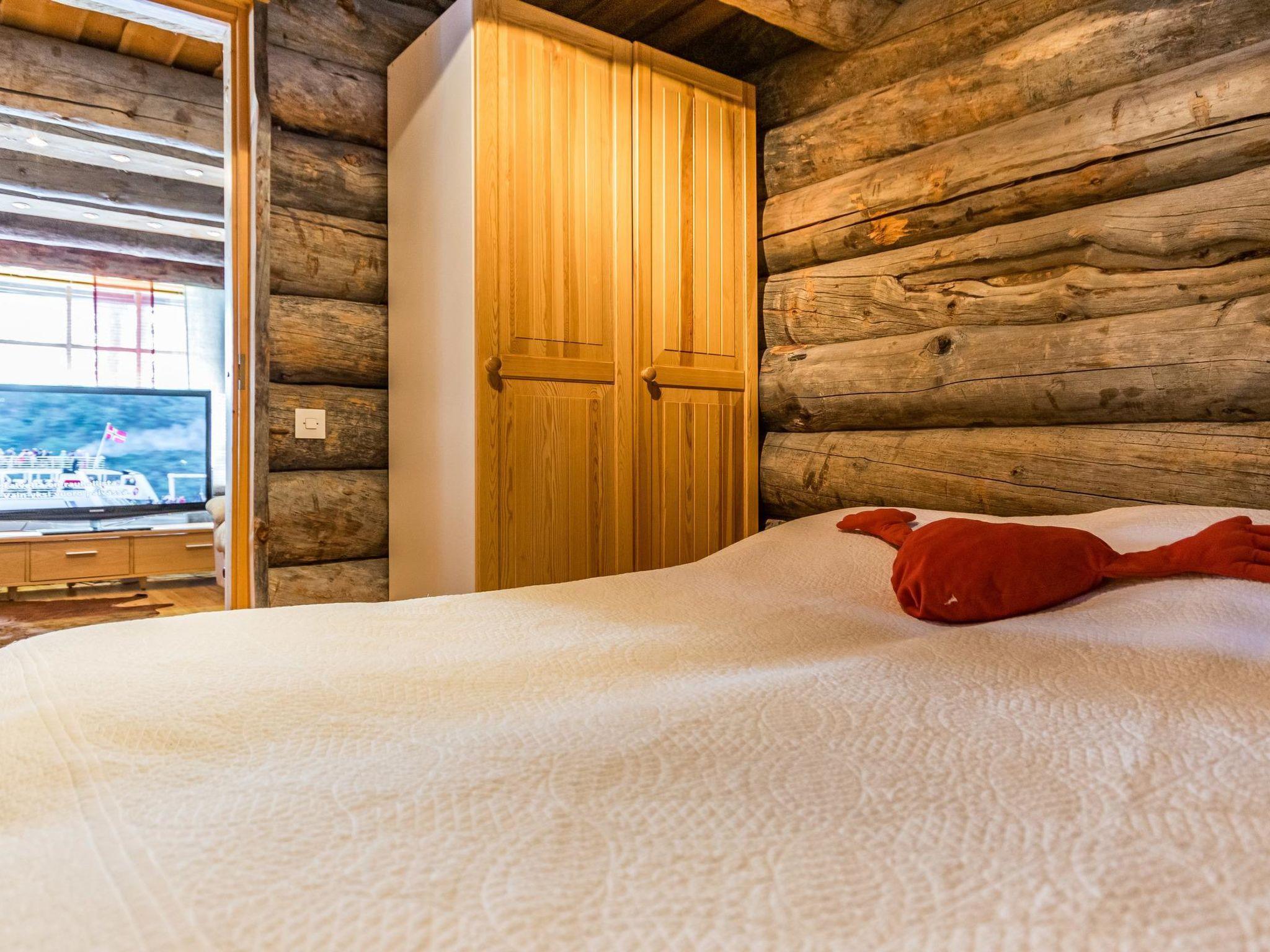 Good-quality 2-storey "kelo"-log cottage built in 1990. Downstairs: Bedroom with a double bed, kitchen, living room, dressing room, bathroom, electric sauna and toilet. Upstairs (sloping ceilings, steep stairs): Bedroom with a double bed, bedroom with a double bed and single bed, sleeping alcove (low room height, folding doors) with double mattress and balcony. Additionally 2 mattresses. Downstairs 135 m² and upstairs 40 m².