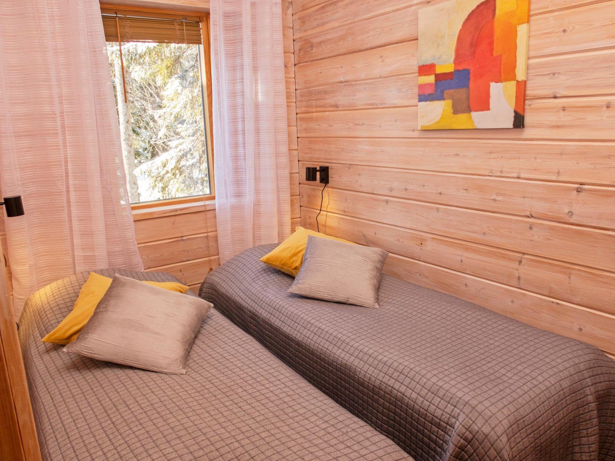 30 km north from Kuusamo, Vuosseli (East Ruka) 4 km, Ruka village (West Ruka, Ruka square) 8 km, Lake Vuosselijärvi 40 m. Semi-detached log cottage built in 2007, bedrooms 1-3: 2 beds in each, combined kitchen/living room, electric sauna.