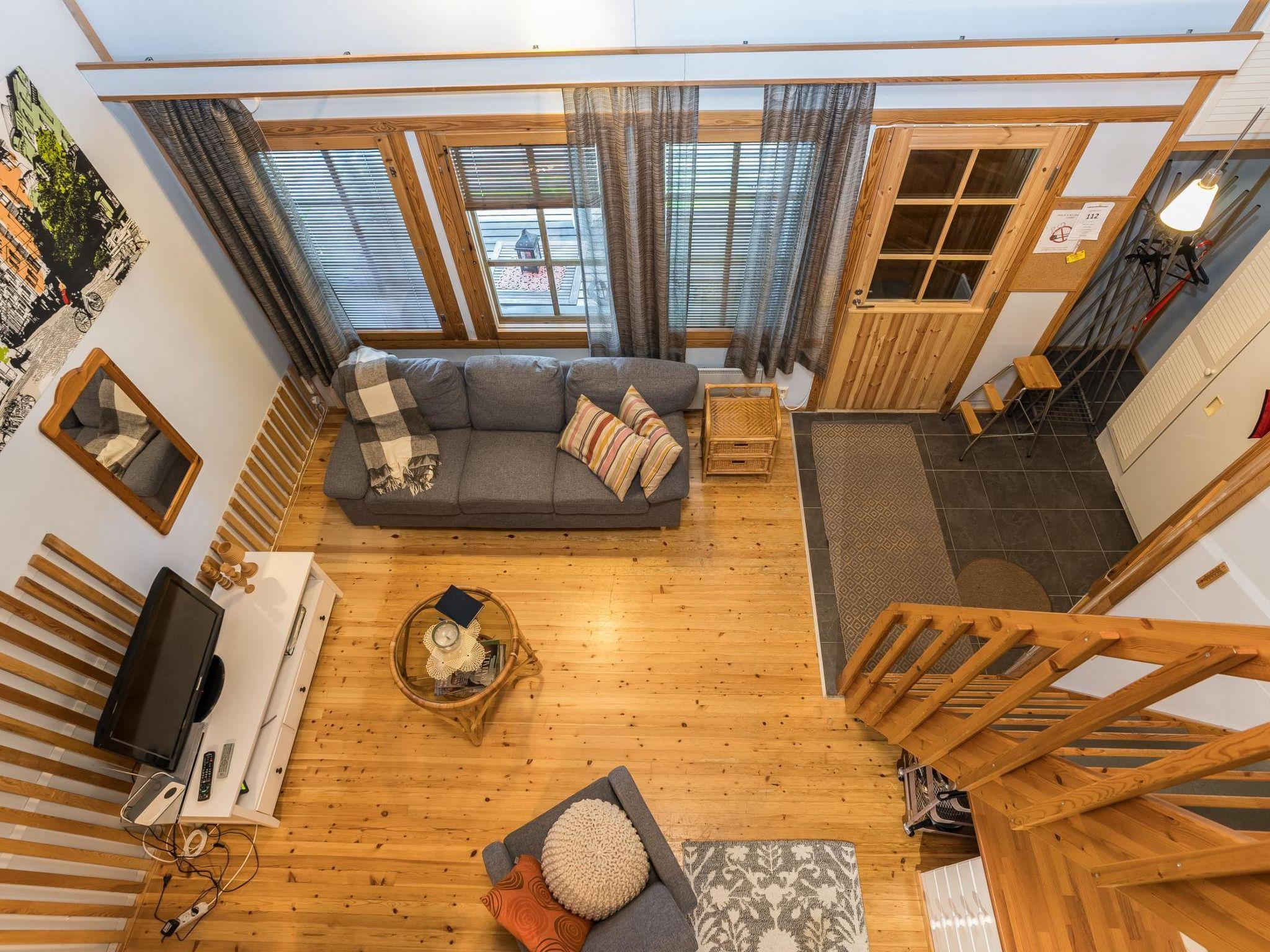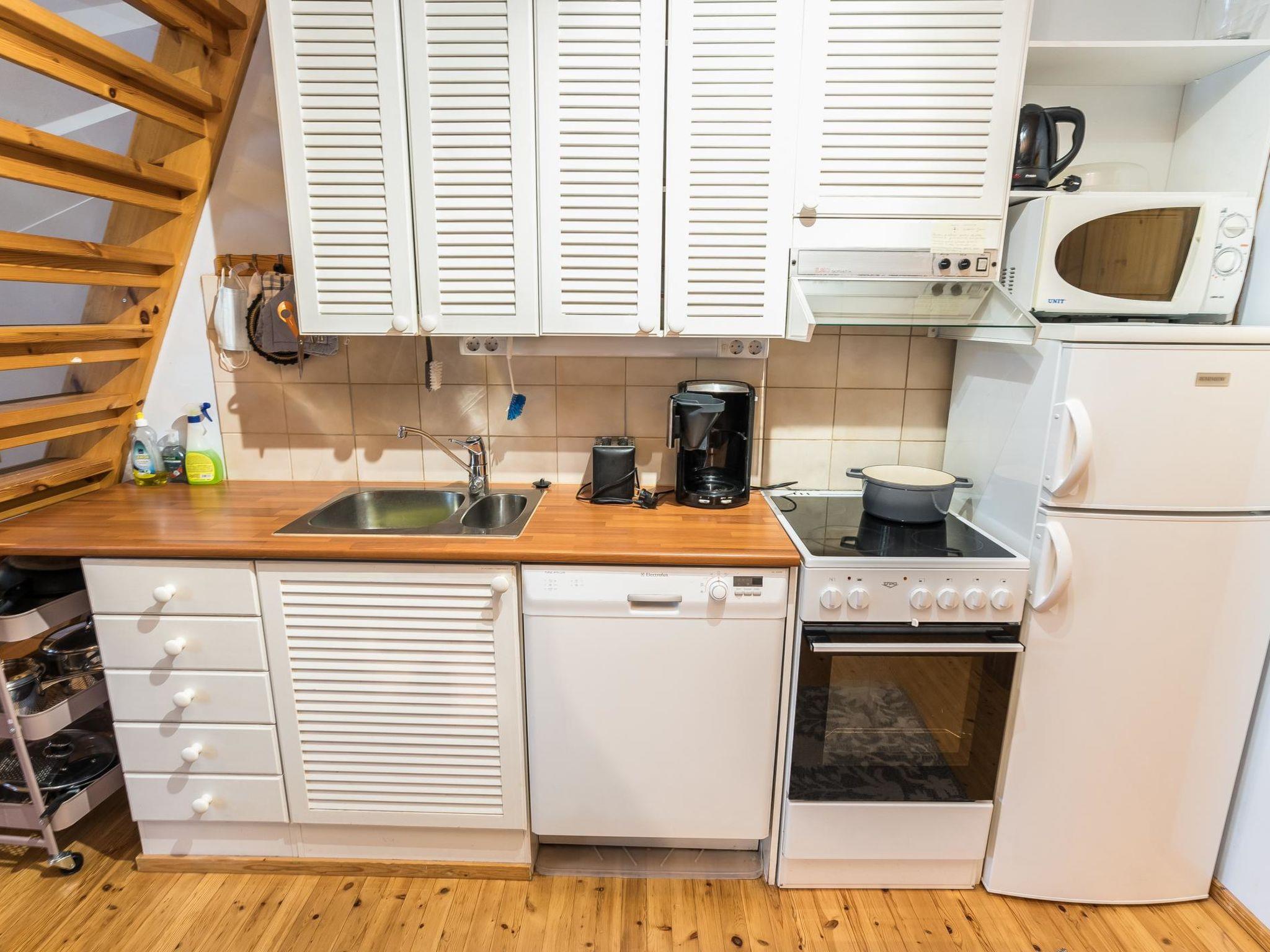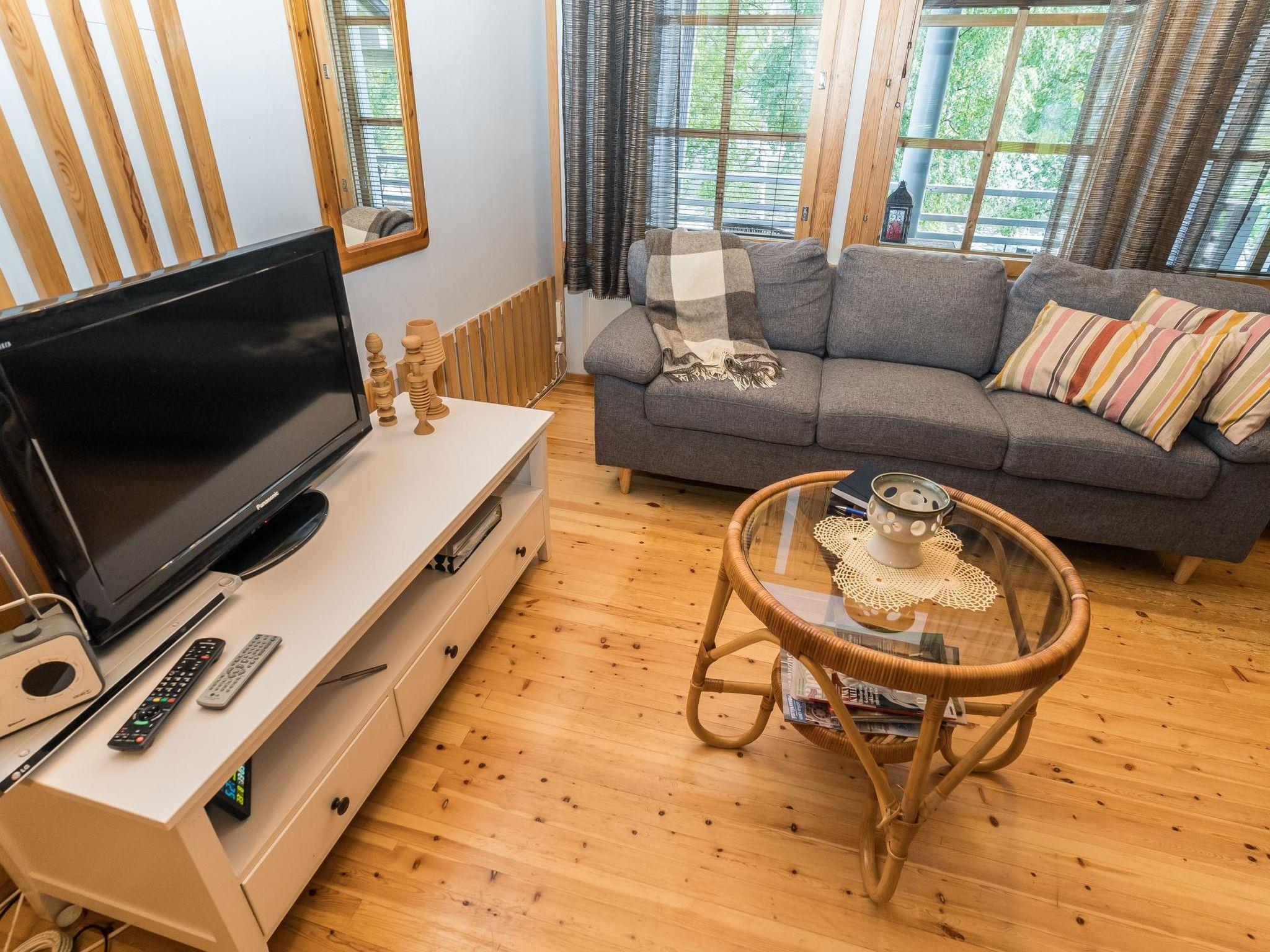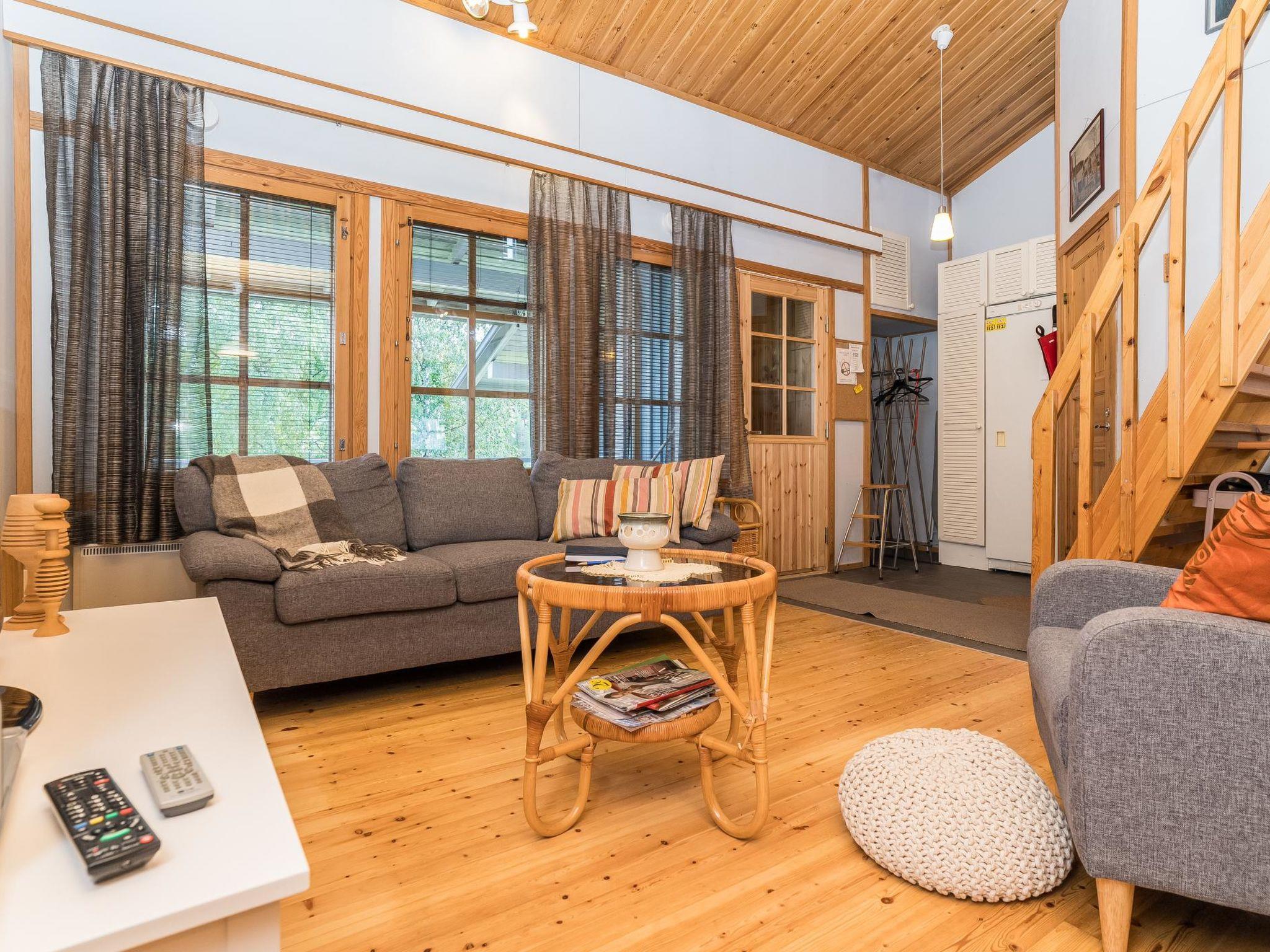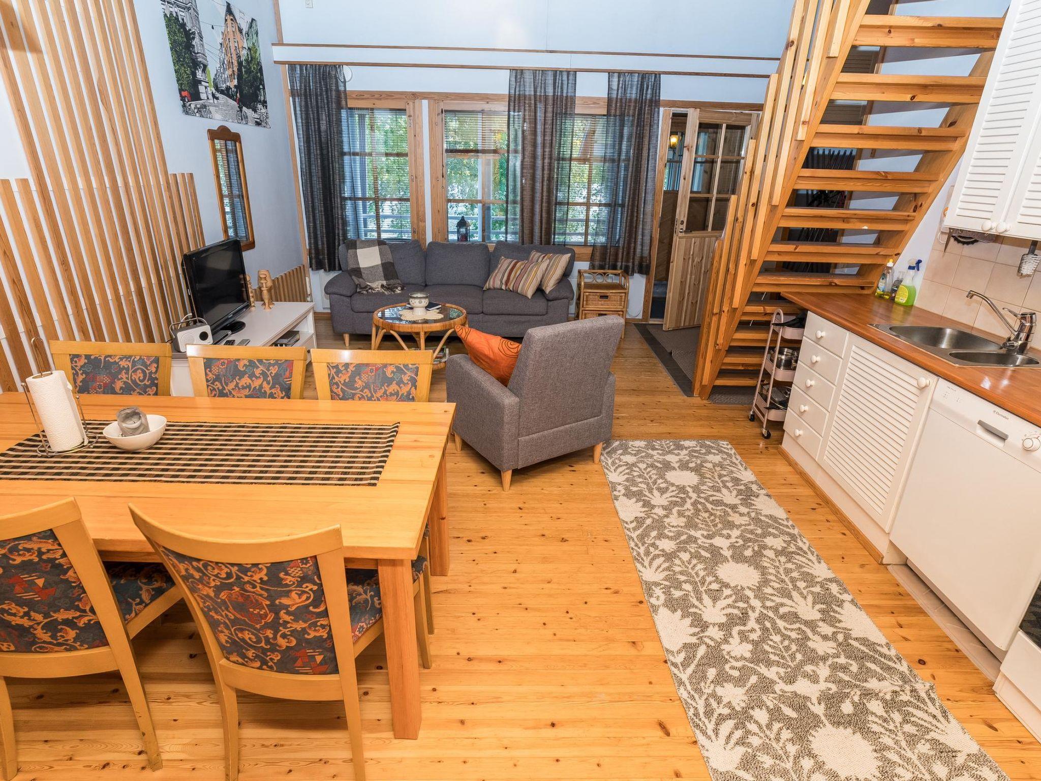 25km north of Kuusamo, Ruka village (Western Ruka) 2,2 km, Lake Talvijärvi 20m, shallow beach. Plank-built apartment, built in 1989, bedroom 1: double bed, bedroom 2: convertible sofa, loft: 4 beds, combined kitchen/living room, electric sauna. Downstairs 50 m² + loft 14 m².
