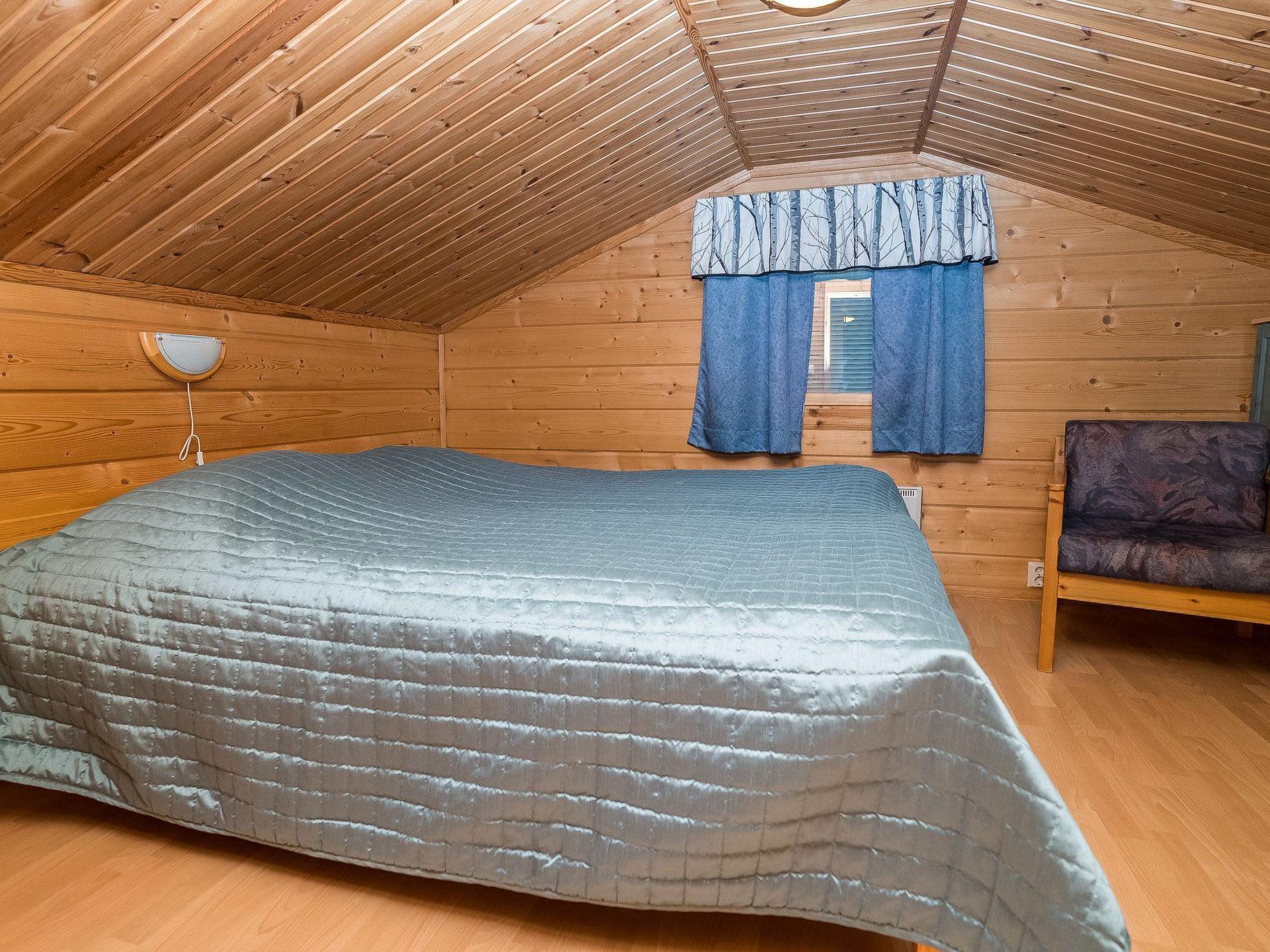 25 km north of Kuusamo, Vuosseli (Eastern Ruka) 800 m. Apartment in log-built semi-detached house, built in 2000, bedroom1 (downstairs): double bed, bedroom2 (loft): 2 beds, loft: convertible sofa for two + 2 beds, combined kitchen/living room. Area 52 m² + loft 26 m², highest point 190 cm.