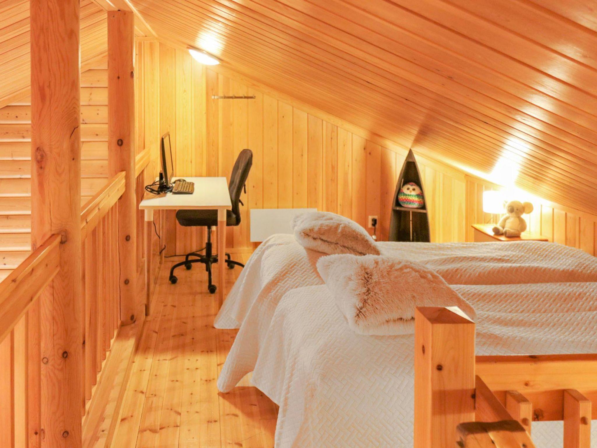 25 km to the north from Kuusamo, in Ruka tourist center by the lake Kesäjärvi. Cozy round log-built apartment in 3-apartment row house, built in 2005. Apartment area 76 m² + loft 12 m². The apartment has two bedrooms, both with double beds. The master bedroom has a 180 cm wide bed for good night's sleep. The loft has two single beds and sleeping alcove with two box springs. Living room with sofa bed.