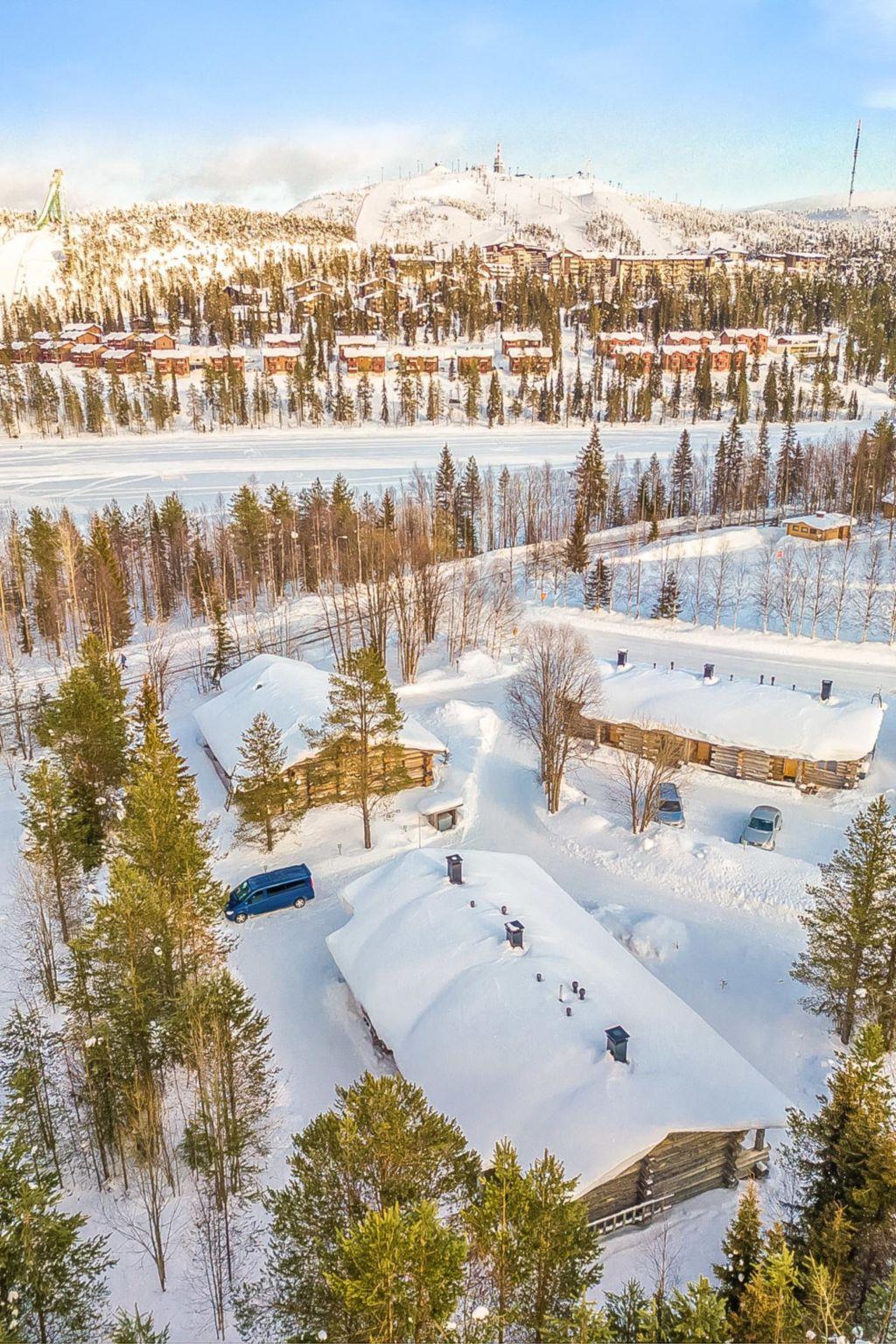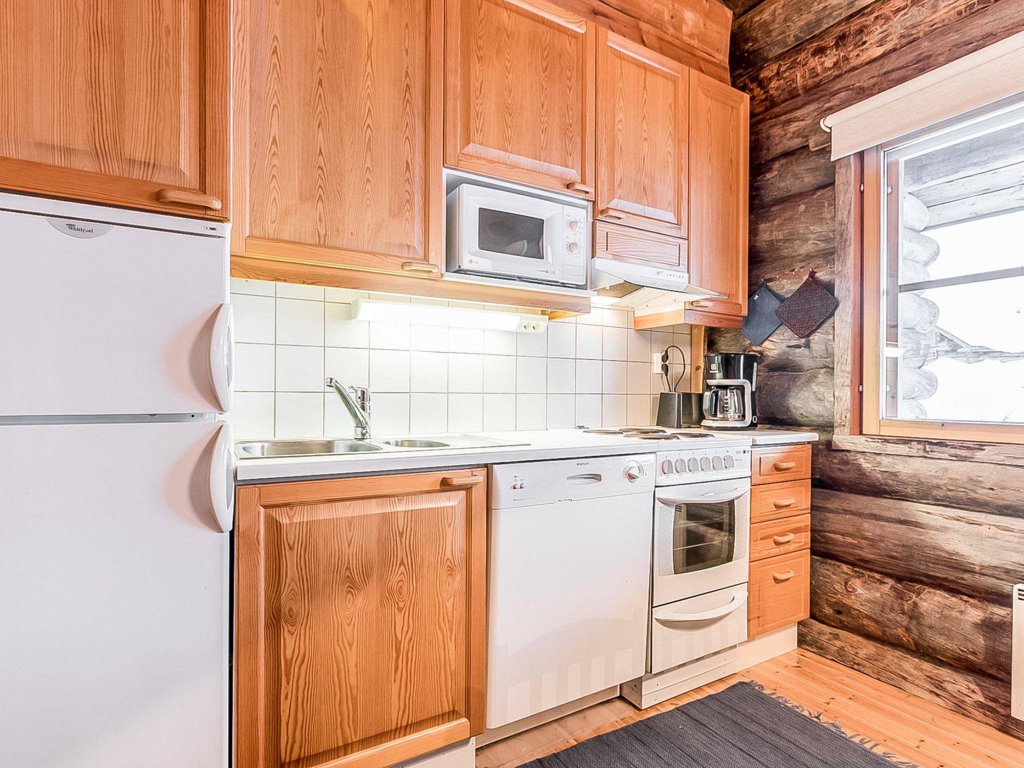 24km north of Kuusamo, Ruka 2km. Apartment at the end of log-built row house, built in 2002, bedroom: 2 beds, loft (steep stairs): 4 spring mattresses, combined kitchen/living room, electric sauna. Area 45 m² + loft with sloping ceilings and low room height, floor area 20 m².