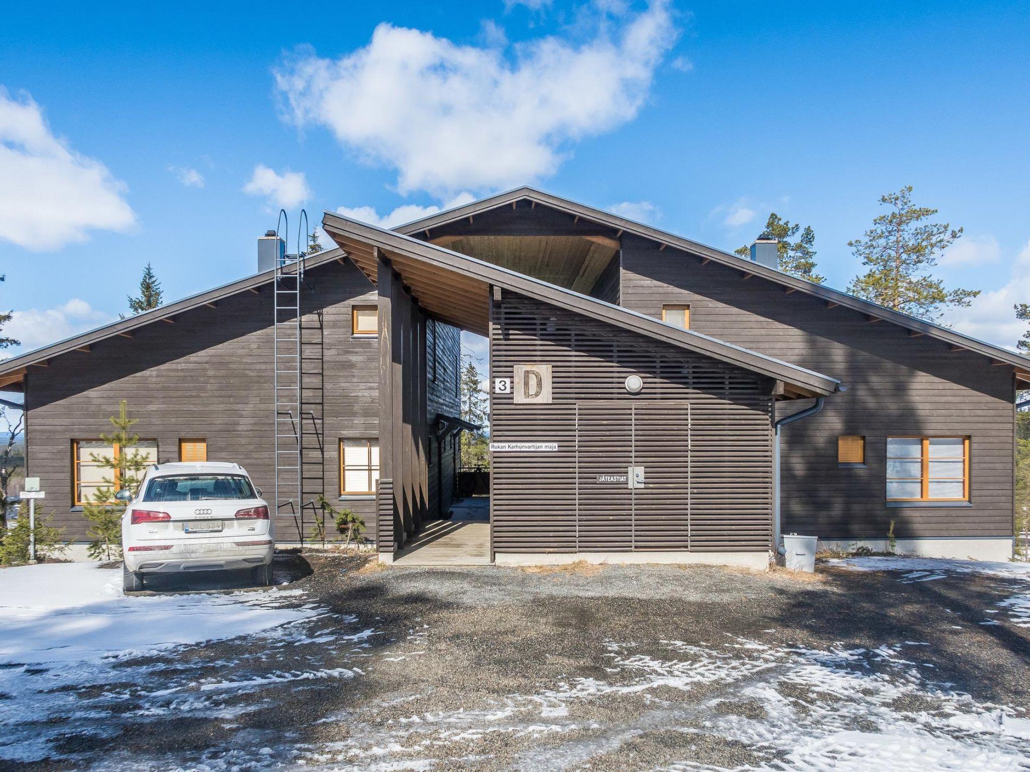 29km north of Kuusamo, Ruka village (Western Ruka) 200m. Apartment, built in 2002, bedroom: double bed, upstairs: 2 beds, living room: convertible sofa for two, combined kitchen/living room, electric sauna. Area of the apartment 57 m²: downstairs 47 m², upstairs 10 m².