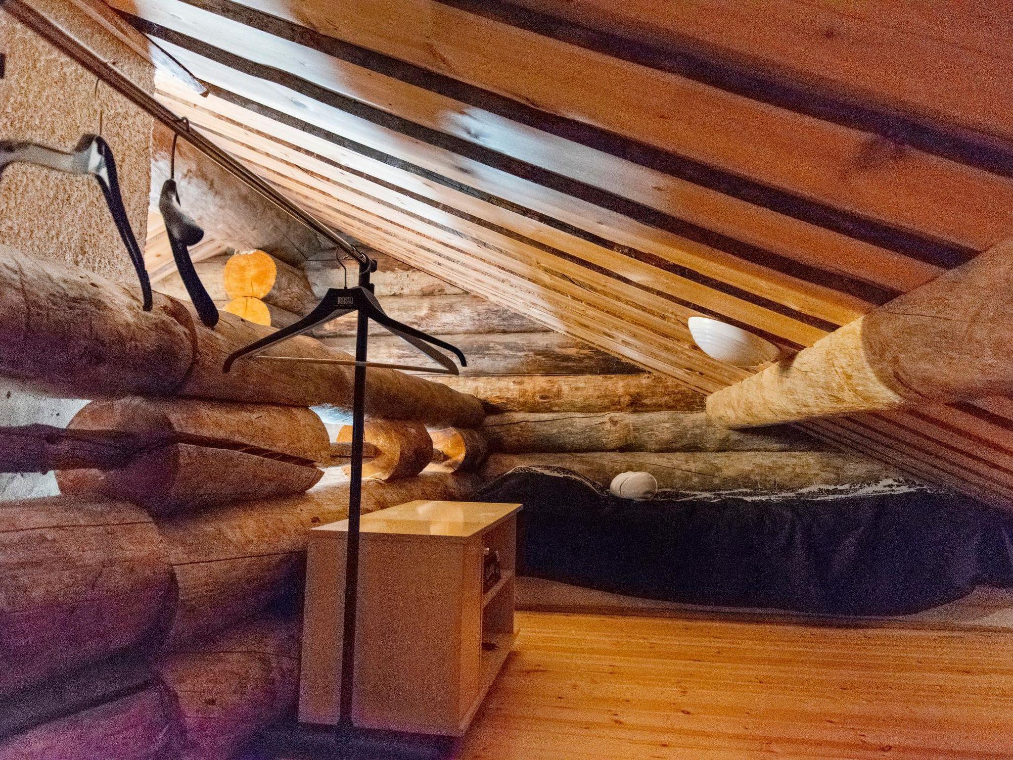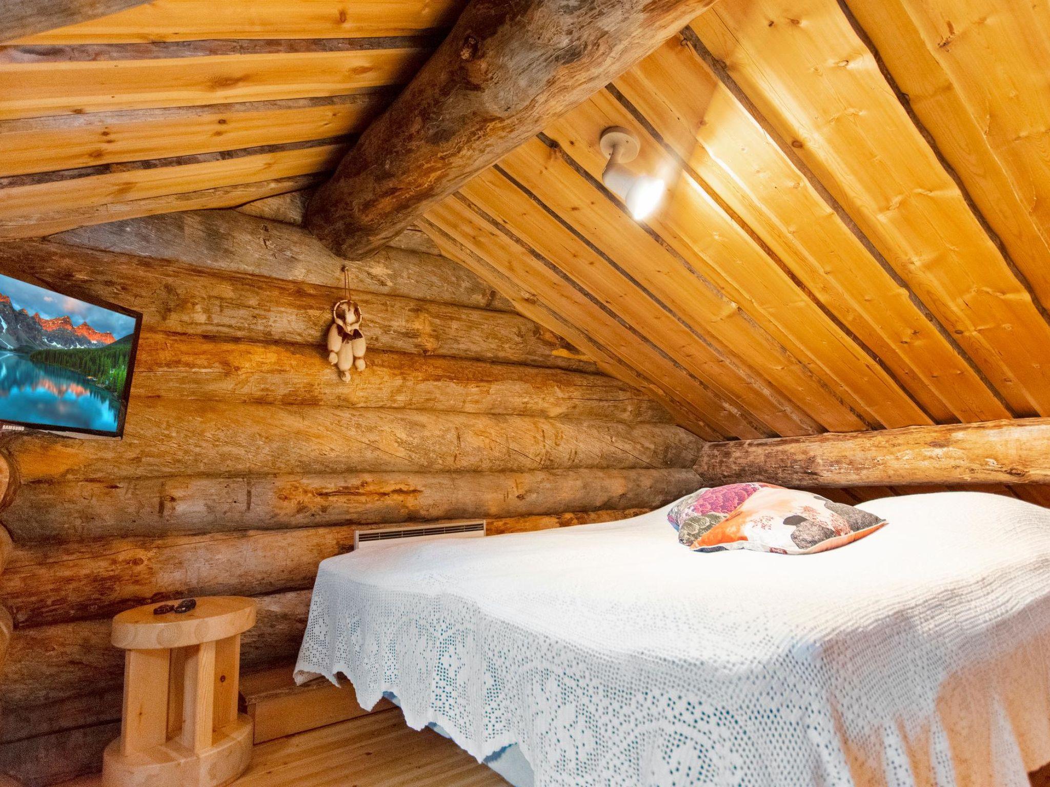 24 km north of Kuusamo, Ruka 4 km, Veskanen 50 m. Apartment in kelolog-built semi-detached house, built in 1989, bedroom: double bed, loft (10 m²): 2 beds and 2 mattresses (steep stairs to the loft, highest point 2 m), combined kitchen/living room, electric sauna.
