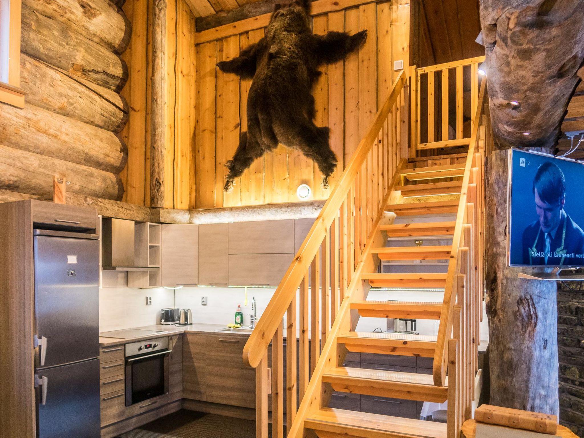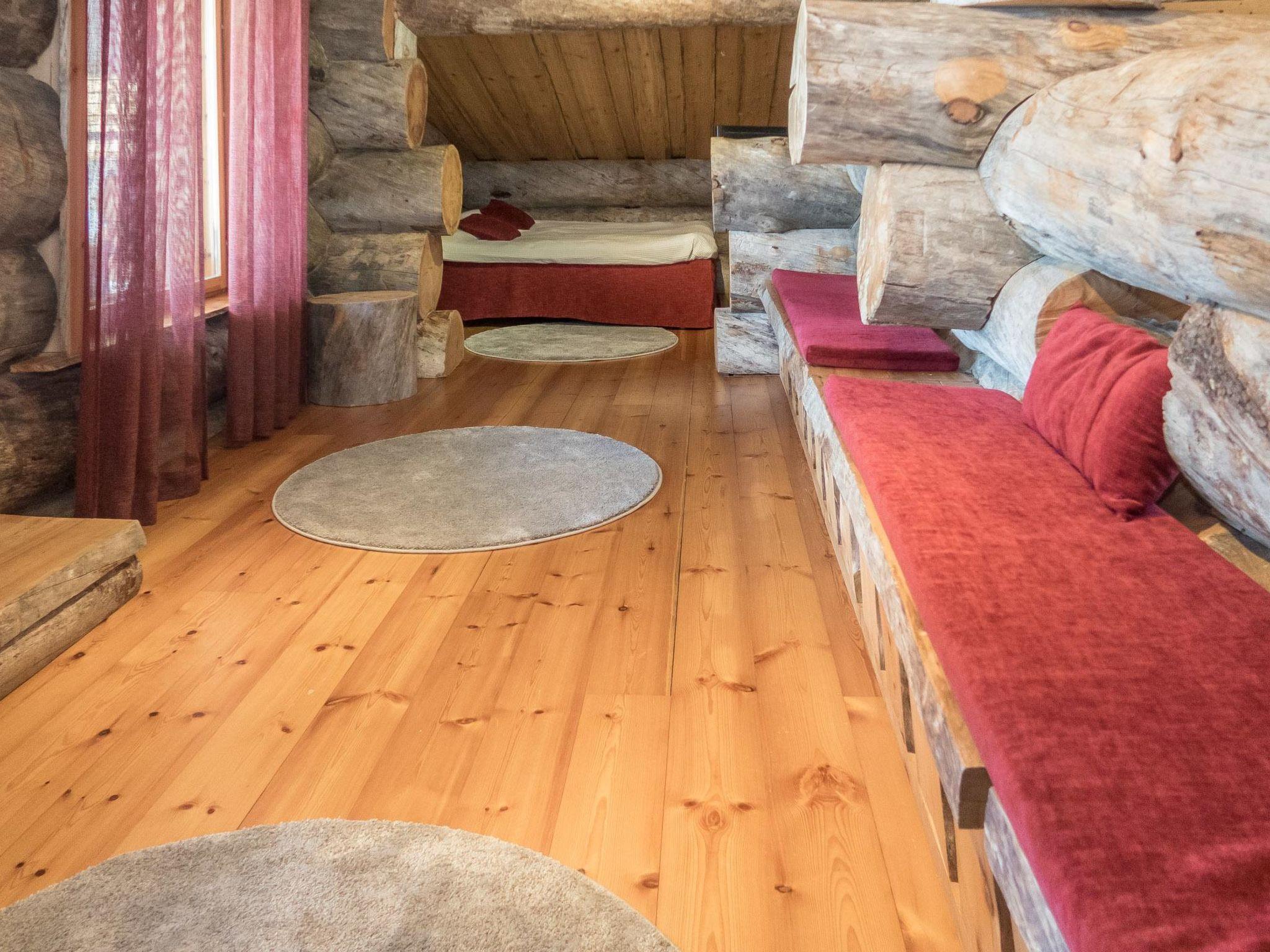 Log cottage, built in 2012. 2x double bedrooms downstairs. 1x single, 1 double bedroom, extra double bed and seating area on top floor + room for more mattresses in upstairs living room. Combined kitchen/living room with electric sauna. Downstairs 80 m², loft 20 m². Water supply from the spring.