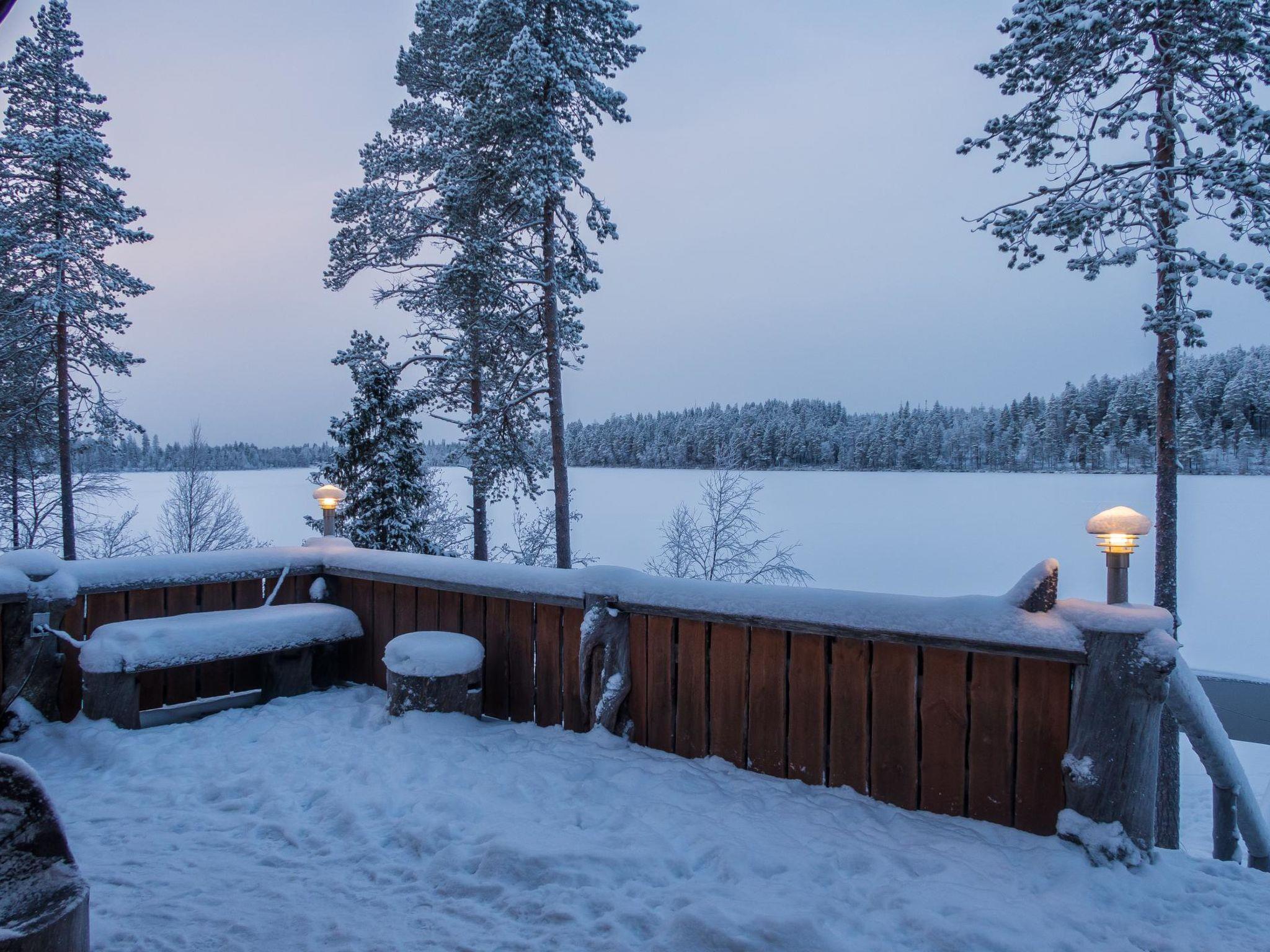 Beautiful and expansive log house next to pond Pohjaslampi. 45km north of Kuusamo, Ruka 18 km. Natural state hard sand bottom, pier and own boat.