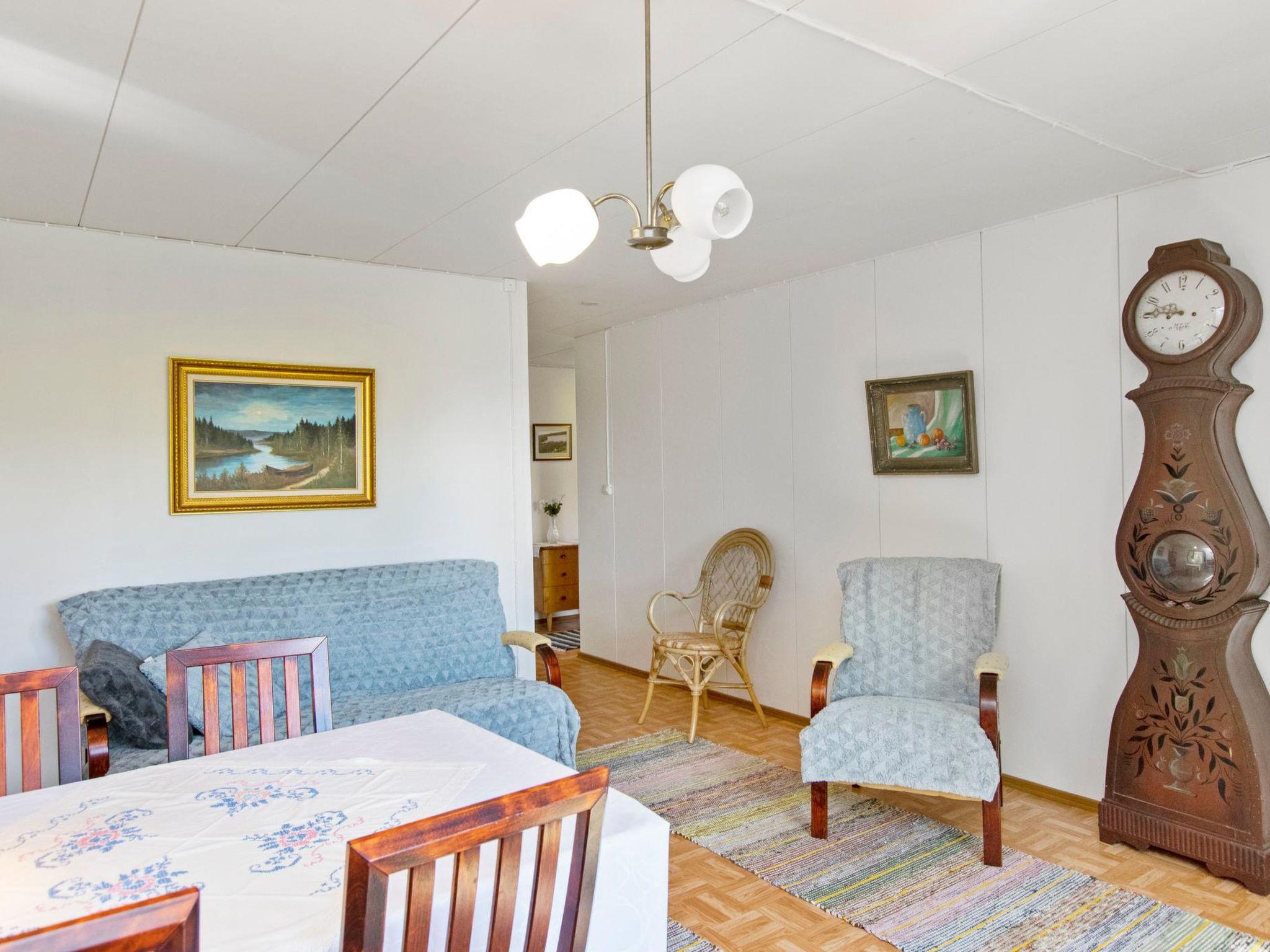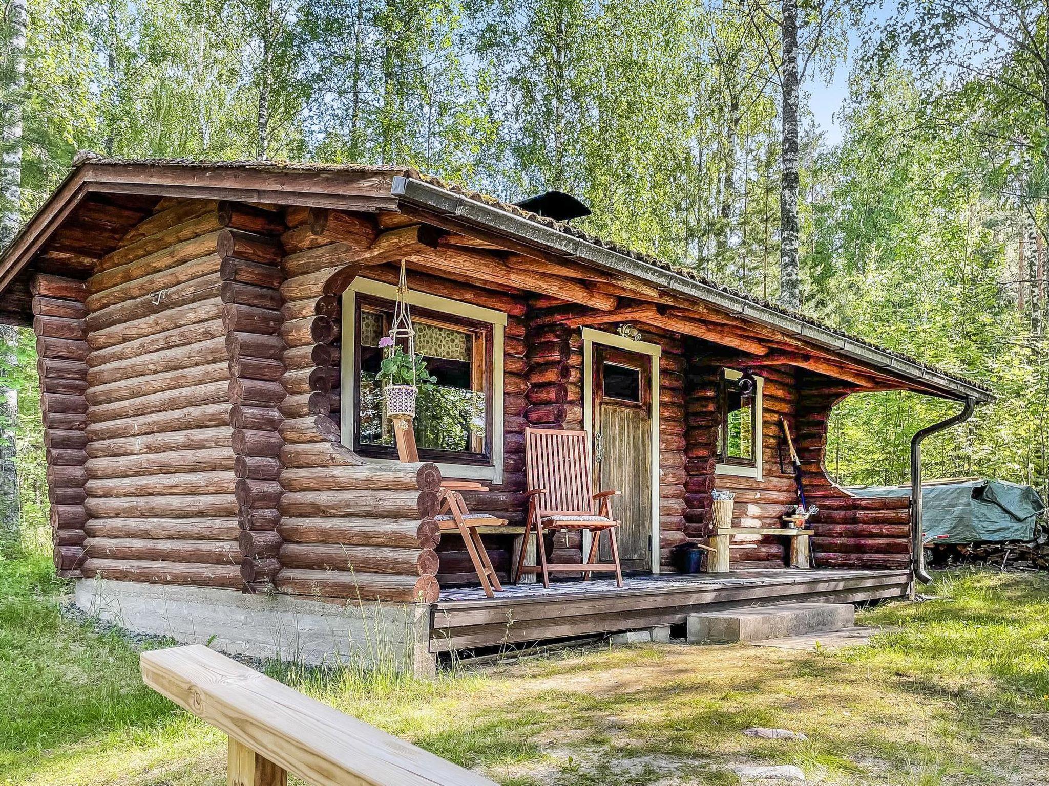 Wooden cabin 1966, renovated in 1984, interior surfaces are renovated in 2021, living room, kitchen. Two beds in bedroom, one bed in another bedroom (bedrooms windows have blackout curtains). WC and shower in washroom, electric sauna stove in sauna.