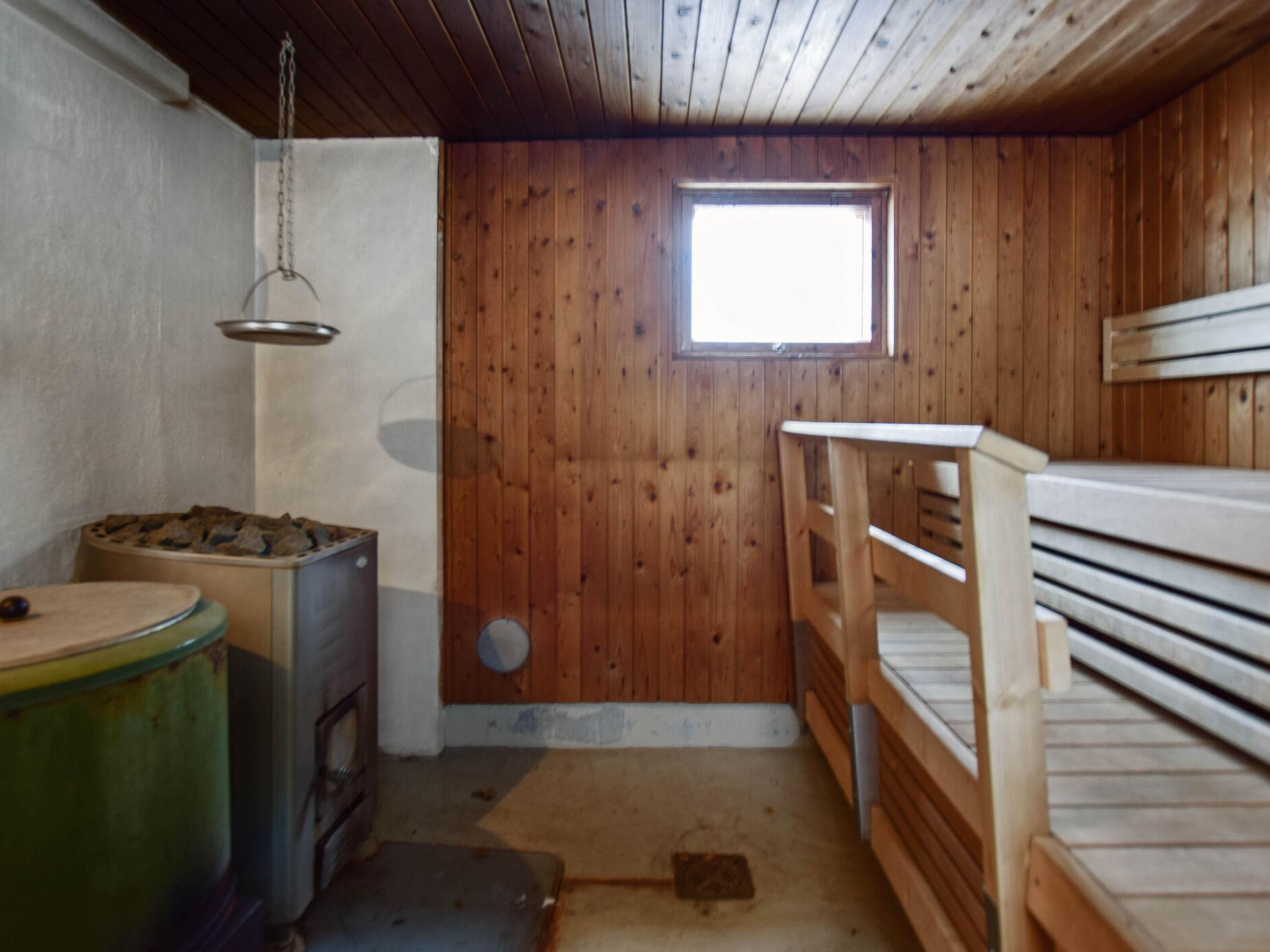 On the ground floor, there is a sauna with an electric stove. The washroom includes a shower, toilet, and washing machine. Sleeping accommodations are located in the loft, which has a double bed and two single beds. The barn bedroom with a double bed is available from 15 May to 31 September.