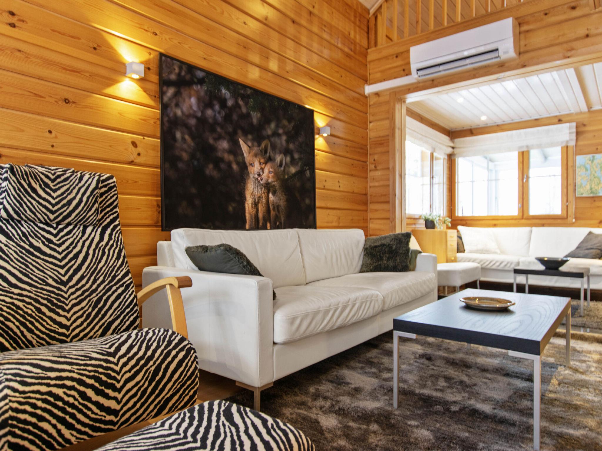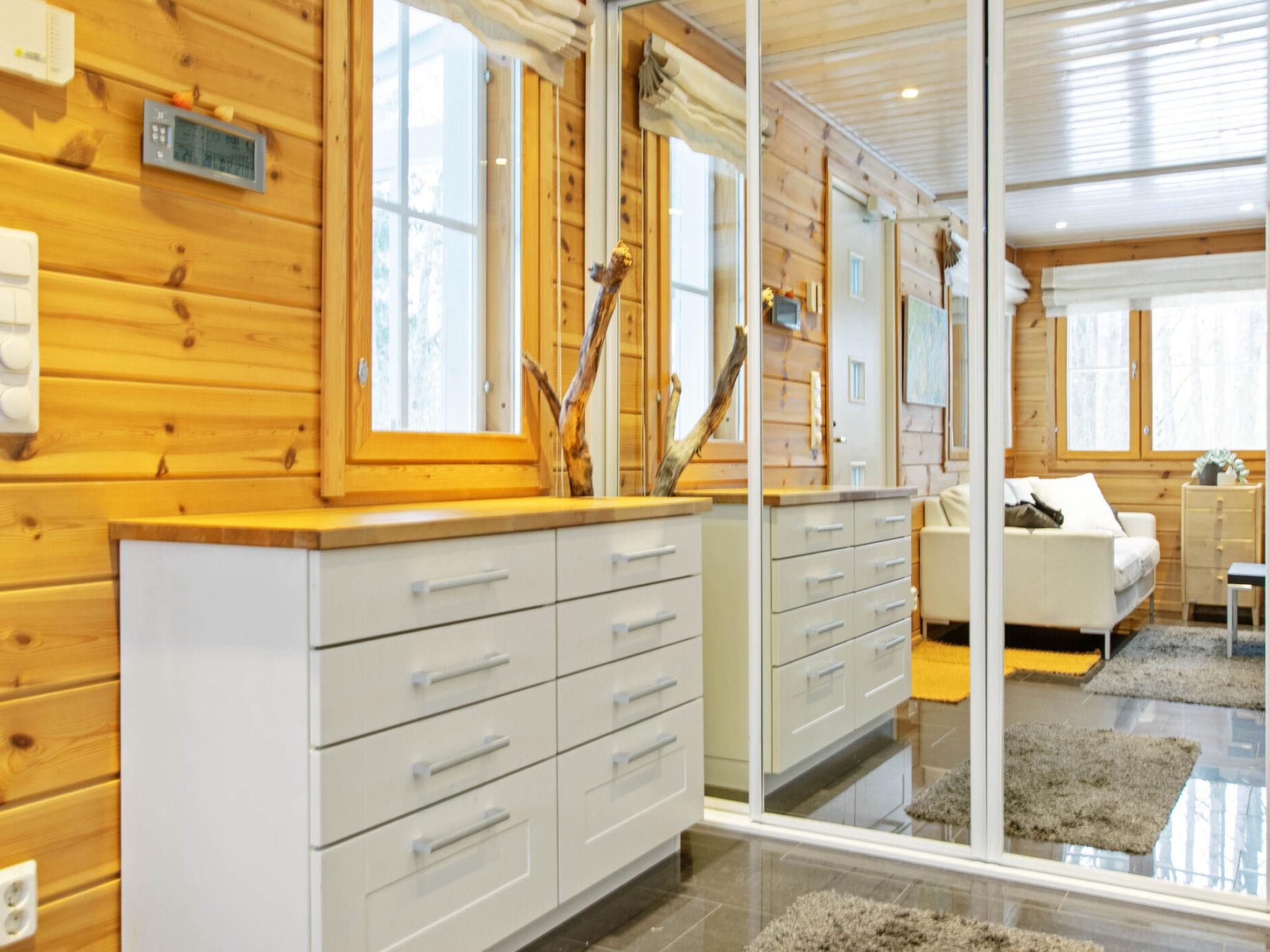 A modern log cabin with cozy decor set on a spacious plot. Pets are welcome at the cabin. The peaceful surroundings are ideal for enjoying a tranquil holiday. The property includes a cozy log cabin with a spacious sun terrace and a 15m² glazed terrace.