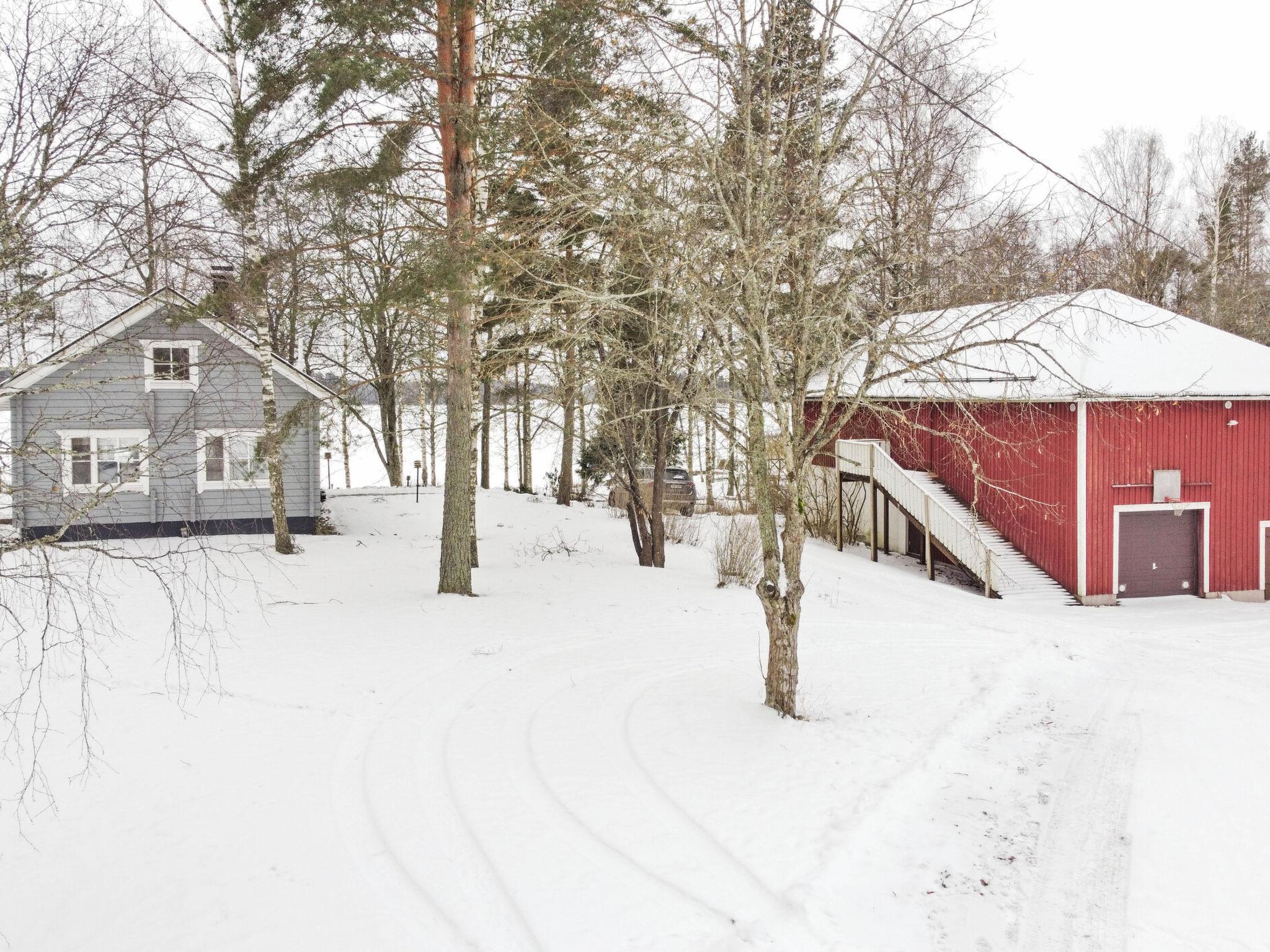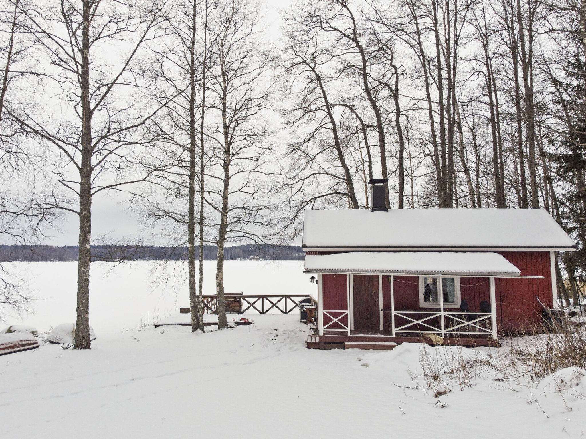 At the lakeshore, there is a spacious wood-heated lakeside sauna shared with the neighboring cabin. Water for the sauna is carried from the lake. The lakeside sauna can be reserved for two hours at a time, and its use is included in the cabin rental.