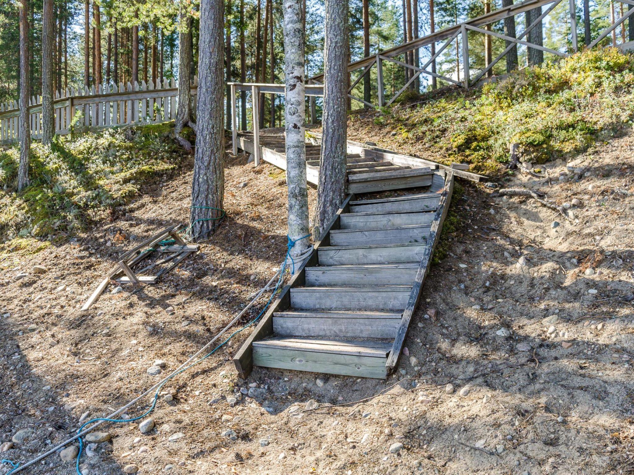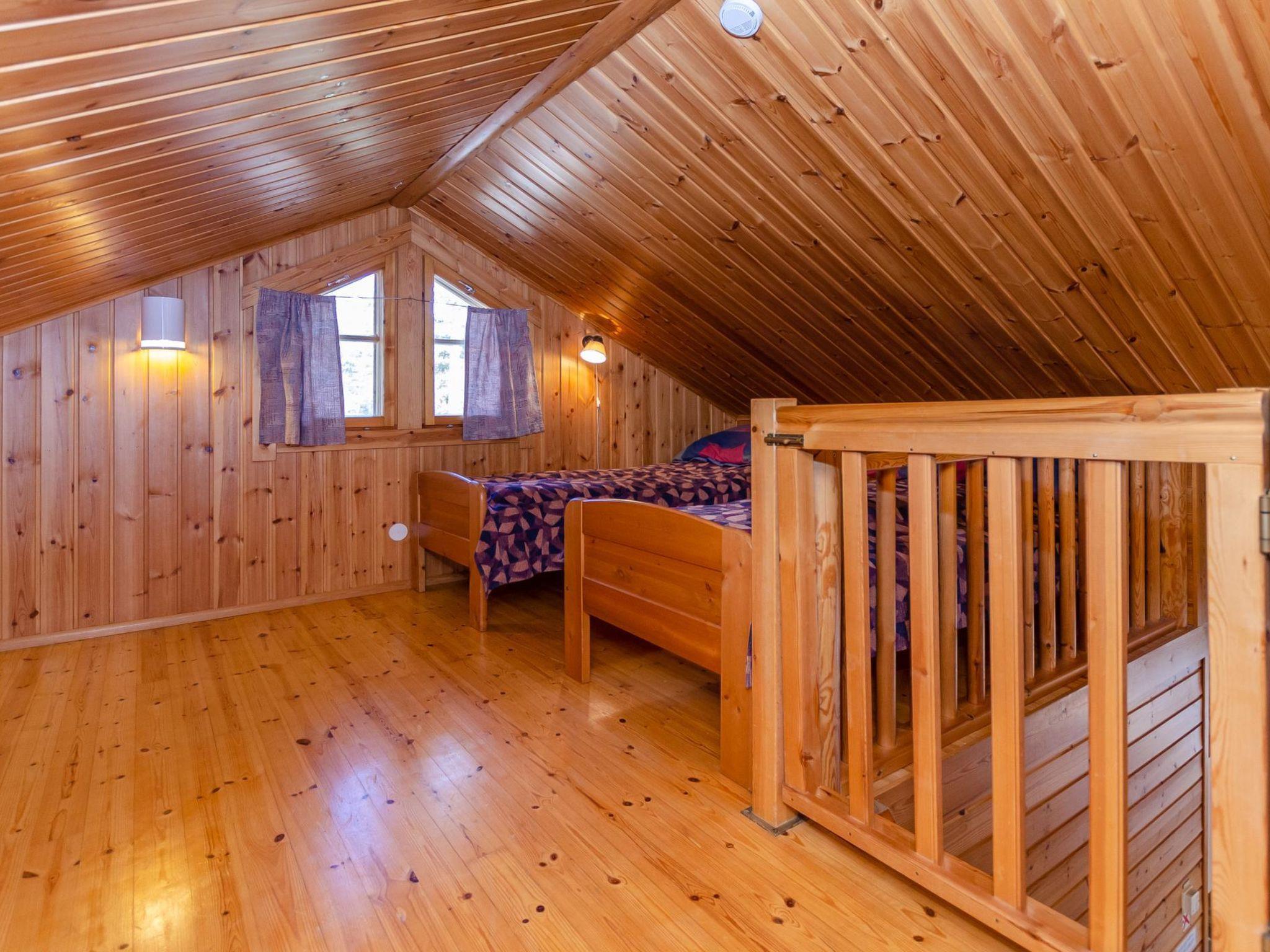 77 km north of Joensuu, Lake Pielinen 100 m (871,2 km2) common beach with gently deepening sand bottom and some rocks. Common jetty with the other Honkakoli cottages. Round log cottage 1990, kitchen-living room, bedroom with two beds, bedroom with bunk bed, sleeping gallery (18 m2) with three beds, washroom, sauna (elec. stove) and terrace.