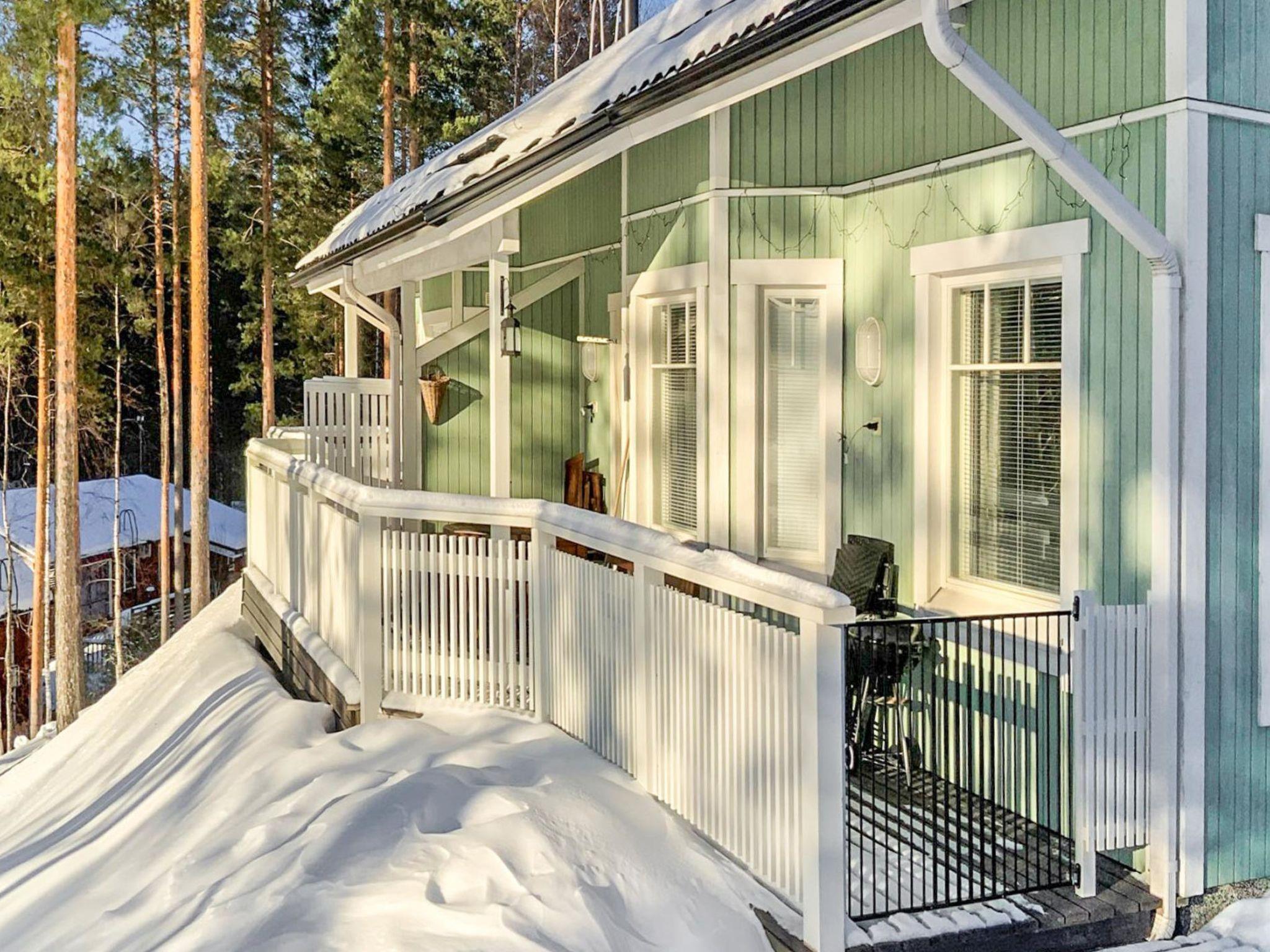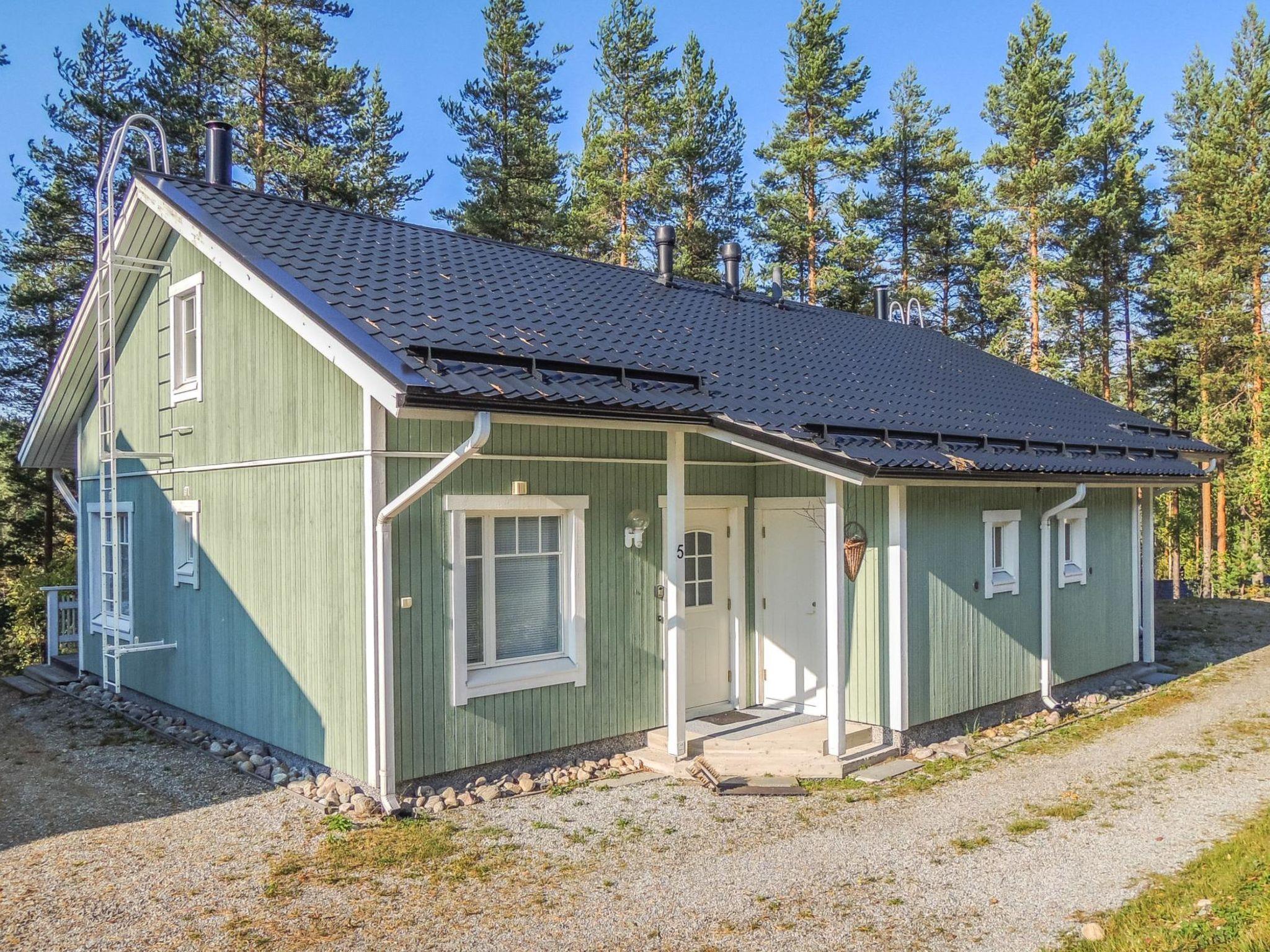 77 north of Joensuu, Pond Käränkälampi 70 m (length 2 km, width 1,5 km), common beach with shallow bottom 70 m along the path down to the beach, Wood semi-detached house 2005, kitchen-living room, small bedroom (with door, but no window) with double bed, bed room with 2 beds, sleeping gallery with double bed (width 120 cm) and 2 beds, washroom, sauna (elec. stove) and terrace.