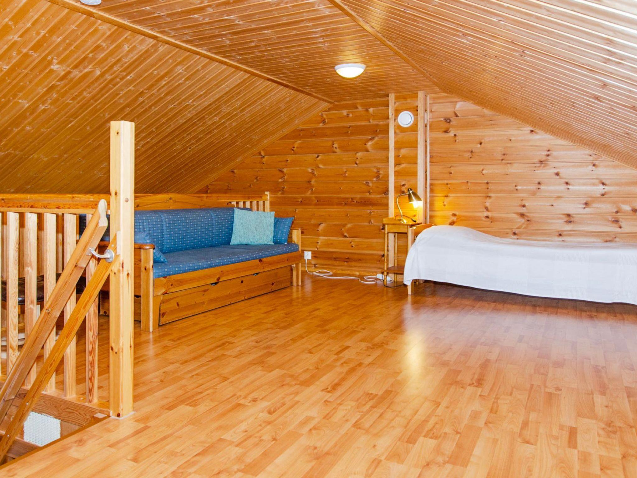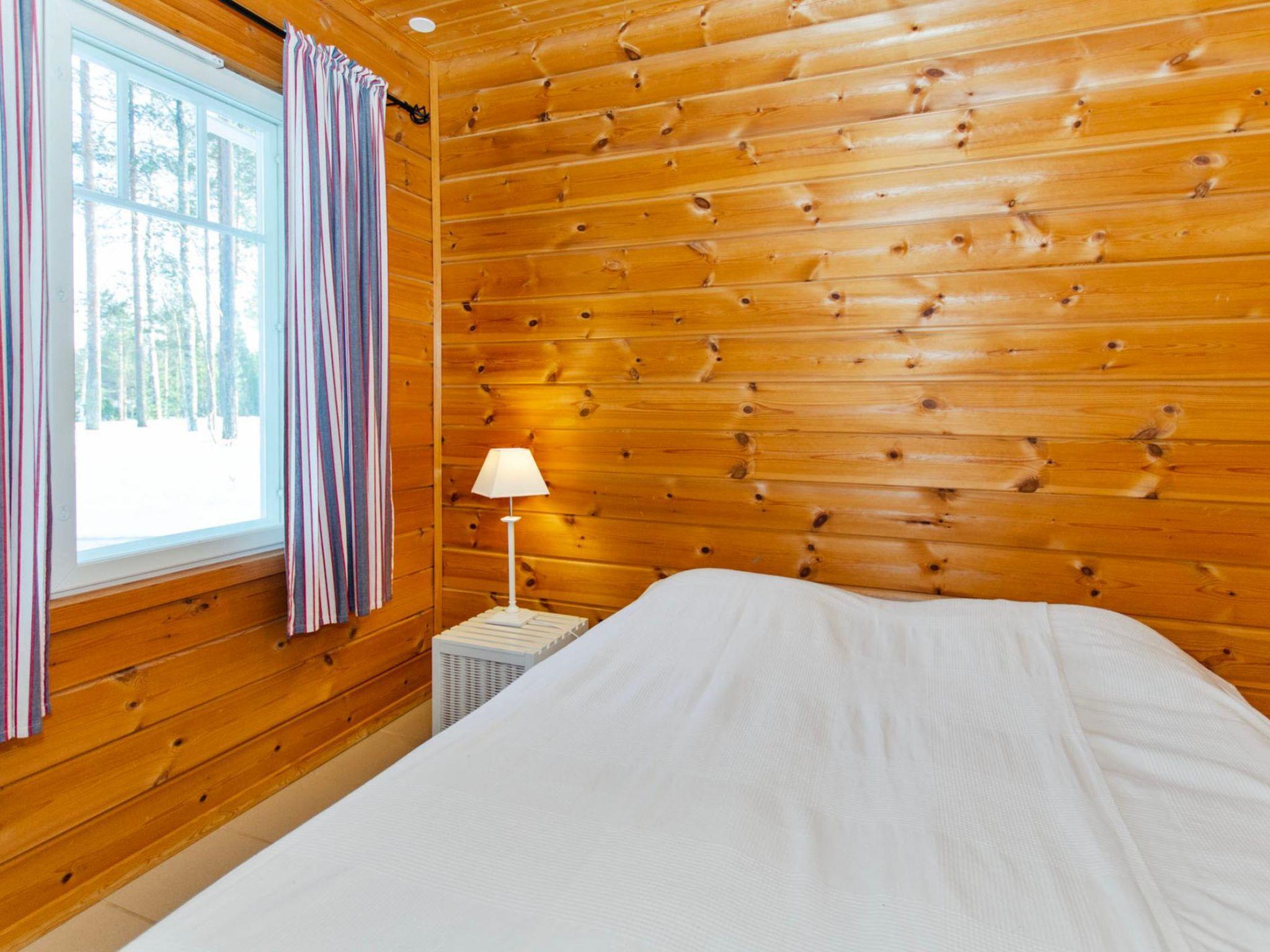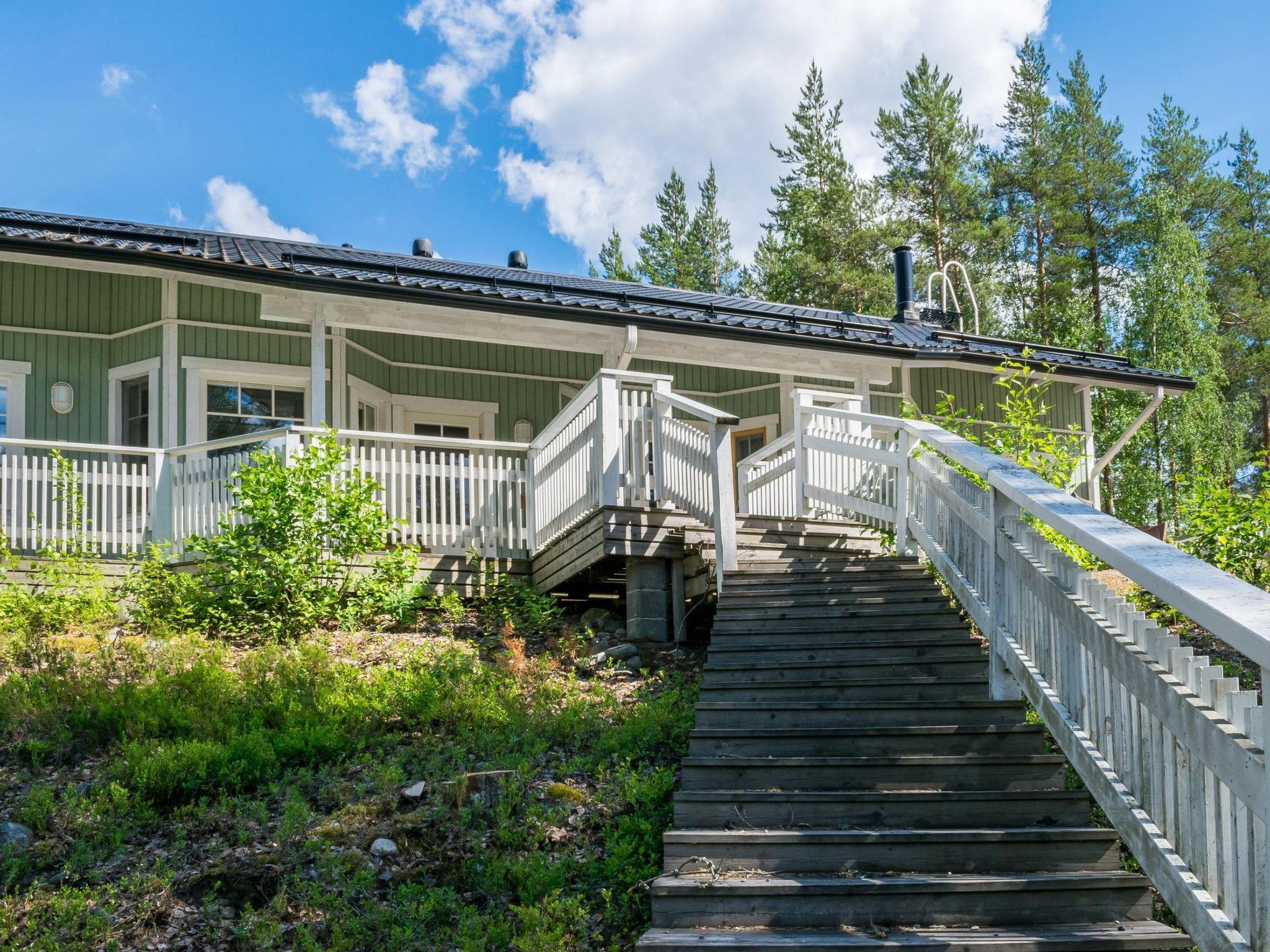 77 north of Joensuu, Pond Käränkälampi 50 m (length 2 km, width 1,5 km), common beach with shallow bottom 70 m along the path down to the beach, Wood semi-detached house 2005, kitchen-living room, small bedroom (with door, but no window) with double bed, bed room with 2 beds, sleeping gallery with 2 beds and convertible sofa, washroom, sauna (elec. stove) and terrace. From the terrace, there are stairs to the shore shared with the second apartment of the semi-detached house.
