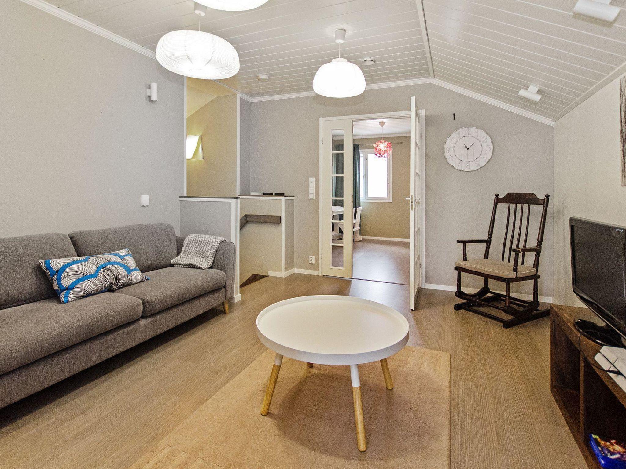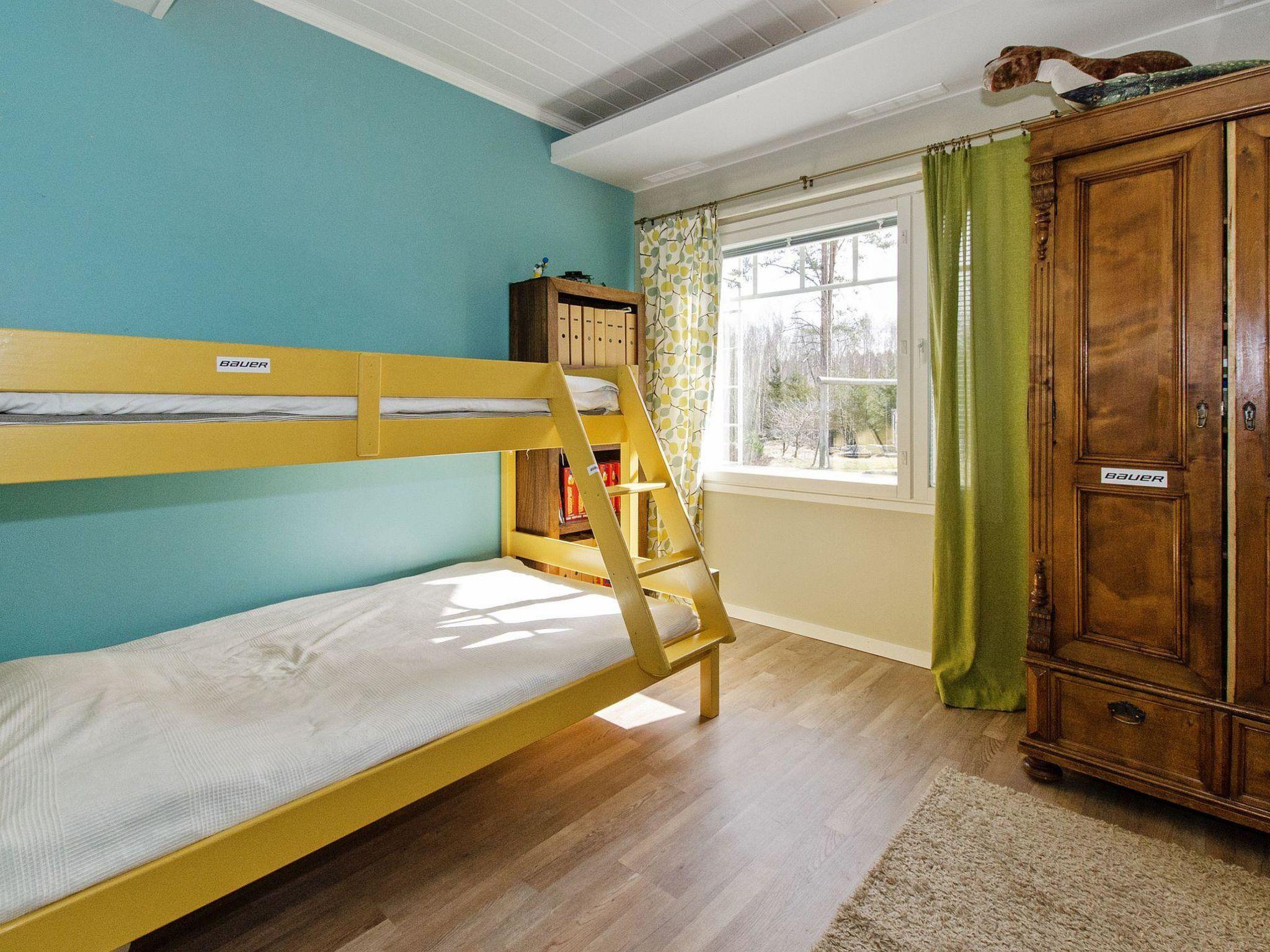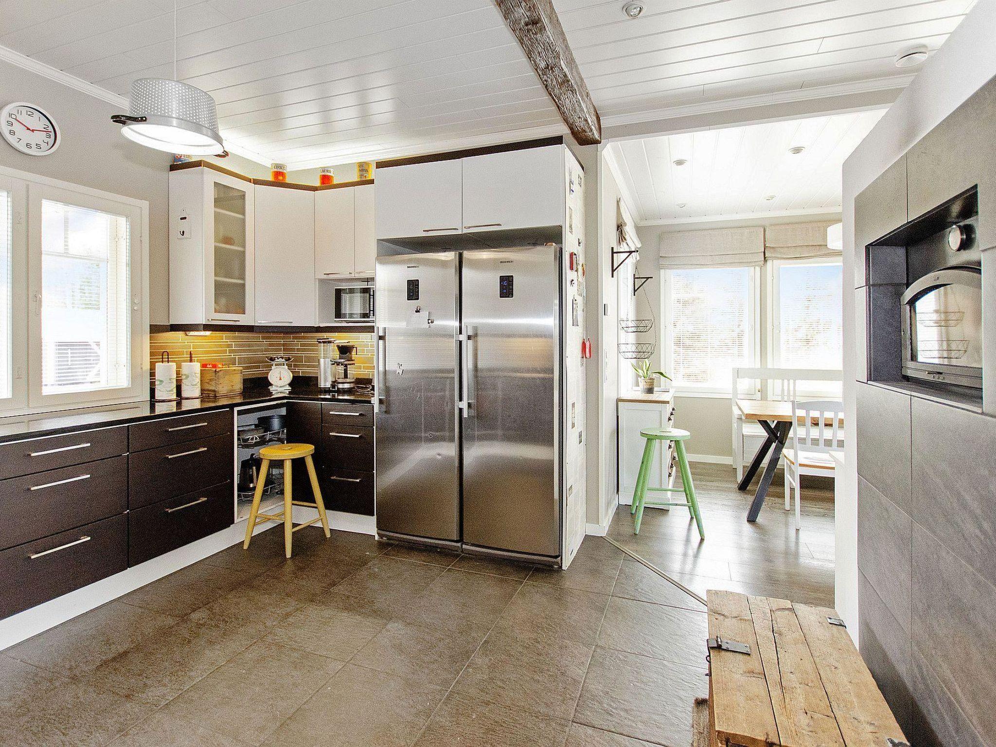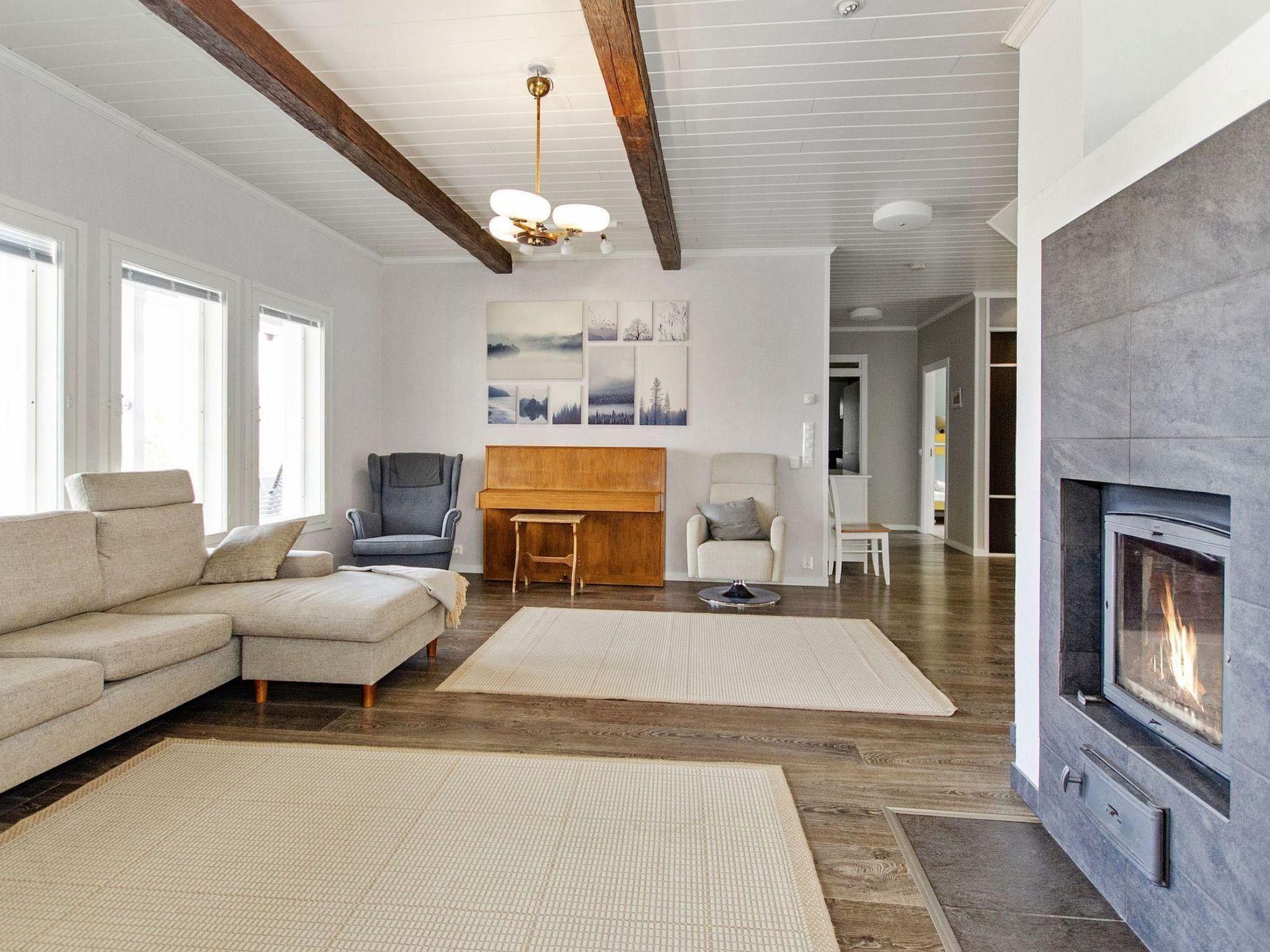Holiday apartment built in 2011. On the ground floor, there is a living room/kitchen, which is equipped with all the necessary appliances. In addition to the fireplace on the living room side, there is a baking oven on the kitchen side. On the ground floor, there are also 2 spacious bedrooms, one with a double bed and the other with a bunk bed (lower bed width is 120 cm). On the ground floor, there is also a laundry room, electric sauna, washroom, dressing room, and 2 separate WCs.