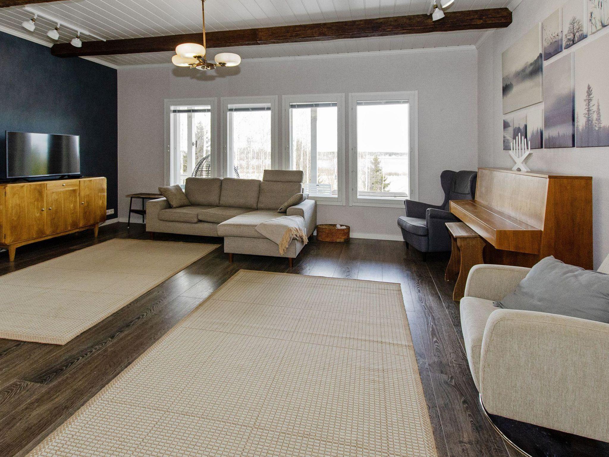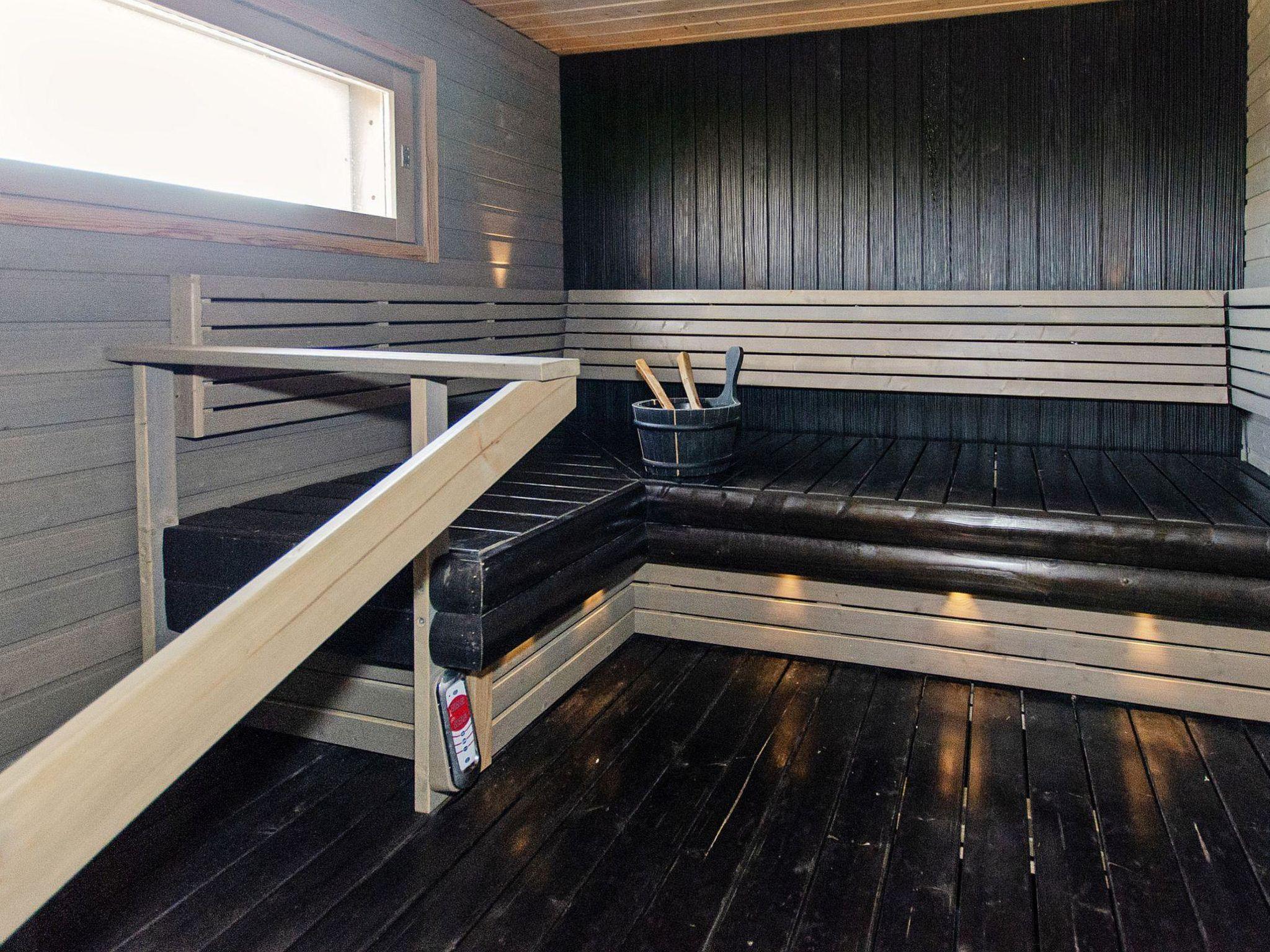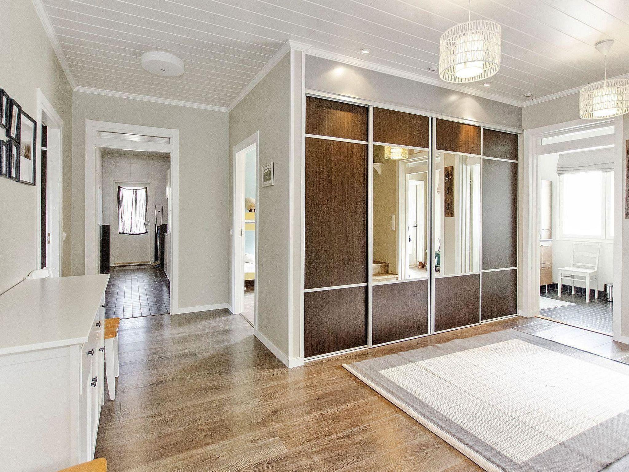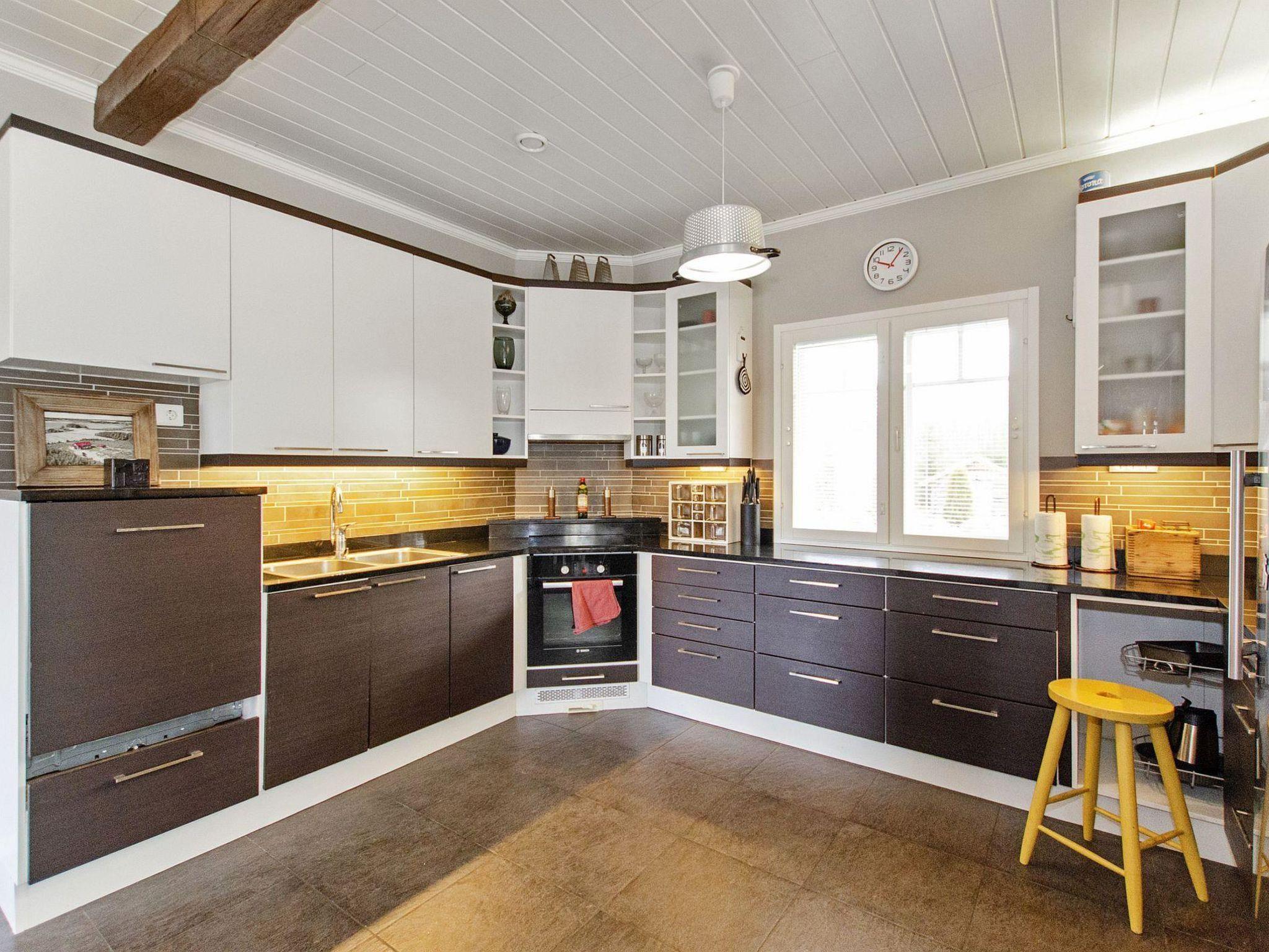 Holiday apartment built in 2011. On the ground floor, there is a living room/kitchen, which is equipped with all the necessary appliances. In addition to the fireplace on the living room side, there is a baking oven on the kitchen side. On the ground floor, there are also 2 spacious bedrooms, one with a double bed and the other with a bunk bed (lower bed width is 120 cm). On the ground floor, there is also a laundry room, electric sauna, washroom, dressing room, and 2 separate WCs.