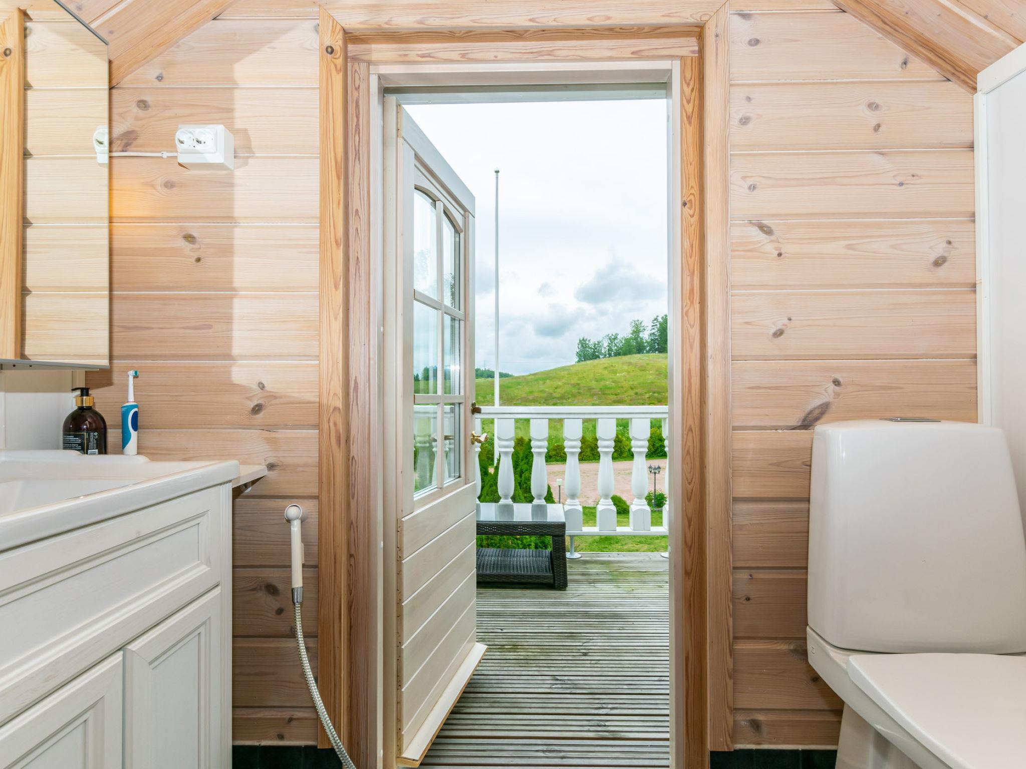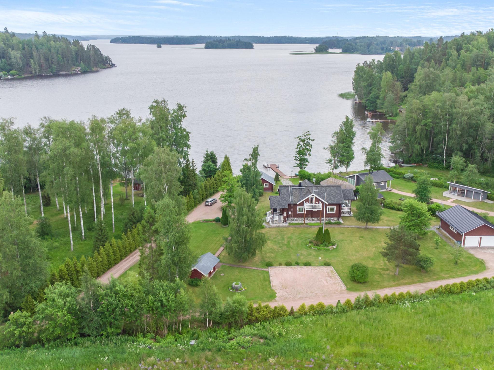 Located 65 km from Helsinki, Lake Hiidenvesi 30 m, log-built villa (2004), five bedrooms, one with a double bed and the others with two beds per room. The well-equipped living room/kitchen has a large dining table and windows offering views of the yard and lake. The living room has a TV, sofa set, and heat-storing fireplace. The villa has a WC on both the ground and upper floors. Electric sauna and washroom with two showers. The lakeside sauna has a third shower.