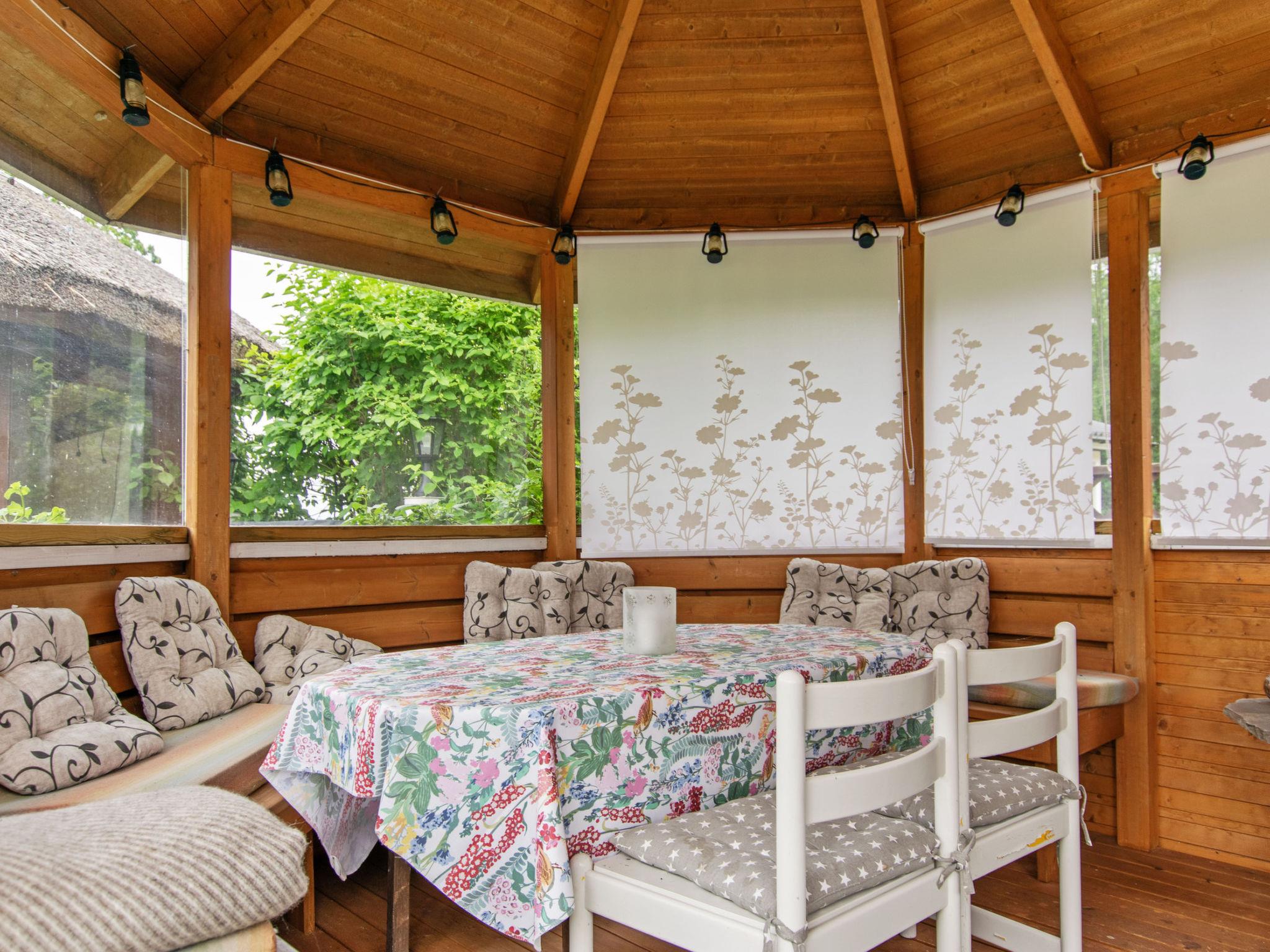 In the yard, there is a spacious 30 m² glazed garden pavilion with a reed roof, and a separate cooking hut, equipped with LPG-powered grill pan. Additionally, there is also a gas grill and a wood-heated smoker.