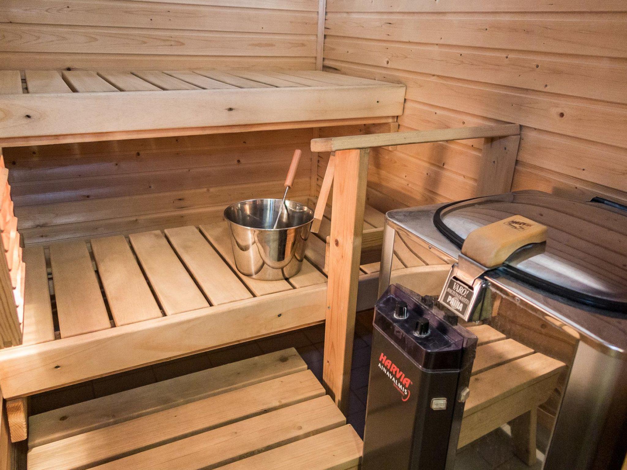 Row house, which was built in 1992, renovated in 2005. Living room, bedroom with double bed, hall, sauna (electric stove), washing room, WC. Low loft with four beds, child gate in the stairs. Steep stairs to the loft.