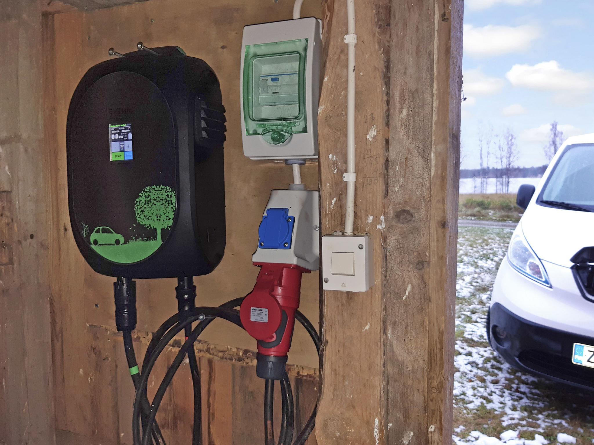 Log cabin built in 2000, kitchen, living room with spreadable sofa, bedroom with a double bed, bedroom with 2 beds, dressing room, washroom, sauna (wood-burning sauna stove), hall, glazed terrace with lake view. Air source heat pump. The cottage has charging possibility for electric car for extra fee 5€ / day. For rent Evtun Accelev 8kw charger type1 / type2, additional price 10 €.