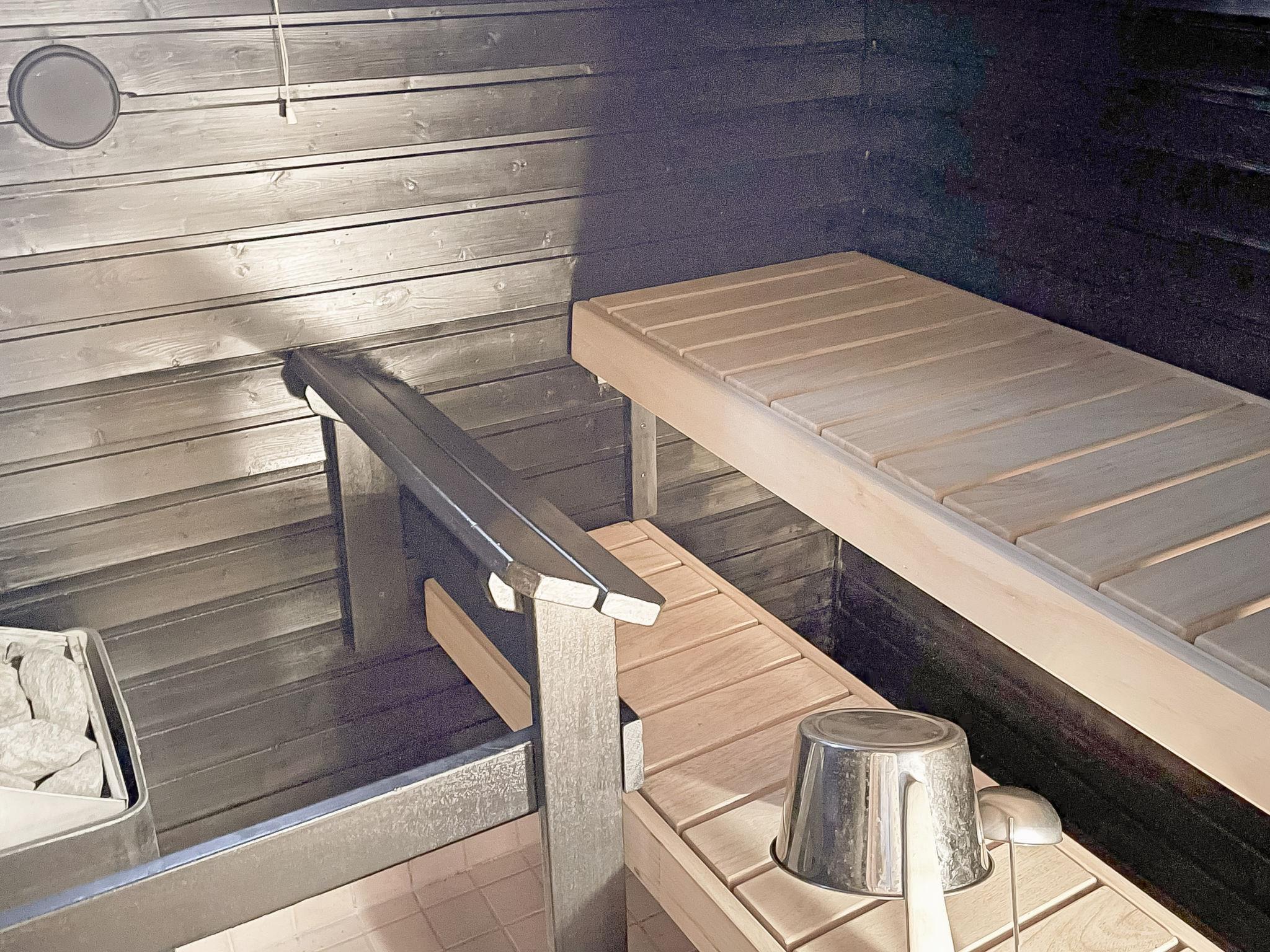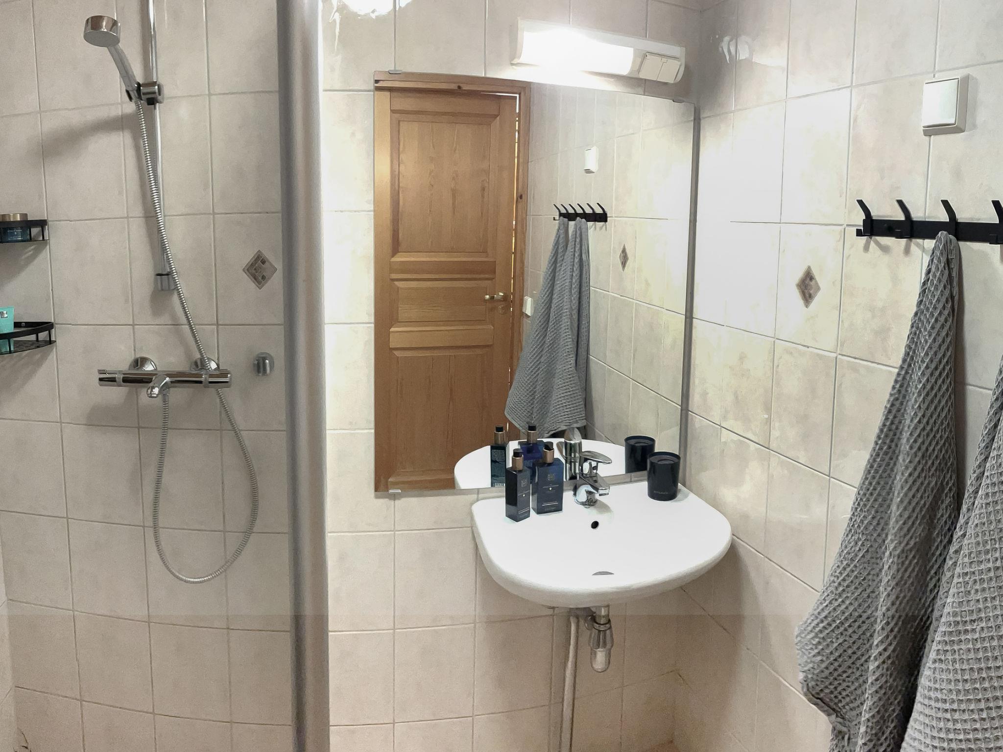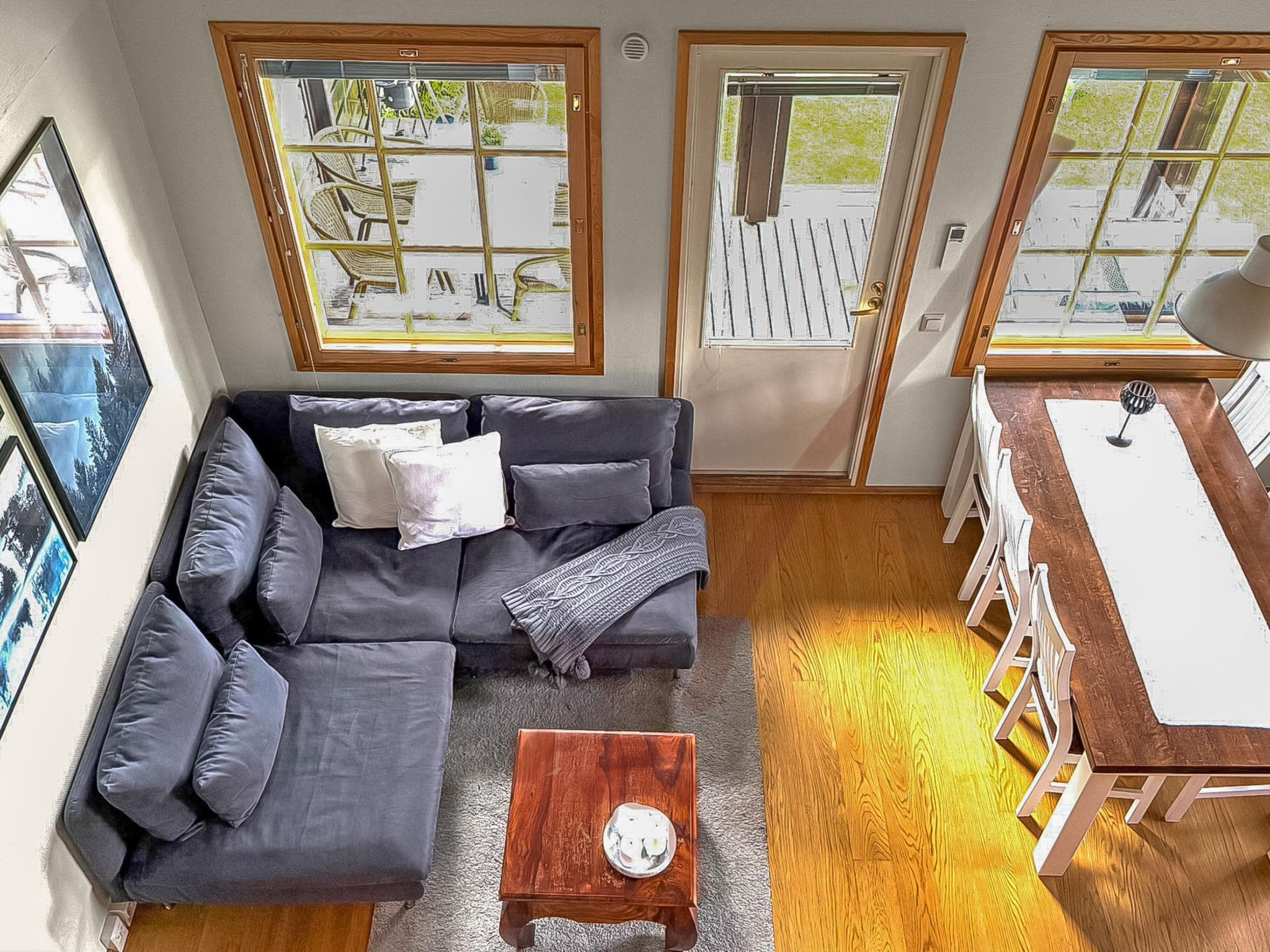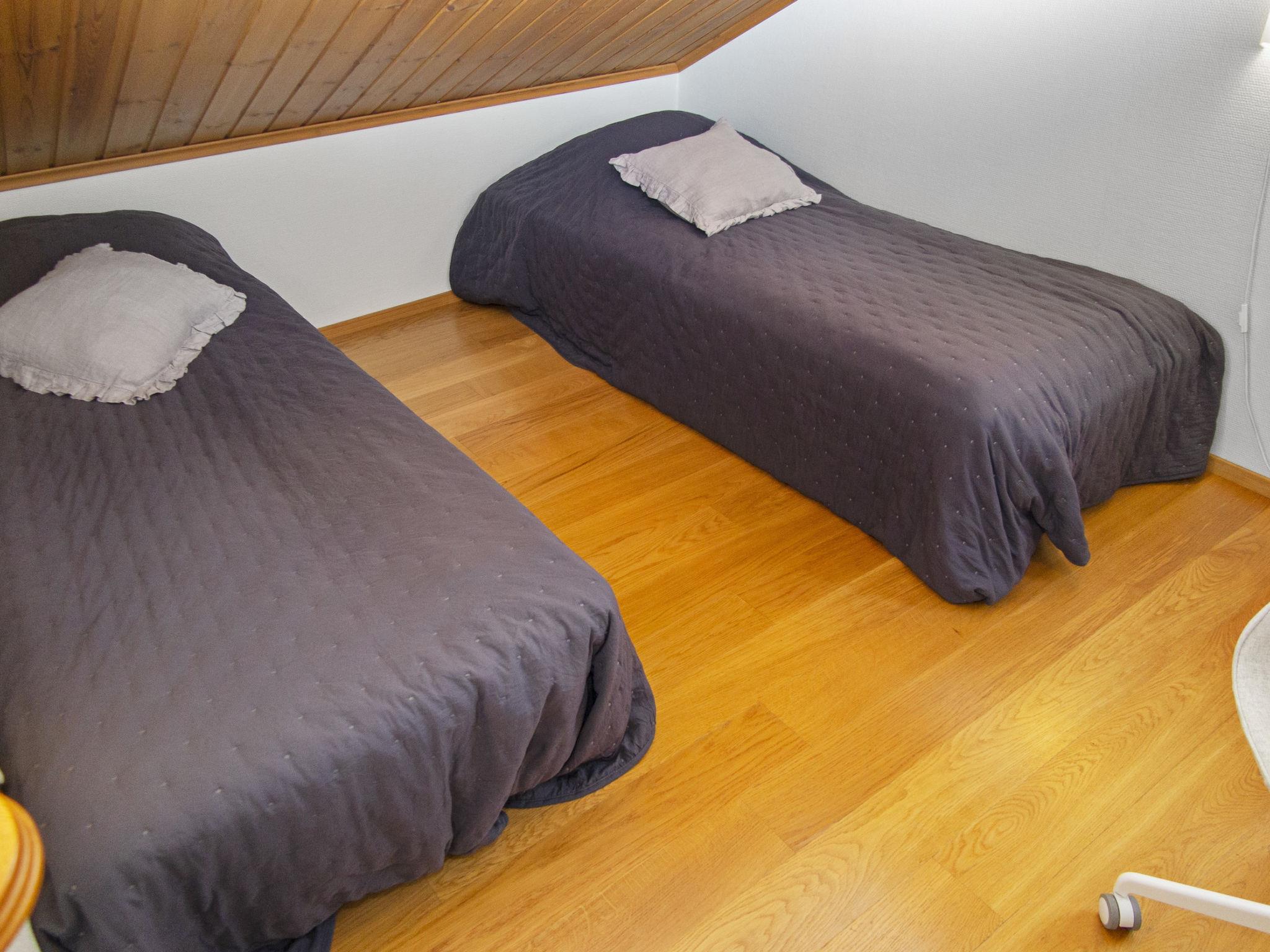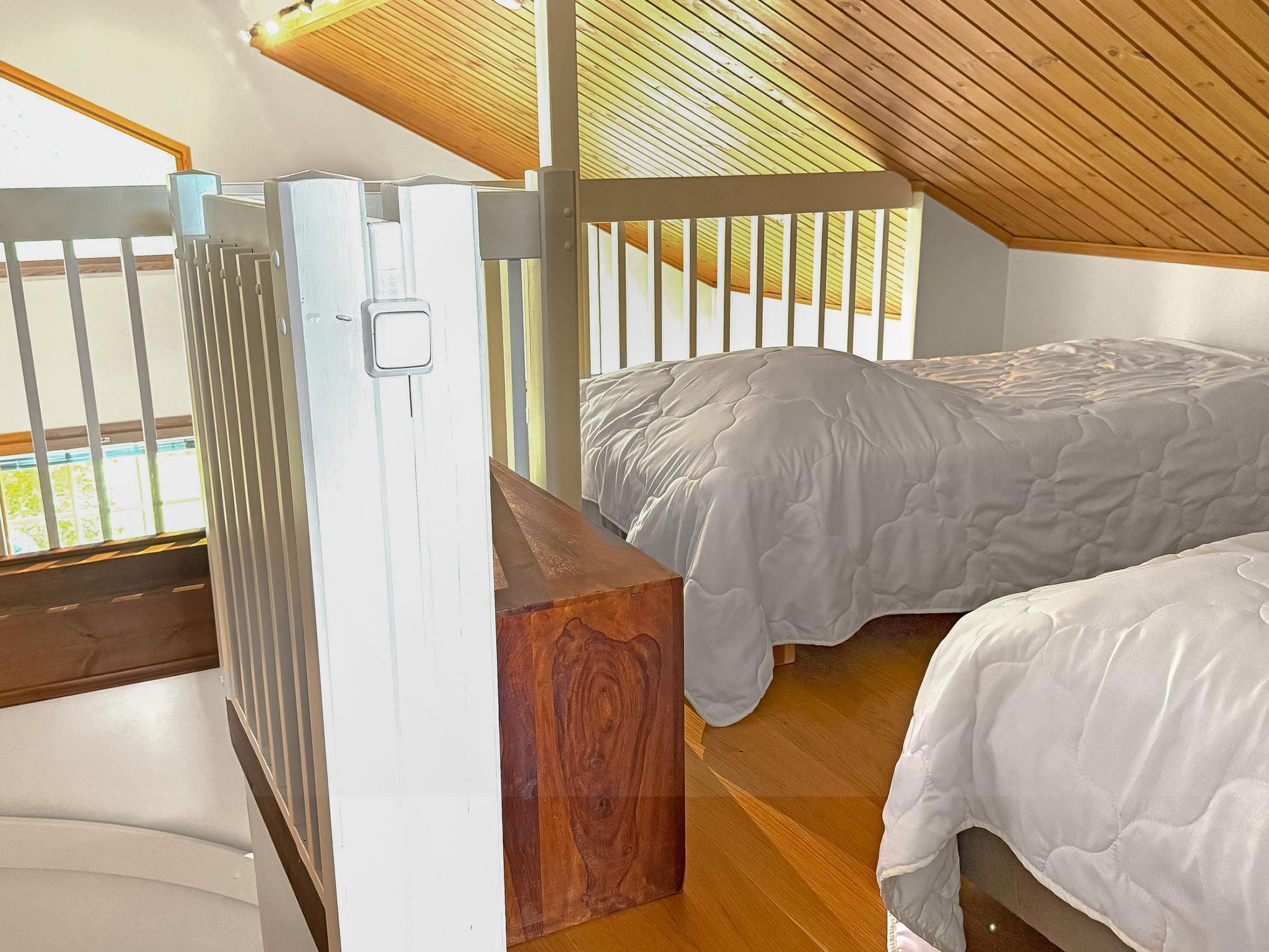 The ground floor of the semi-detached house apartment has a living room with kitchen, bedroom with 2 beds, bathroom, separate toilet, sauna, hallway and terrace. The terrace has a dining area, sofa group and sun loungers. The loft has a bedroom with 2 beds and 2 separate beds in the loft lobby. Cromecast.