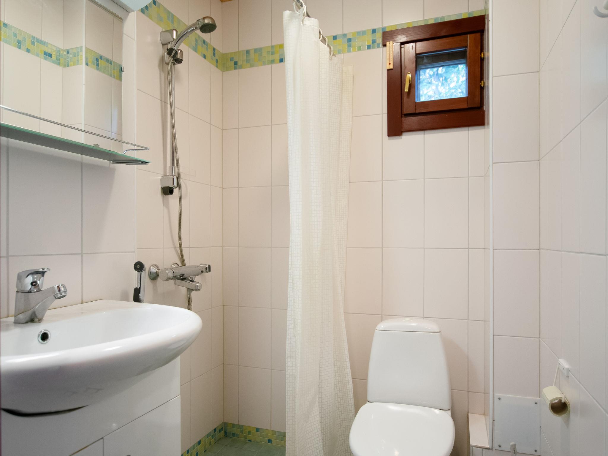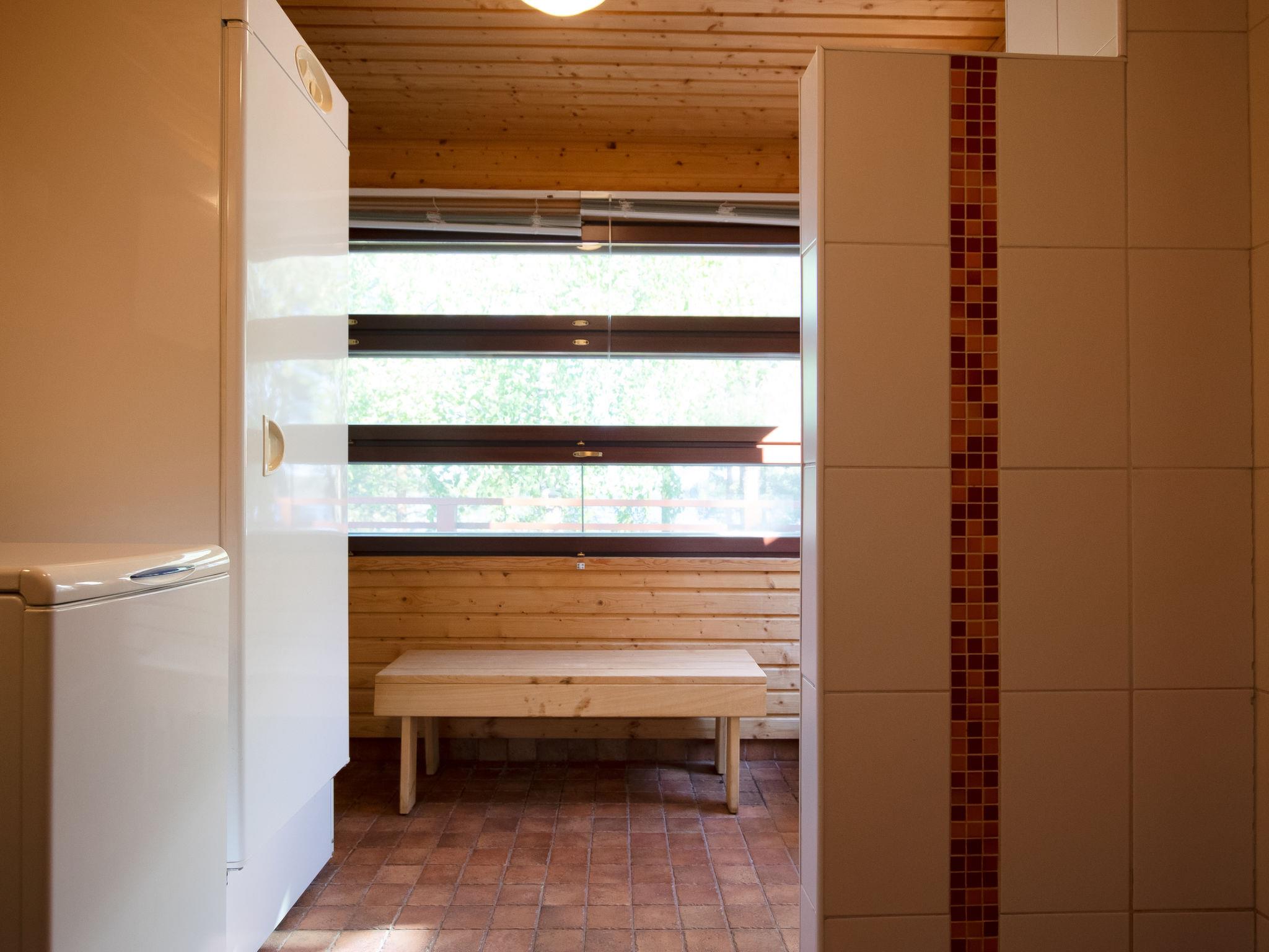 The washroom and sauna are located in a separate building, which is accessed from the outside. It is only a few steps from the cabin's front door to the sauna building. The sauna is spacious and equipped with an electric sauna stove. The washroom includes a shower and a washing machine. The sauna building has two saunas, one of which is for the neighboring cabin's use (both cabins have their own saunas).