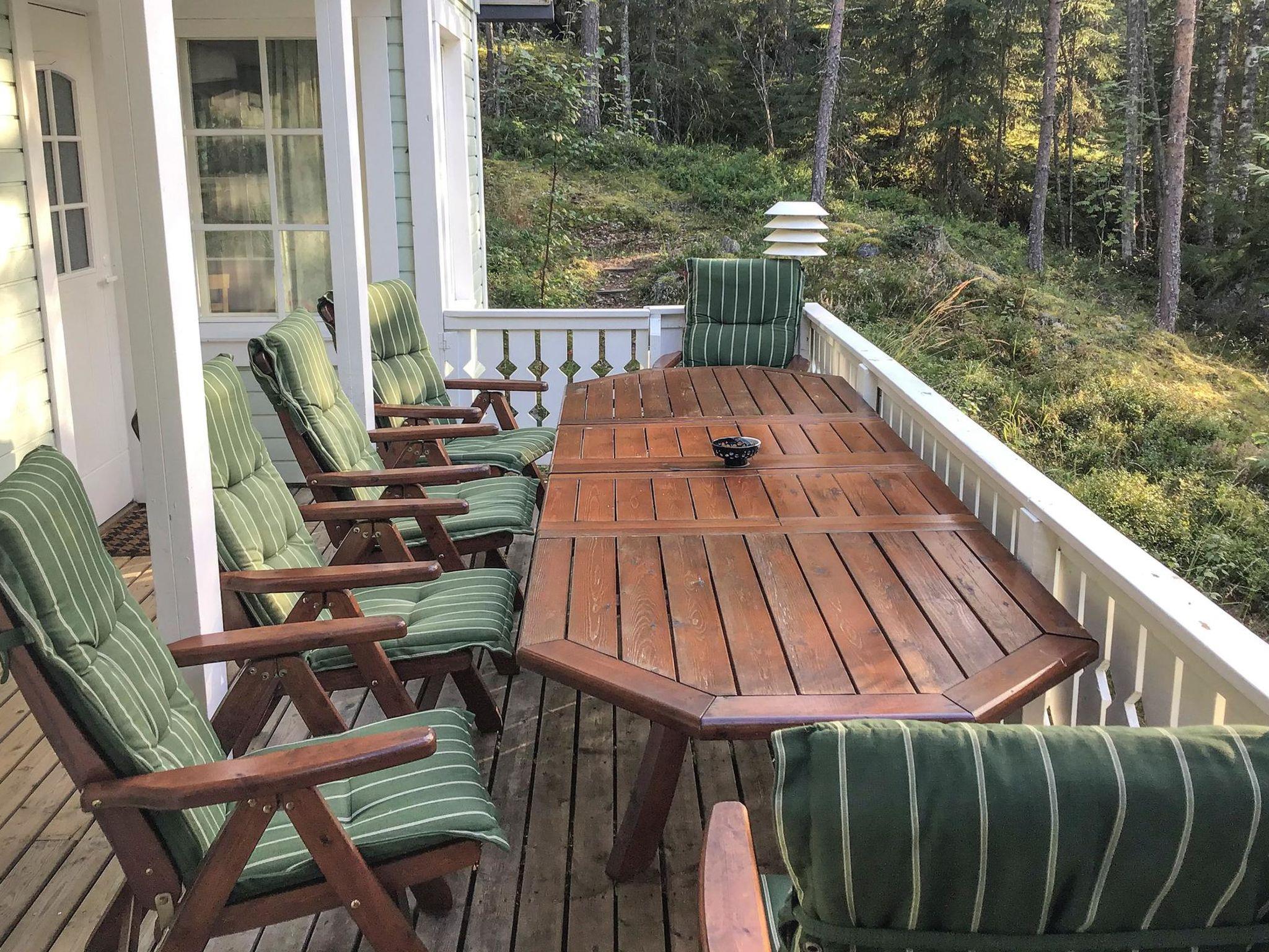 There is a small storage building for firewood and hobby equipment on the plot. The villa has outdoor space and equipment for hobbies, e.g. for badminton, pétanque, mölkky and pole walking as well as fishing.