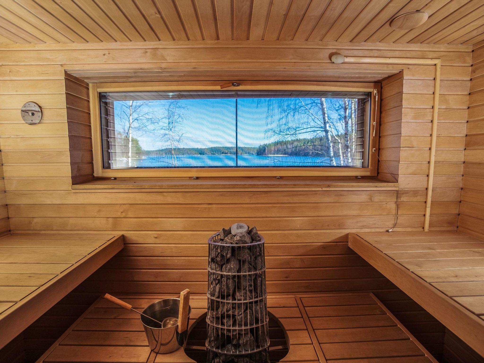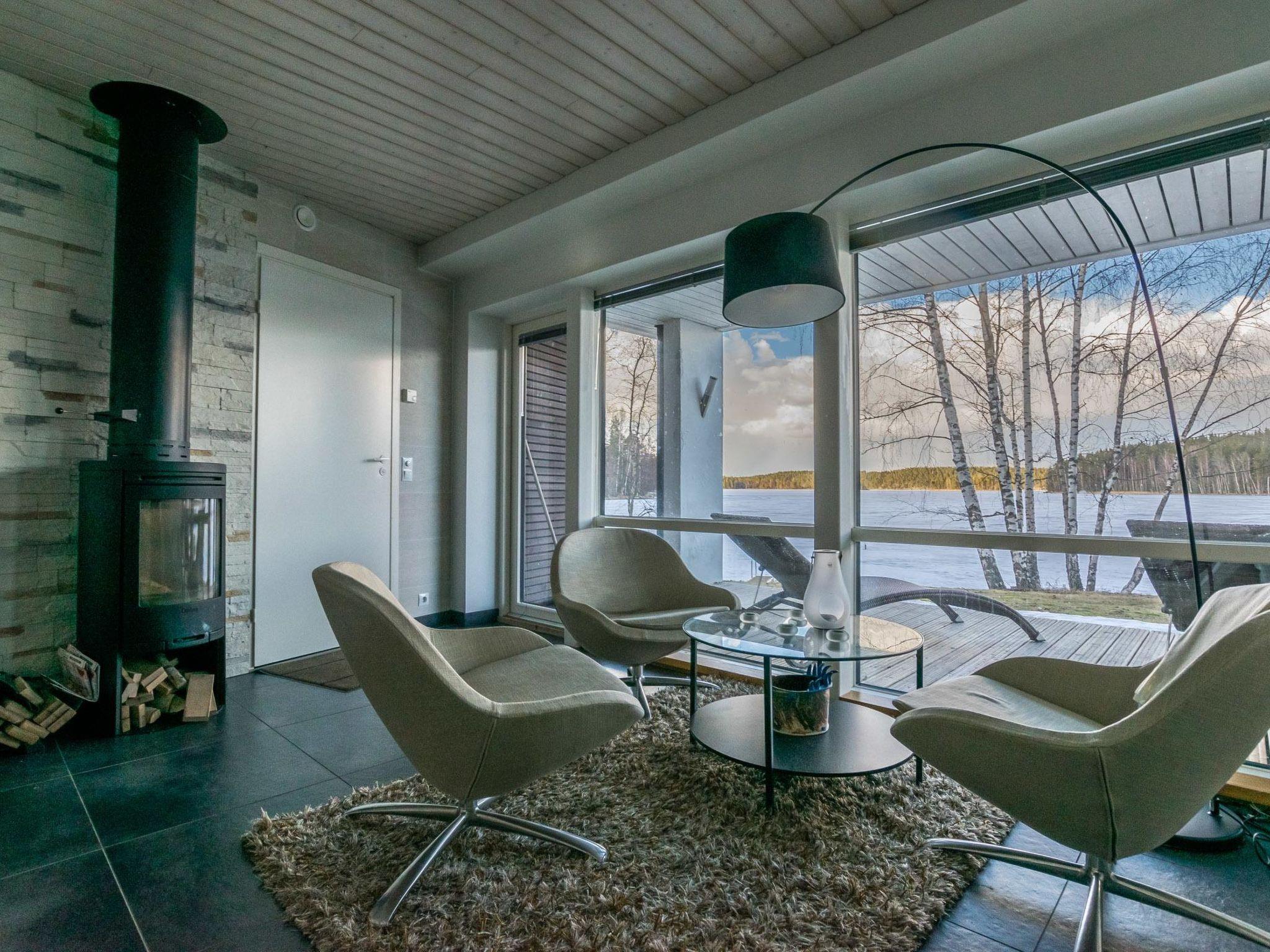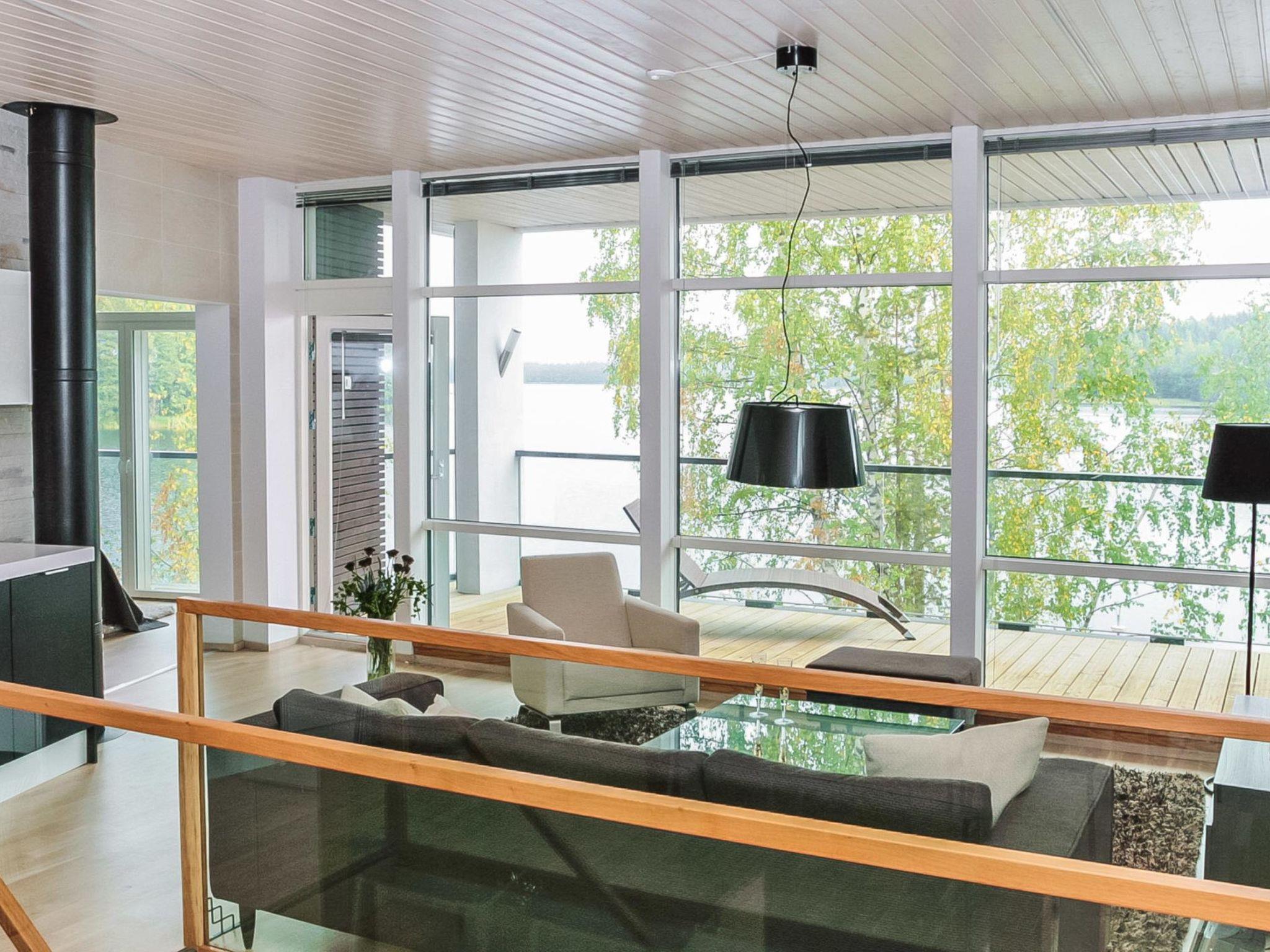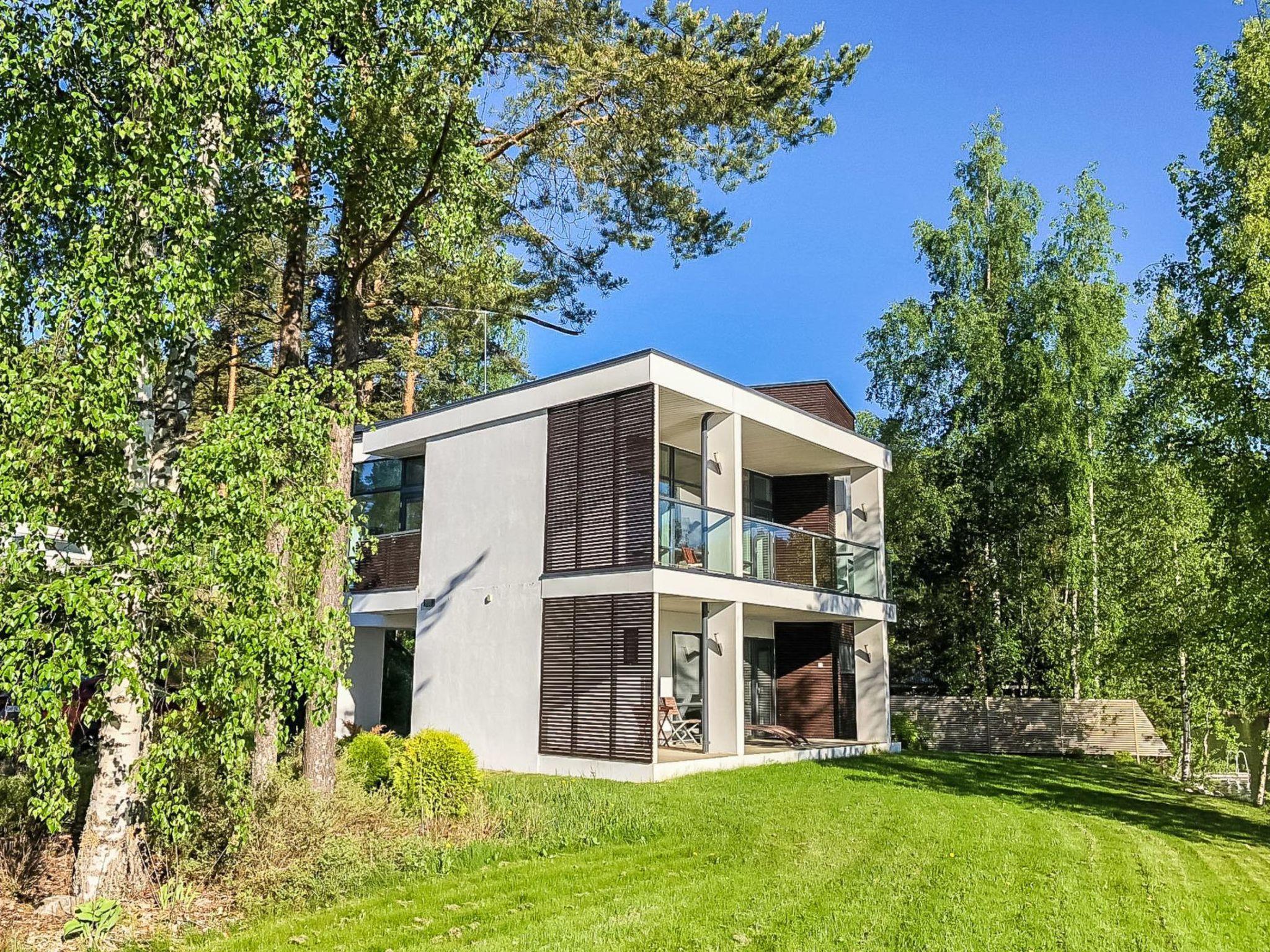 50 km to the west from Lahti, lake Päijänne 5 m, two piers, rowing boat. Stone-built modern villa (2014), 2 bedrooms and sleeping loft on the third floor (lower room height than usual). Bedroom 1: double bed, own private washroom, bedroom 2: 2 beds, sleeping loft: 3 beds. Living room/kitchen, living room, balcony. On the ground floor, WC, fireplace room, sauna (electric sauna stove) and terrace.