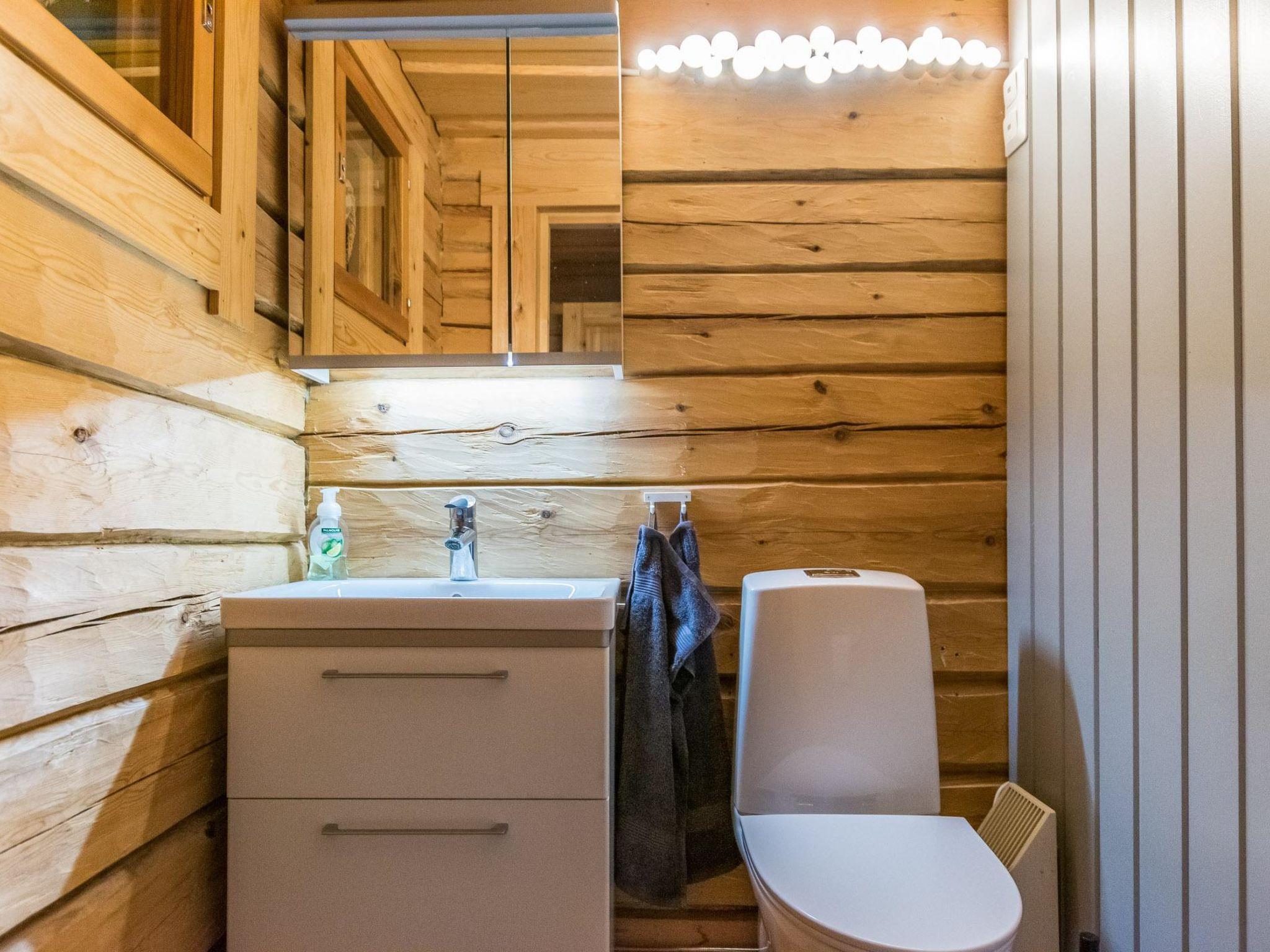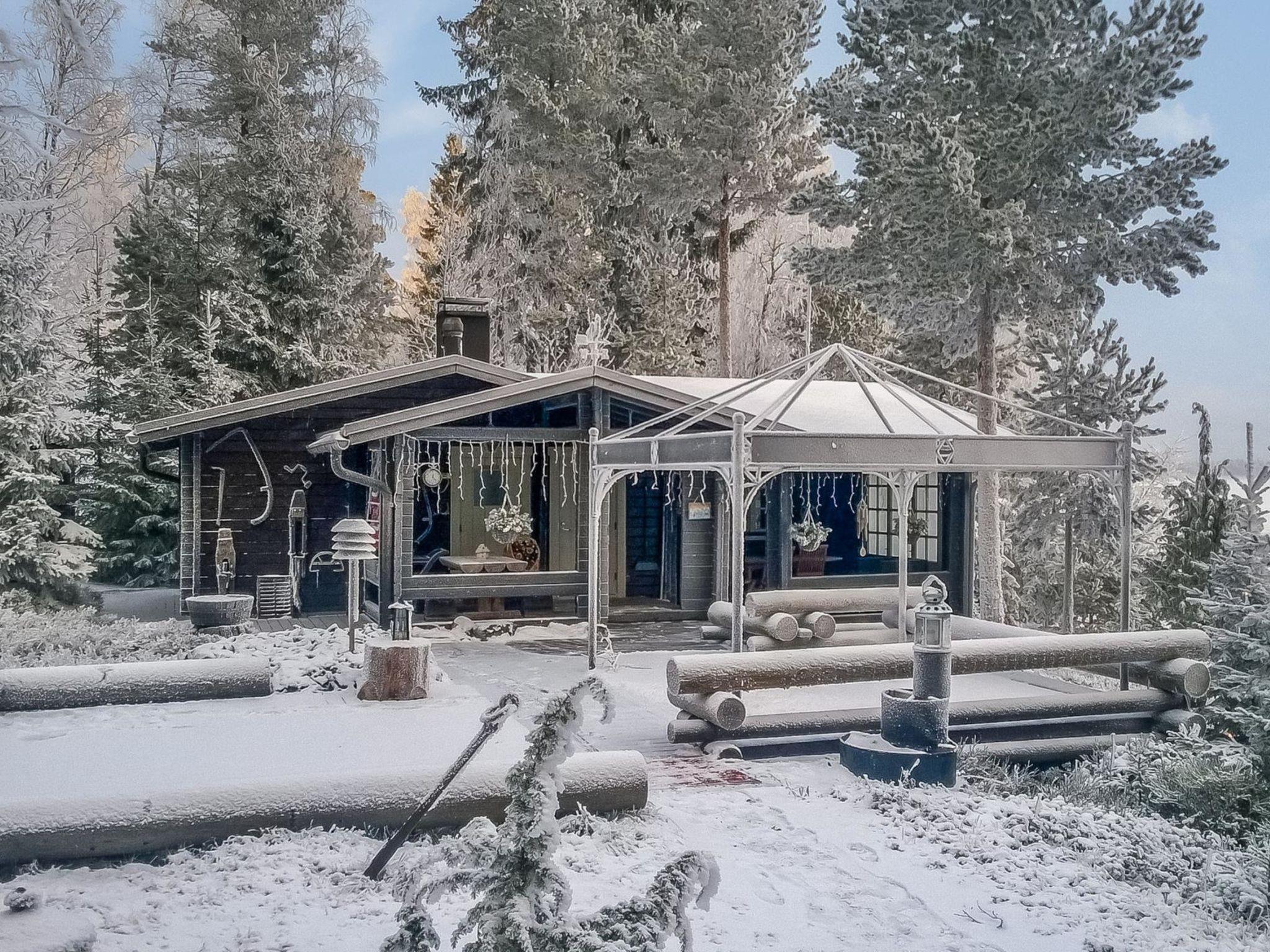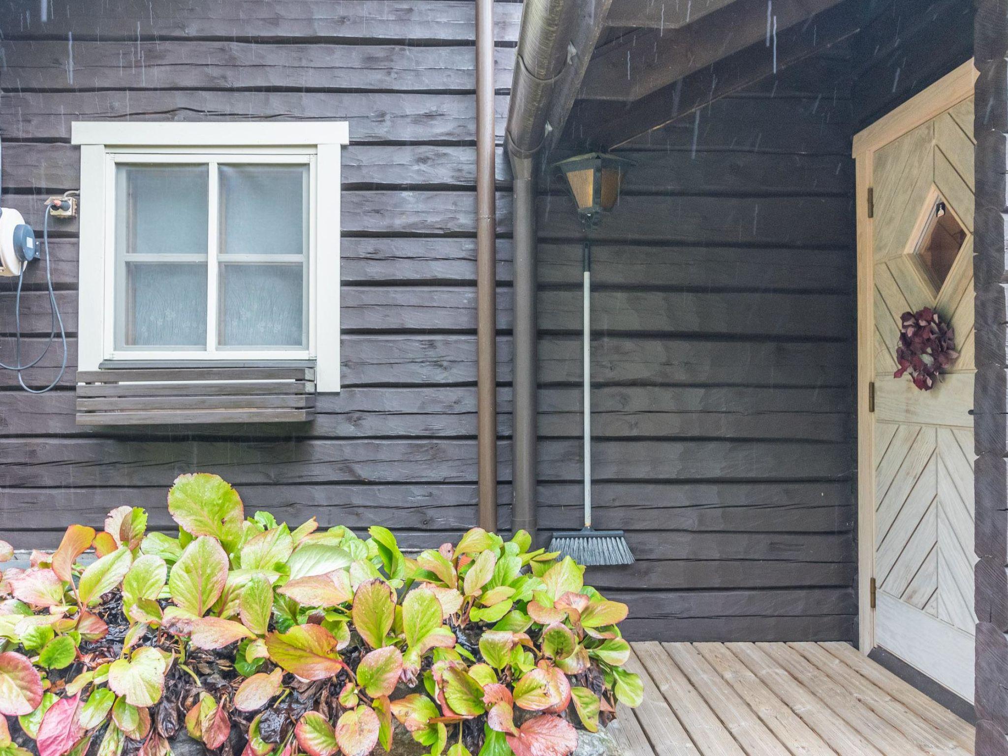 A log cottage (1998), living room and kitchen. Bedroom with a double bed (160 cm), and a sleeping alcove with one bed (120 cm). In addition, two lofts, one loft with two beds and the other with one bed. Indoor toilet. The fireplace is a cast iron hearth with a glass door.